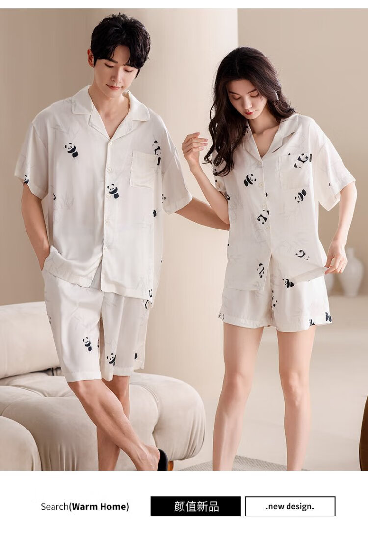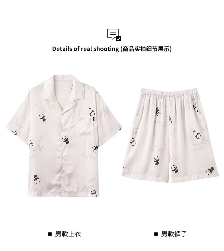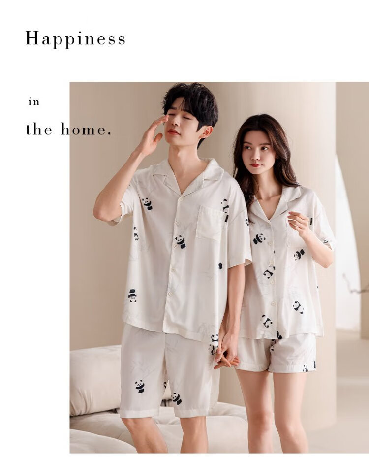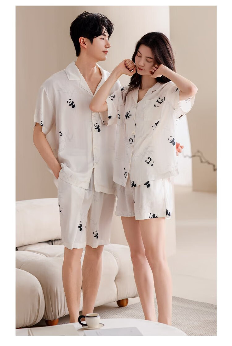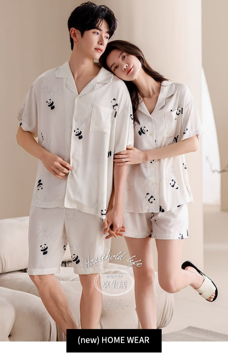 Catman Ice Silk Couple Pajamas Men's Summer Thin Women's Short-Sleeved Cool Cardigan 2025 New Style Can Be Weared Outside Home Clothes