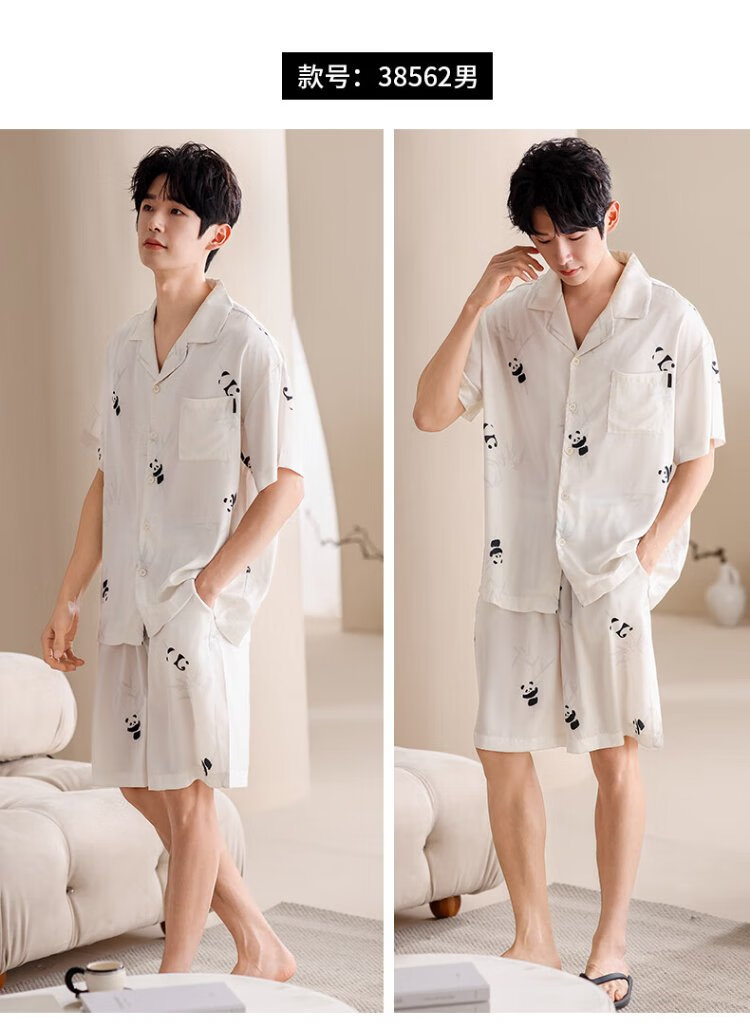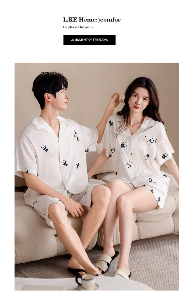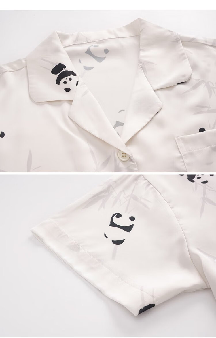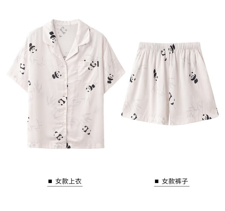 Catman Ice Silk Couple Pajamas Men's Summer Thin Women's Short-Sleeved Cool Cardigan 2025 New Style Can Be Weared Outside Home Clothes