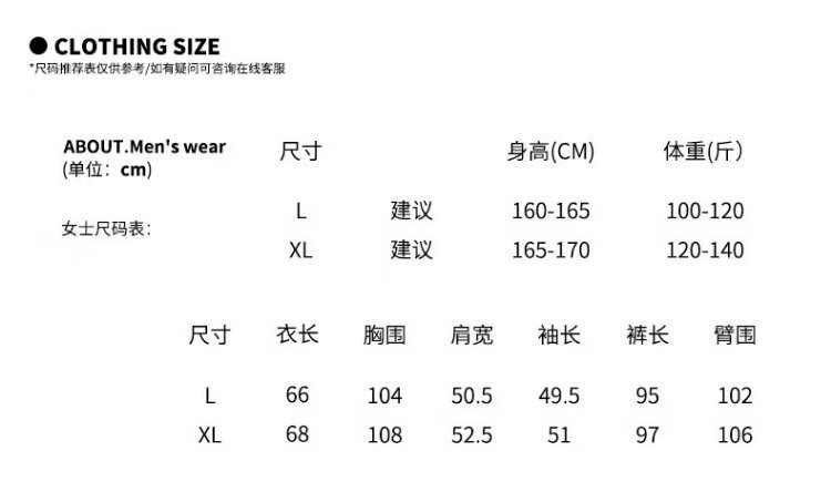 China (cm) 160-165/84-86 165-170 / 88-90 167-172 / 92-96 168-173 / 98-102 170-176 / 106-110