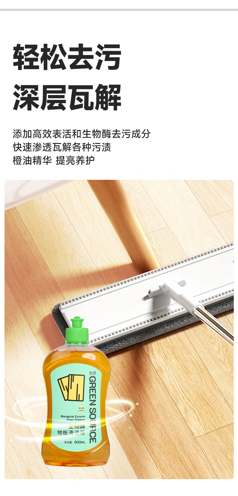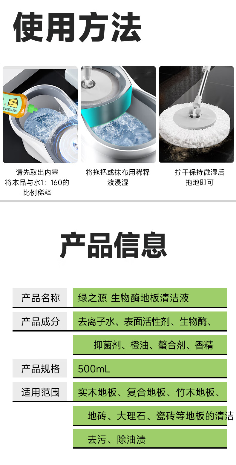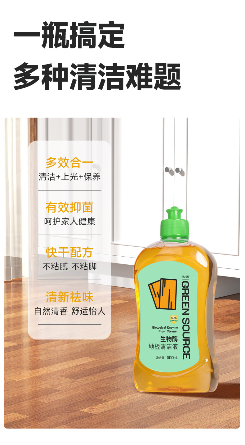 绿之源地板瓷砖清洗清洁剂拖地专用实木地板保养擦地清洁洗地家清净爆了