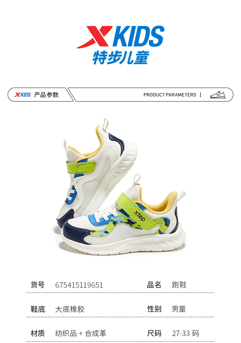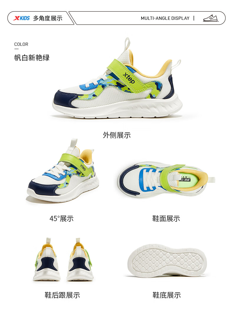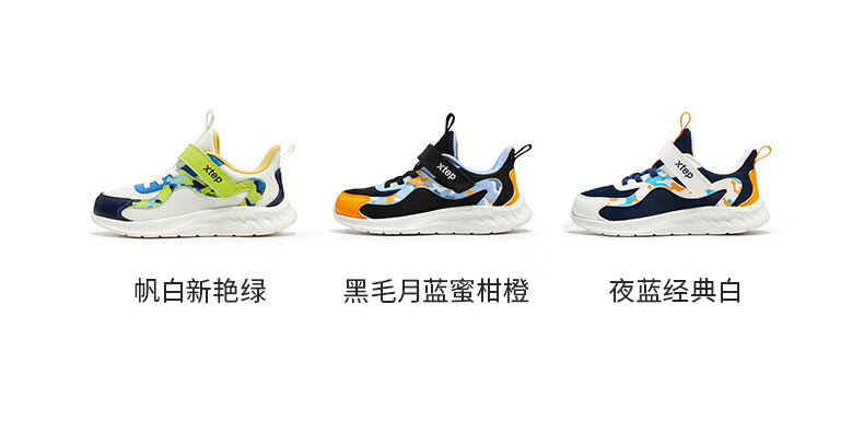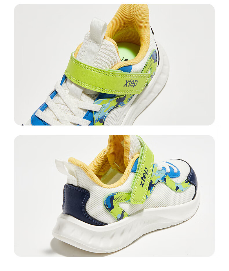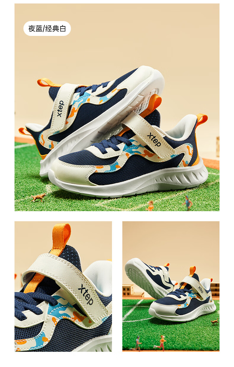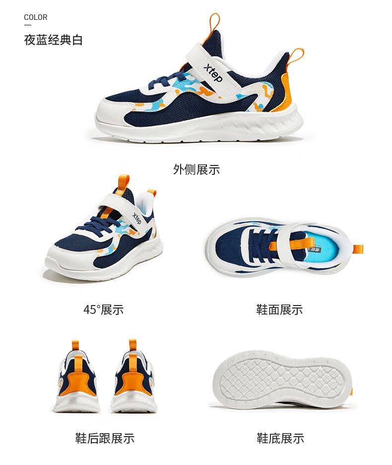 Xtep Children's Shoes Children's Mesh Sports Shoes Velcro Buckle Children's Lightweight Running Shoes Night Blue/Classic White 31