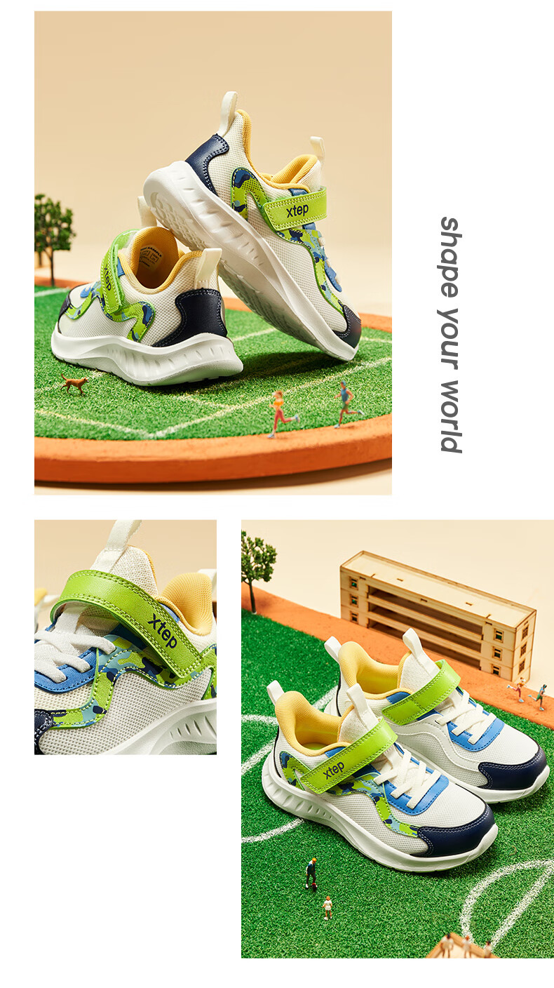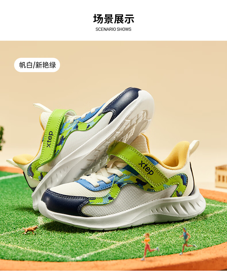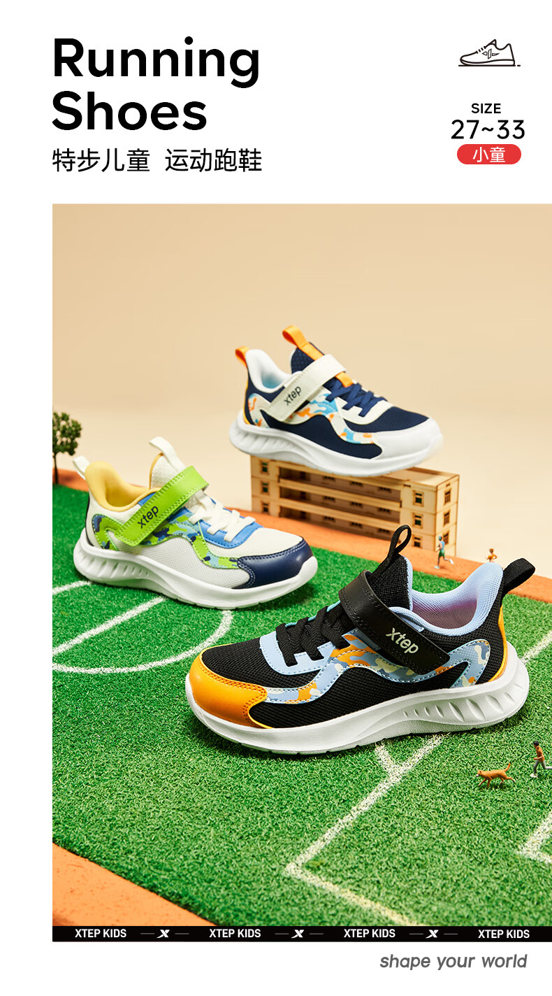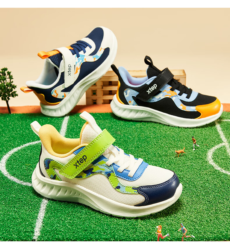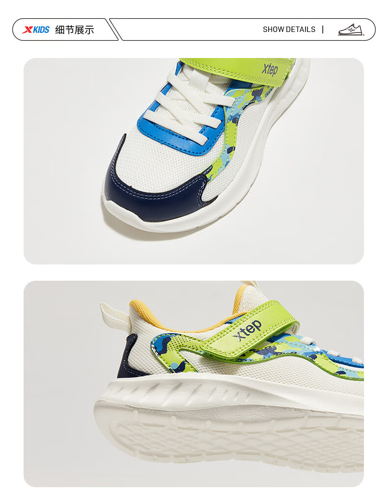 Xtep Children's Shoes Children's Mesh Sports Shoes Velcro Buckle Children's Lightweight Running Shoes Night Blue/Classic White 31