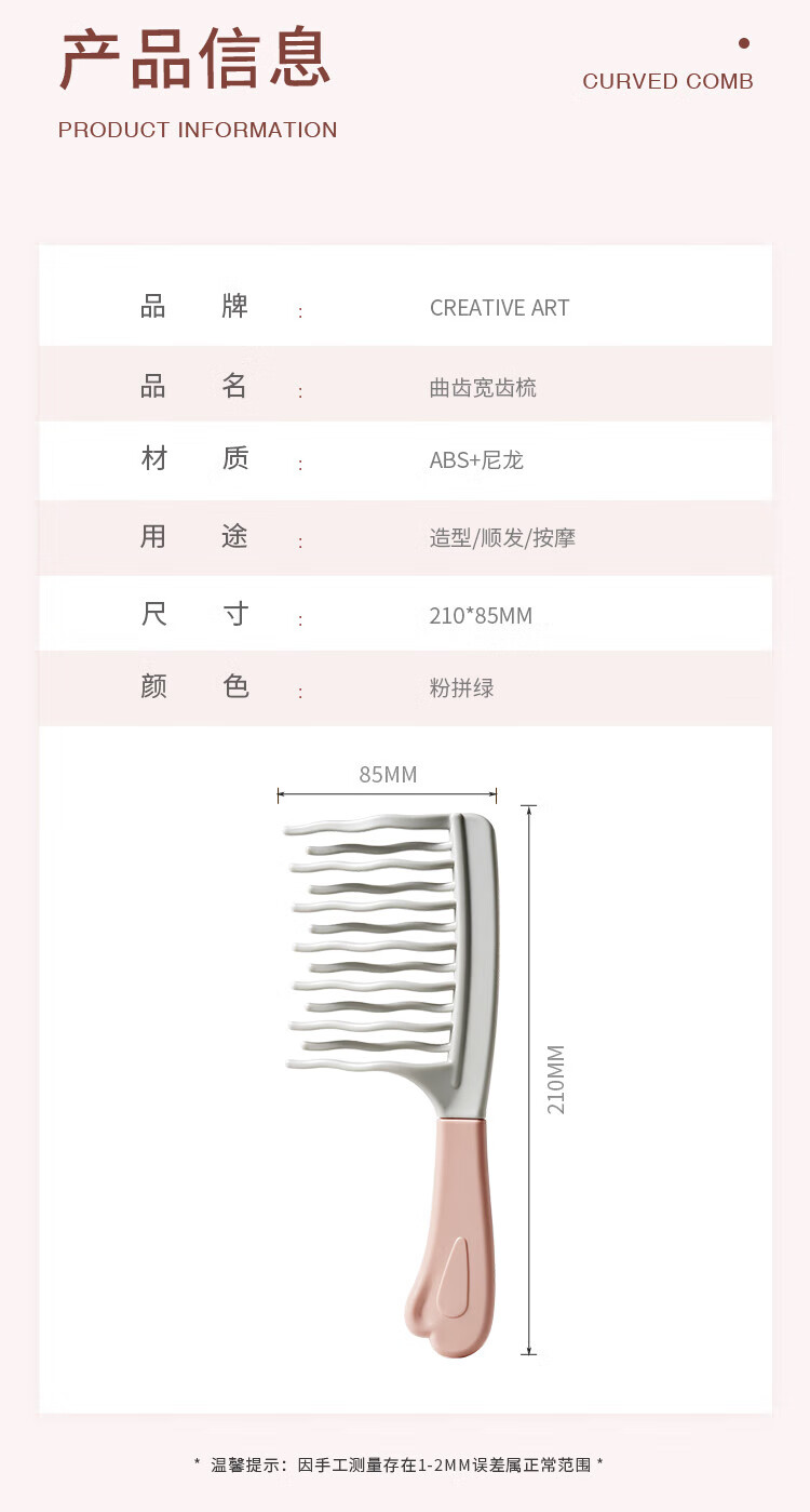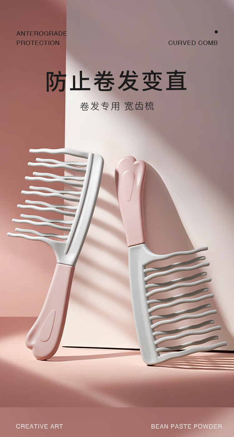 Creative art wide-toothed curling comb large-toothed comb for women after perming, special large-head comb for long hair dormitory household fluffy high skull