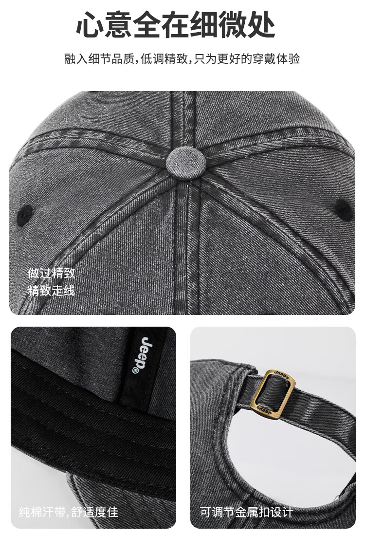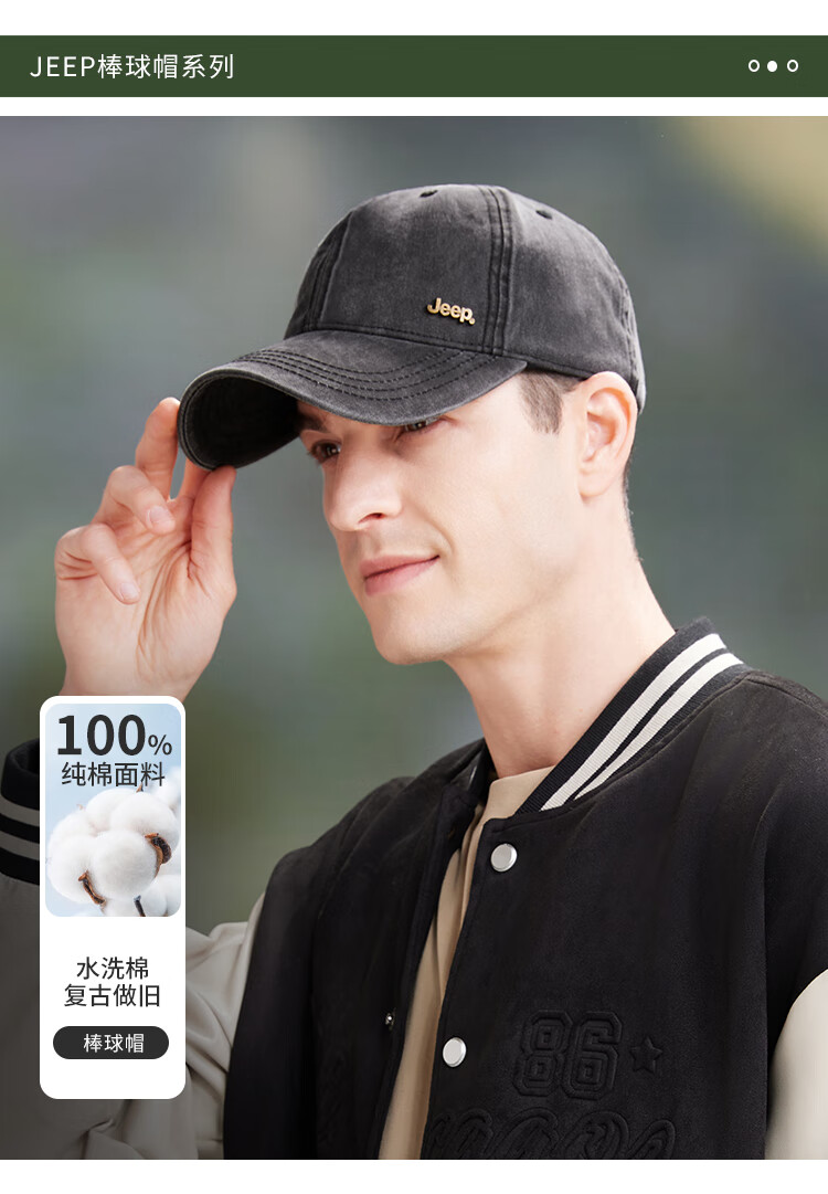 Jeep (JEEP) hat men's baseball cap four seasons outdoor trendy retro peaked cap men's and women's sun hat black
