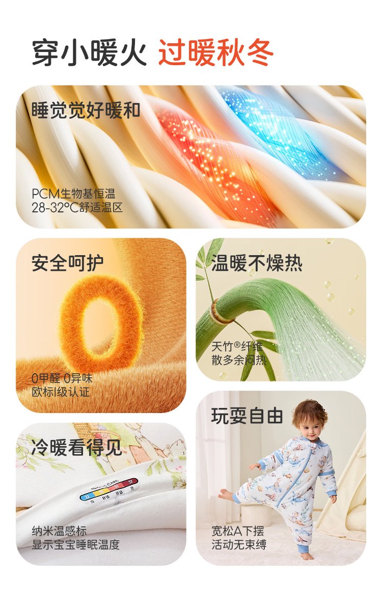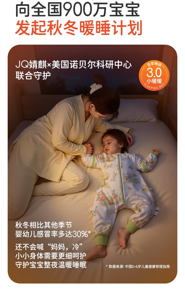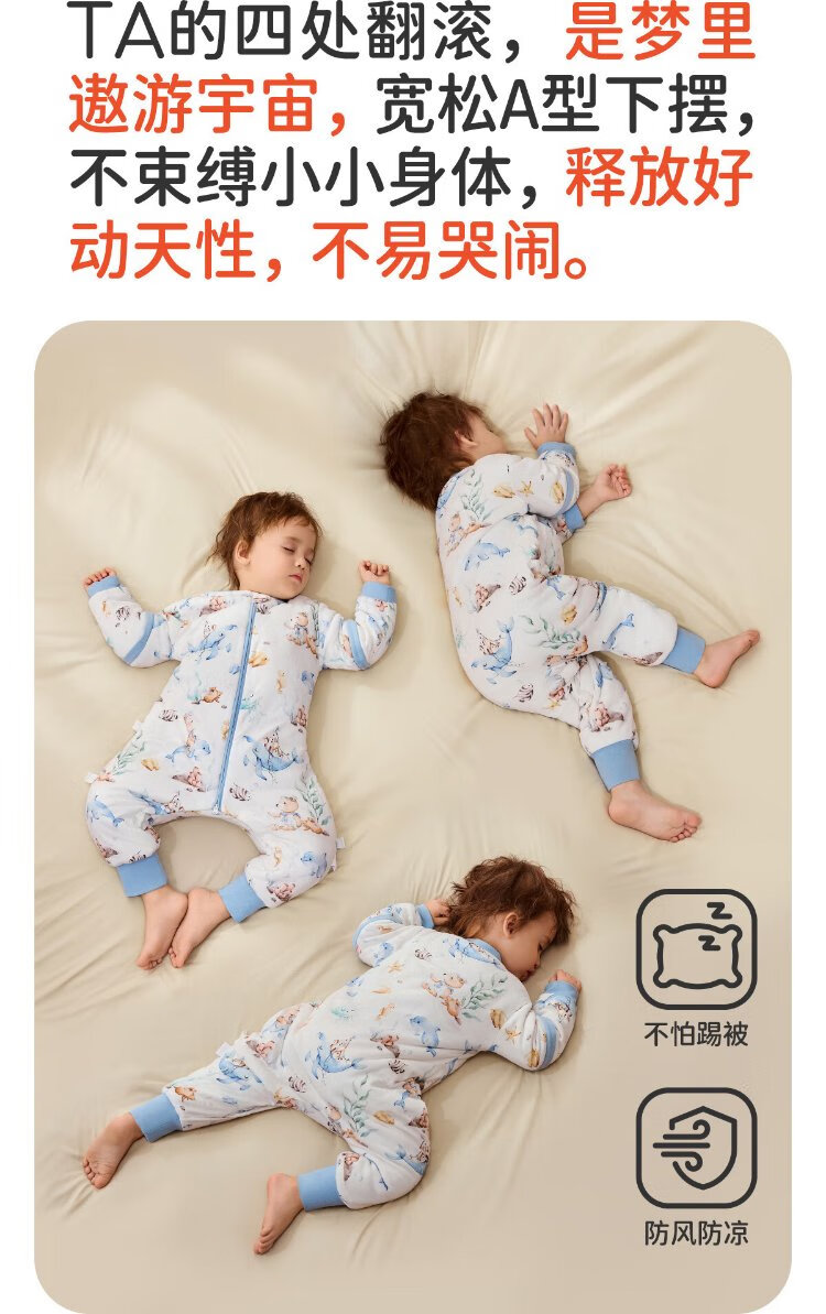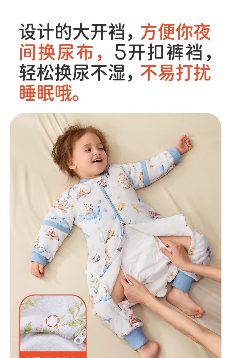 JOYNCLEON baby sleeping bag autumn and winter constant temperature children's split-leg sleeping bag anti-kicking quilt thickened blue 90 jsd190290