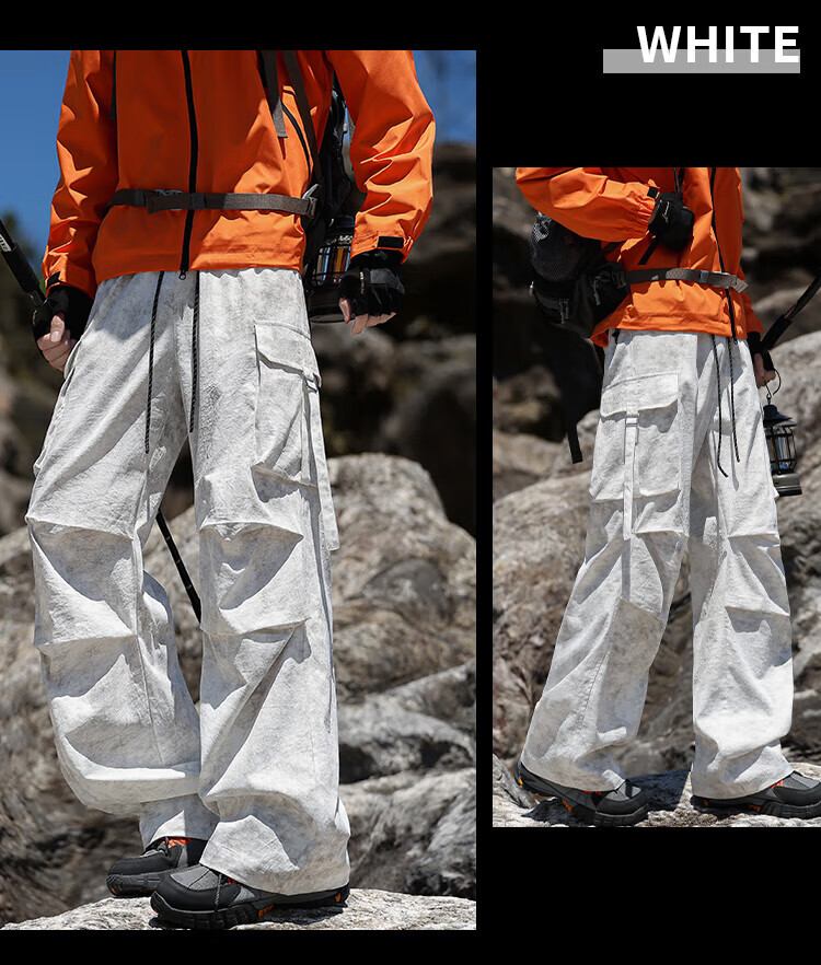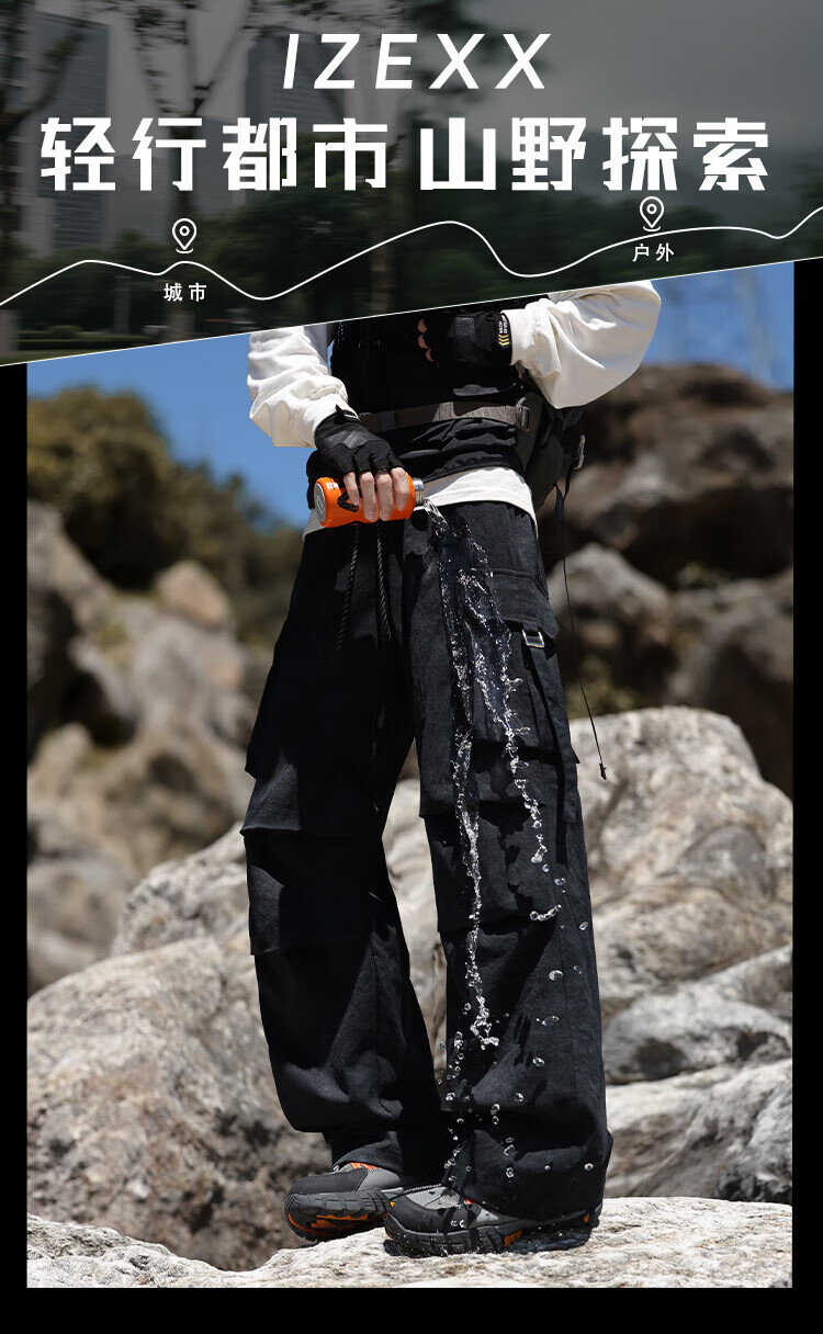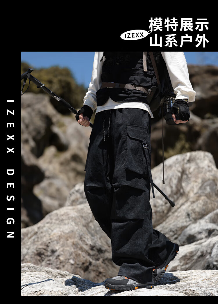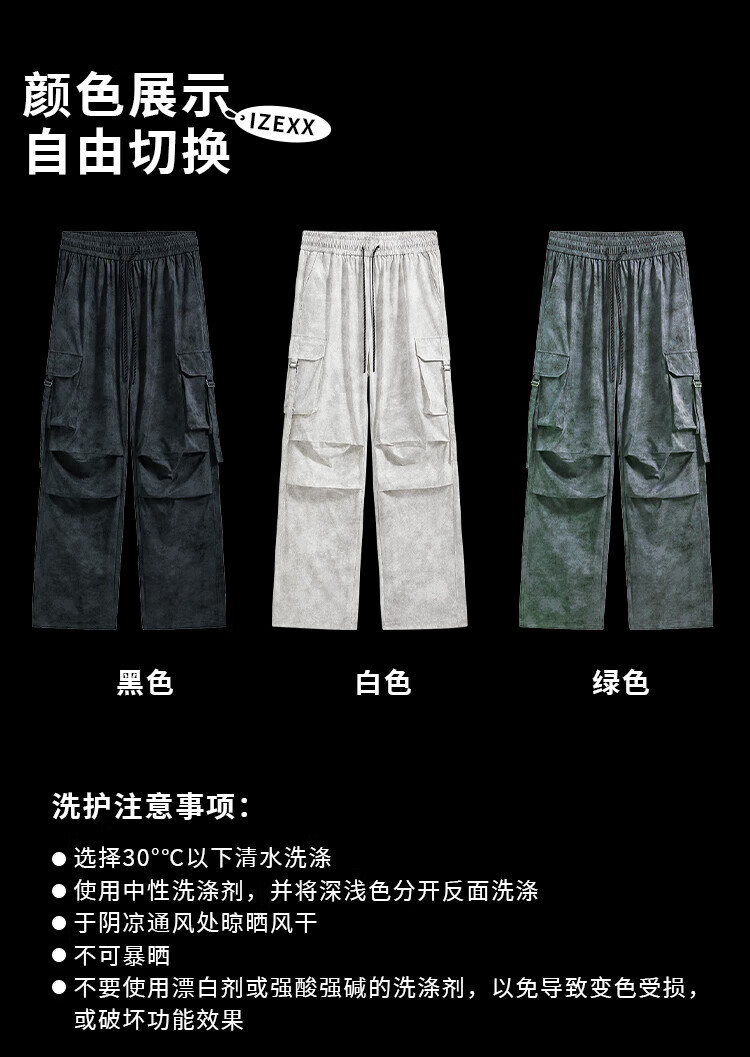 IZEXX American overalls men's autumn high street straight wide leg trendy tie-dyed casual long pants KW99 black XL