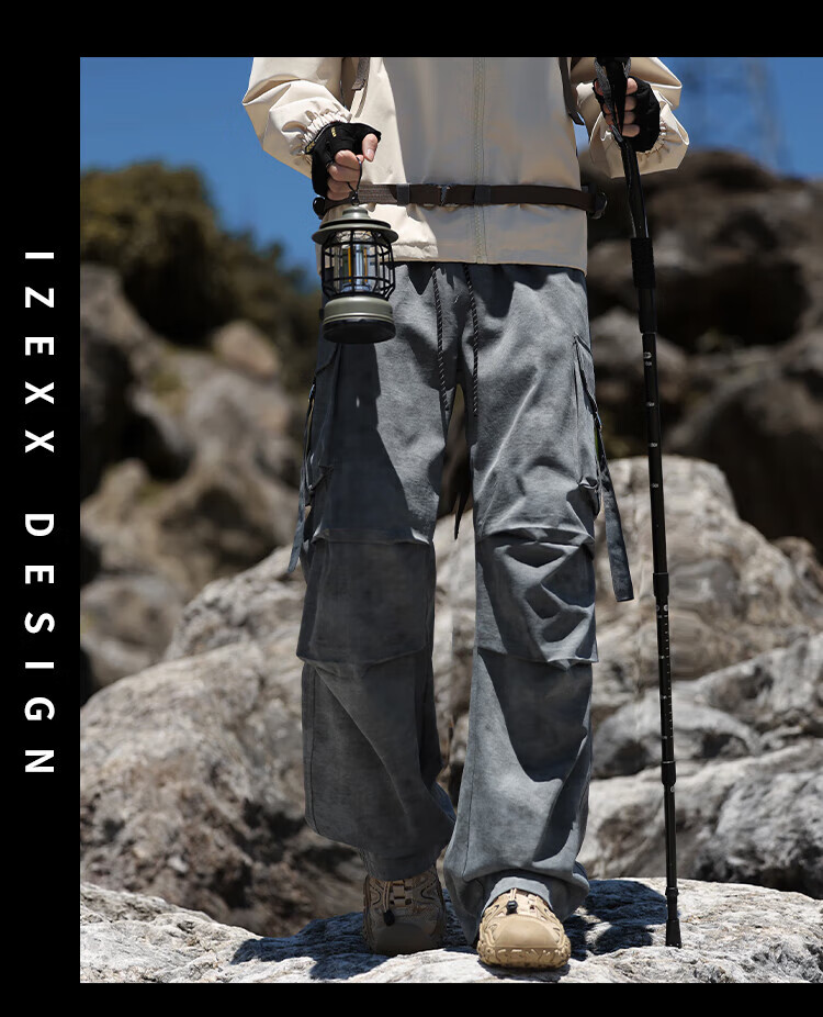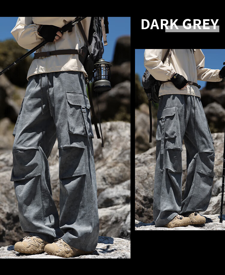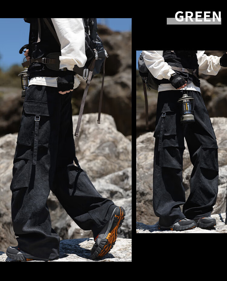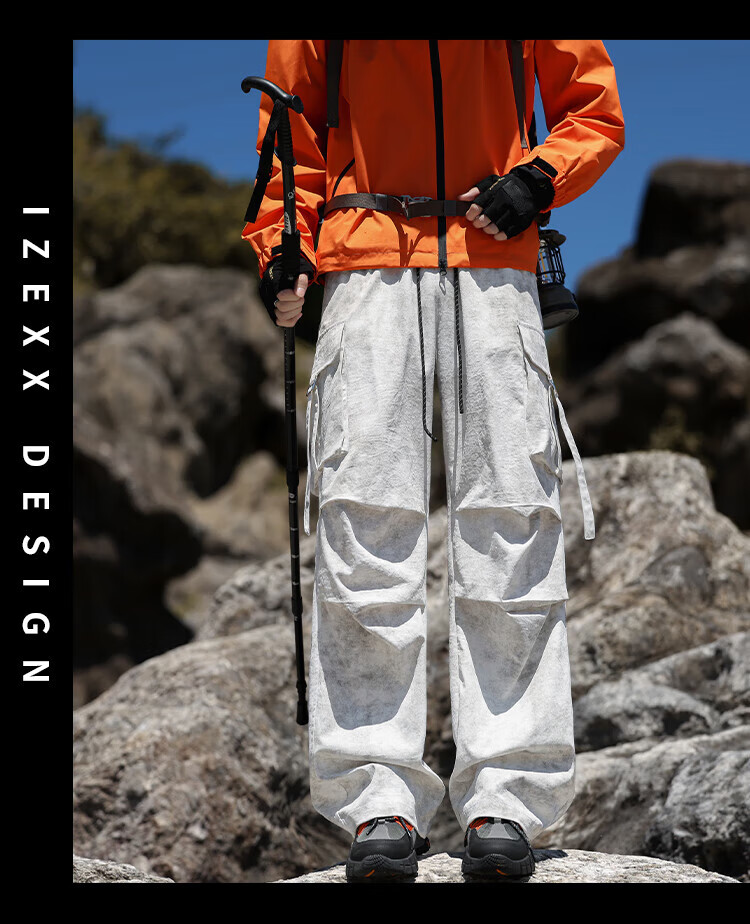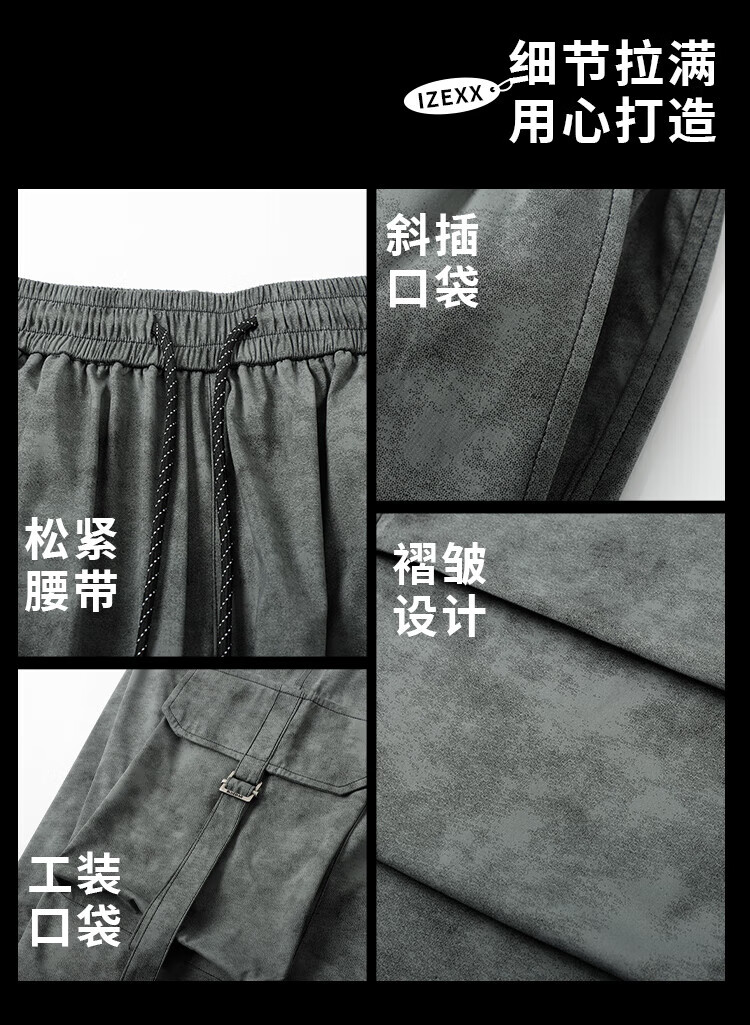 IZEXX American overalls men's autumn high street straight wide leg trendy tie-dyed casual long pants KW99 black XL