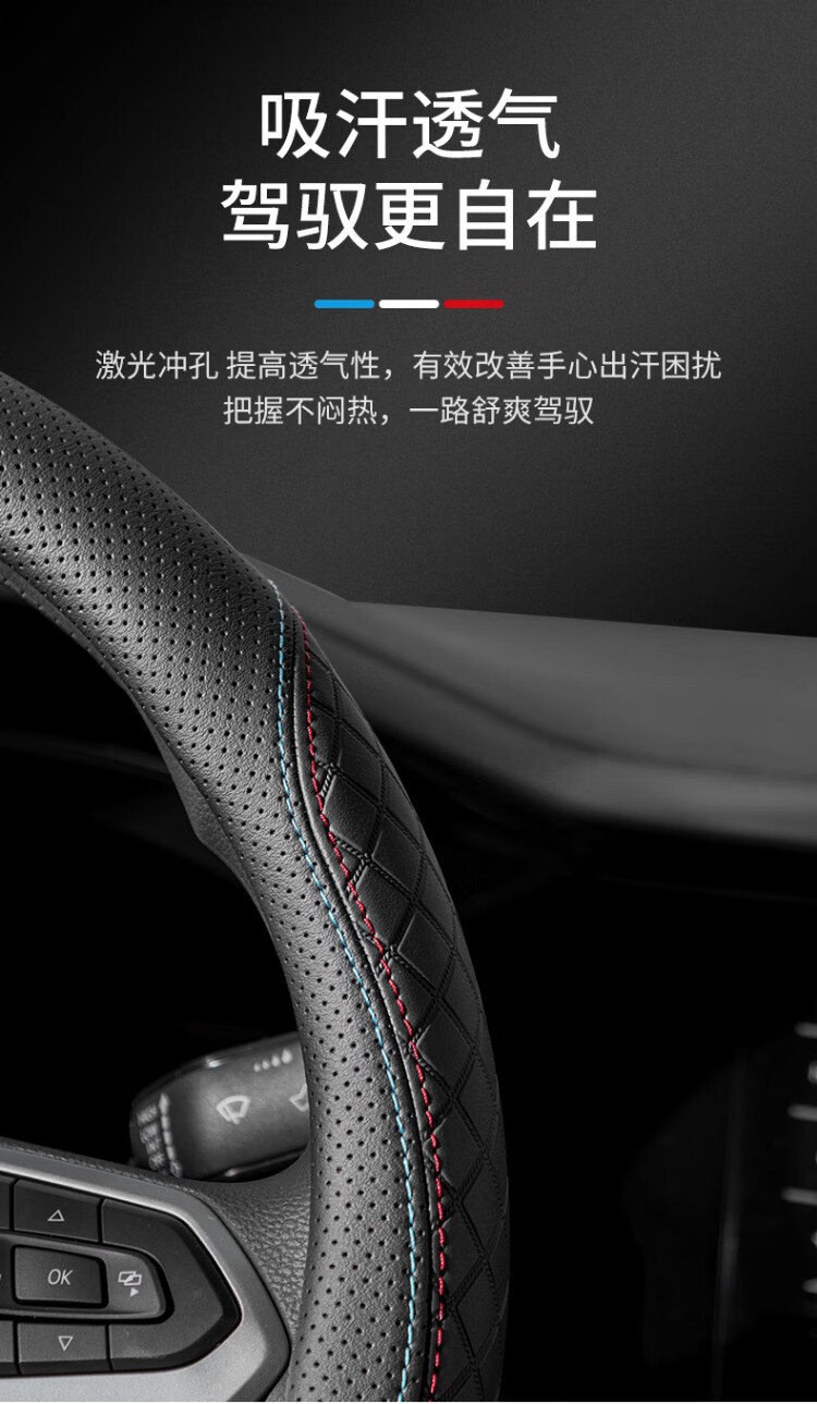 FHAO2025 car steering wheel cover anti-slip, sweat-absorbent, ultra-thin steering wheel D-type handle cover, breathable and suitable for all seasons