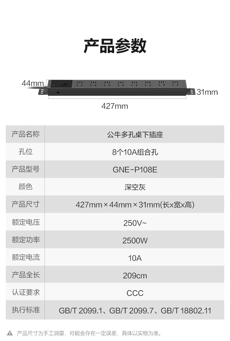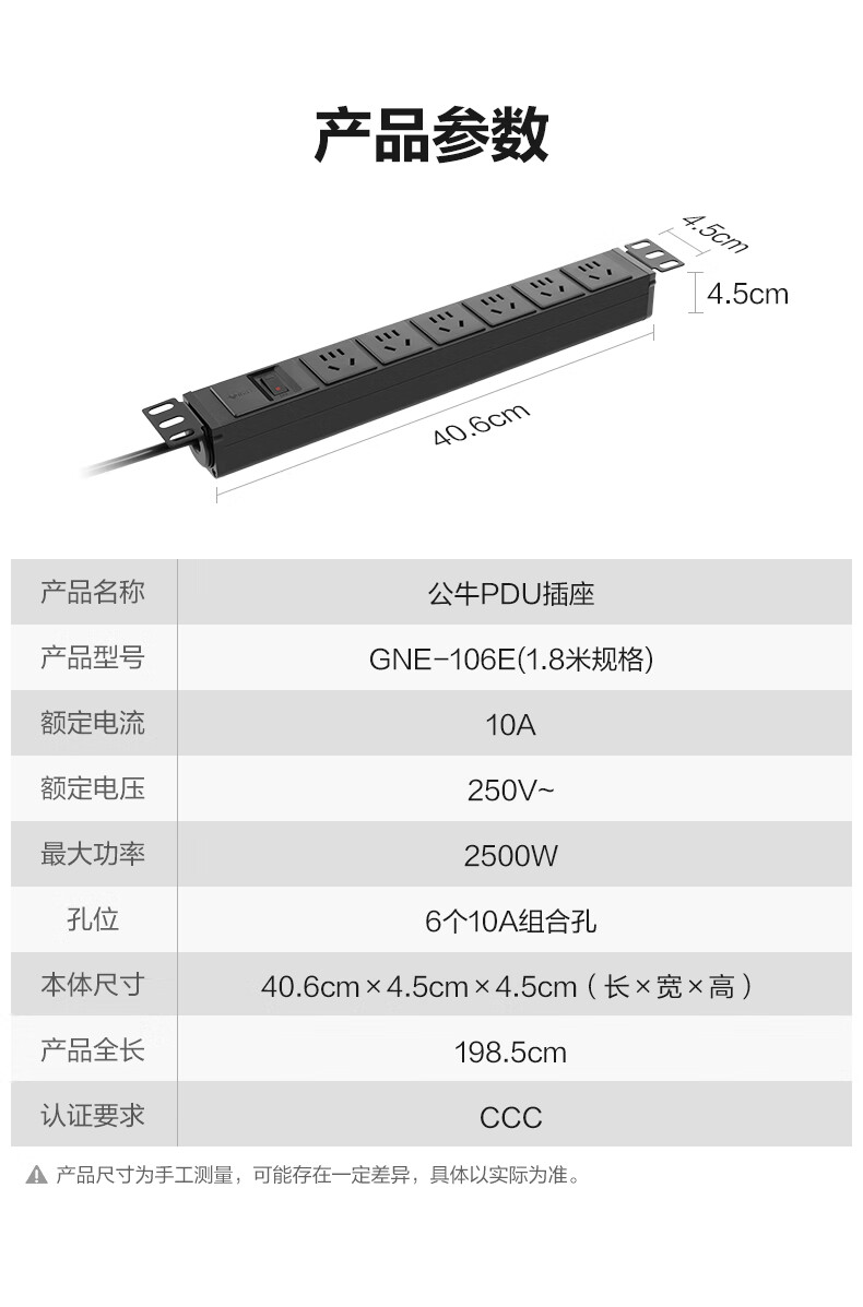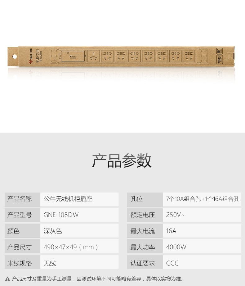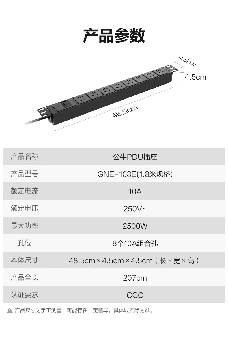 Bull (BULL) pdu cabinet socket computer room special plug strip 10A/16A power cord plug board high power wiring board plug board engineering plug strip 108DEW eight socket wireless 16A