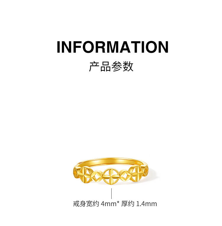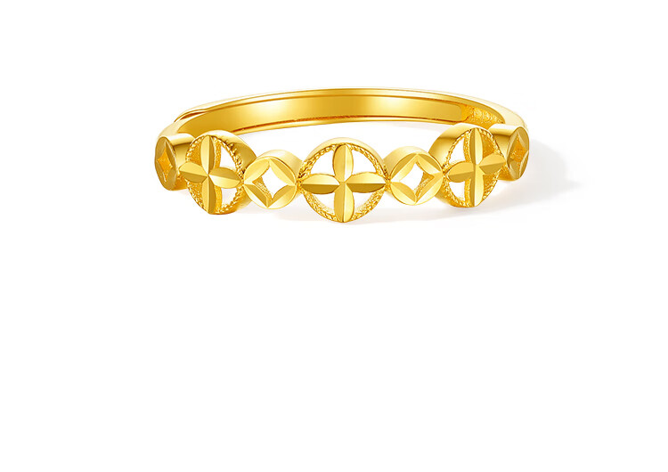 Saturday blessing yellow 18K gold ring women's four-leaf clover color gold ring birthday gift C0121038 Living mouth No. 13