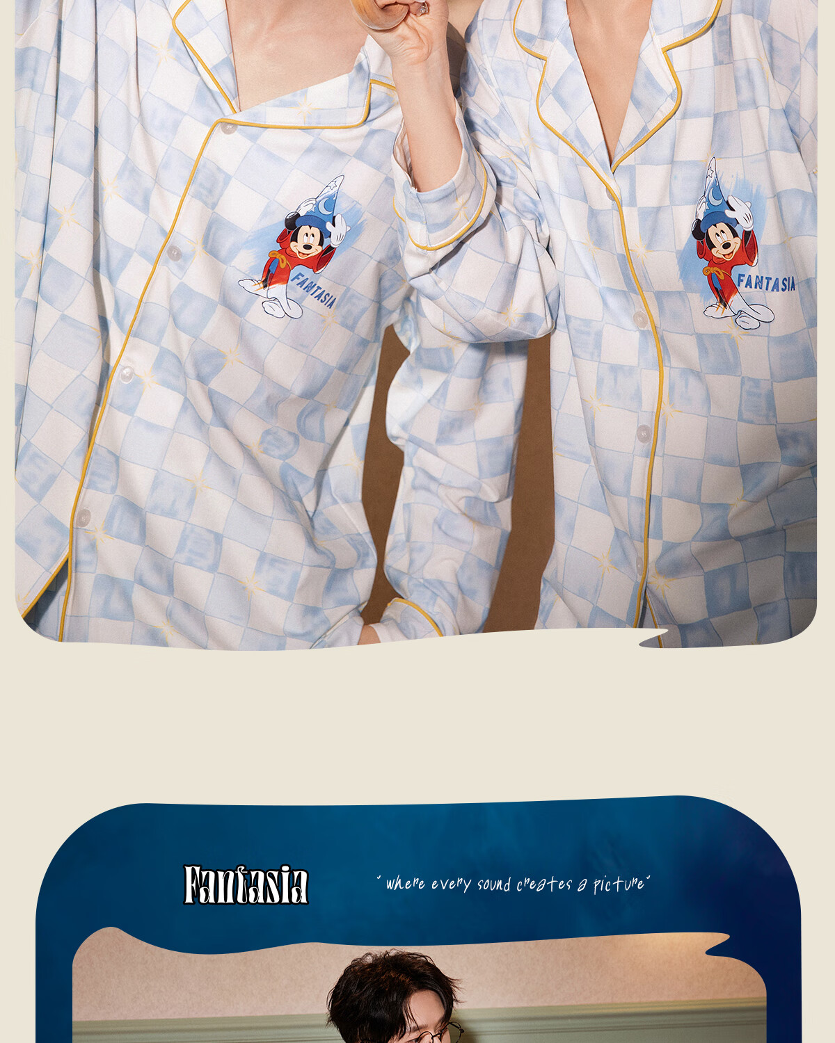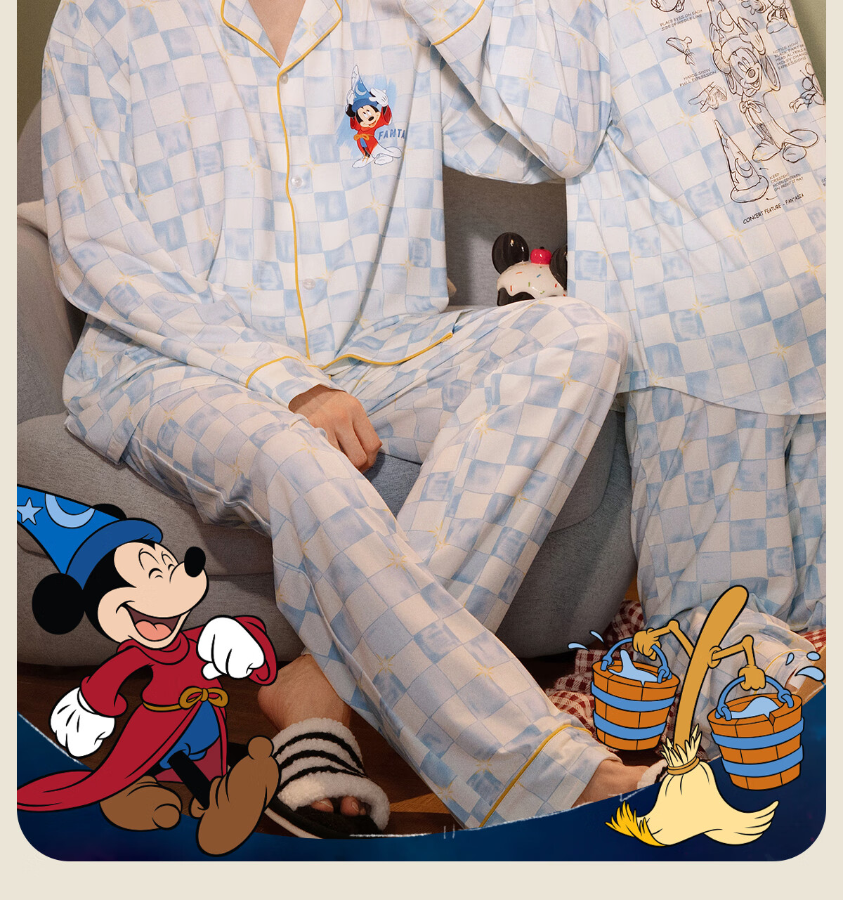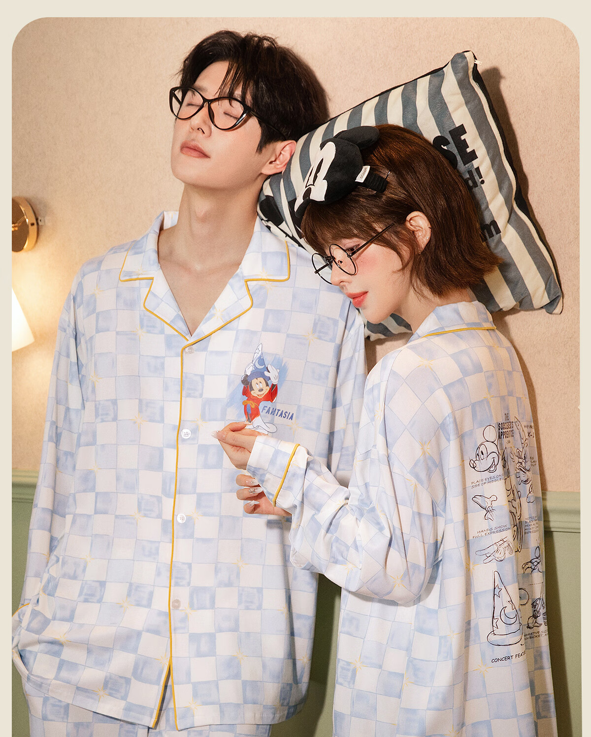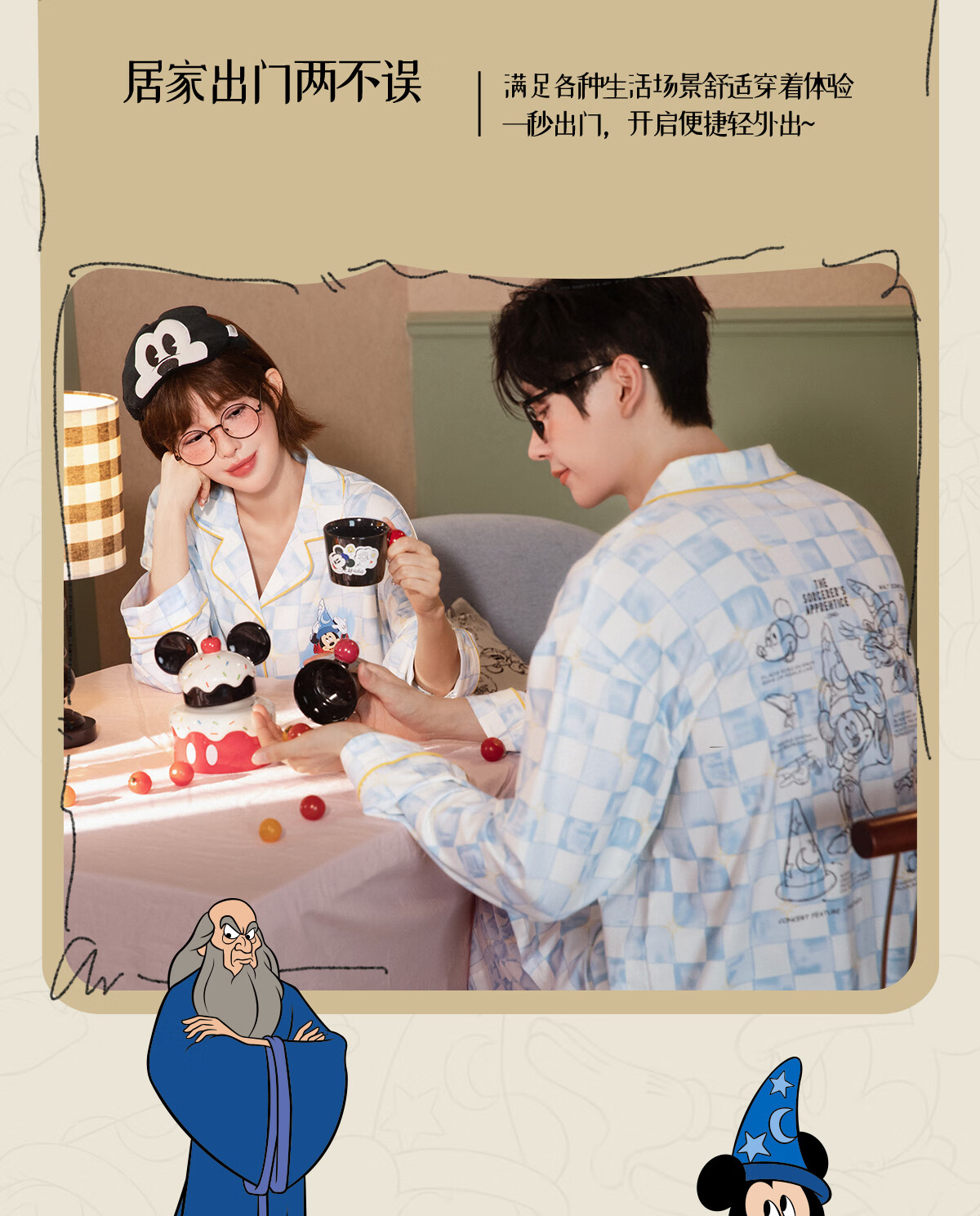 Gongdie Light and Soft Disney Mickey Modal Cotton Couple Pajamas Women's Long Sleeve Spring and Autumn Men's Suit