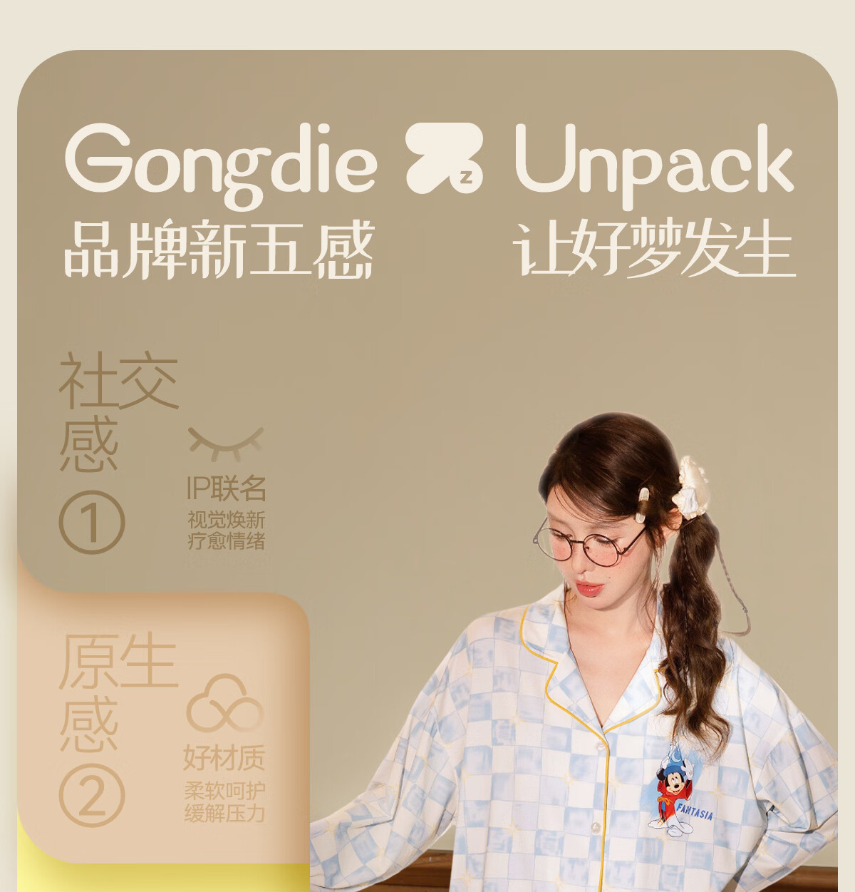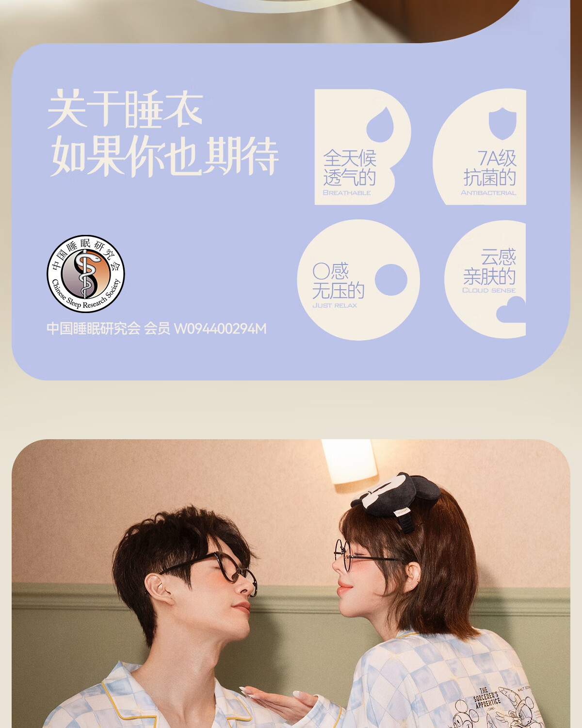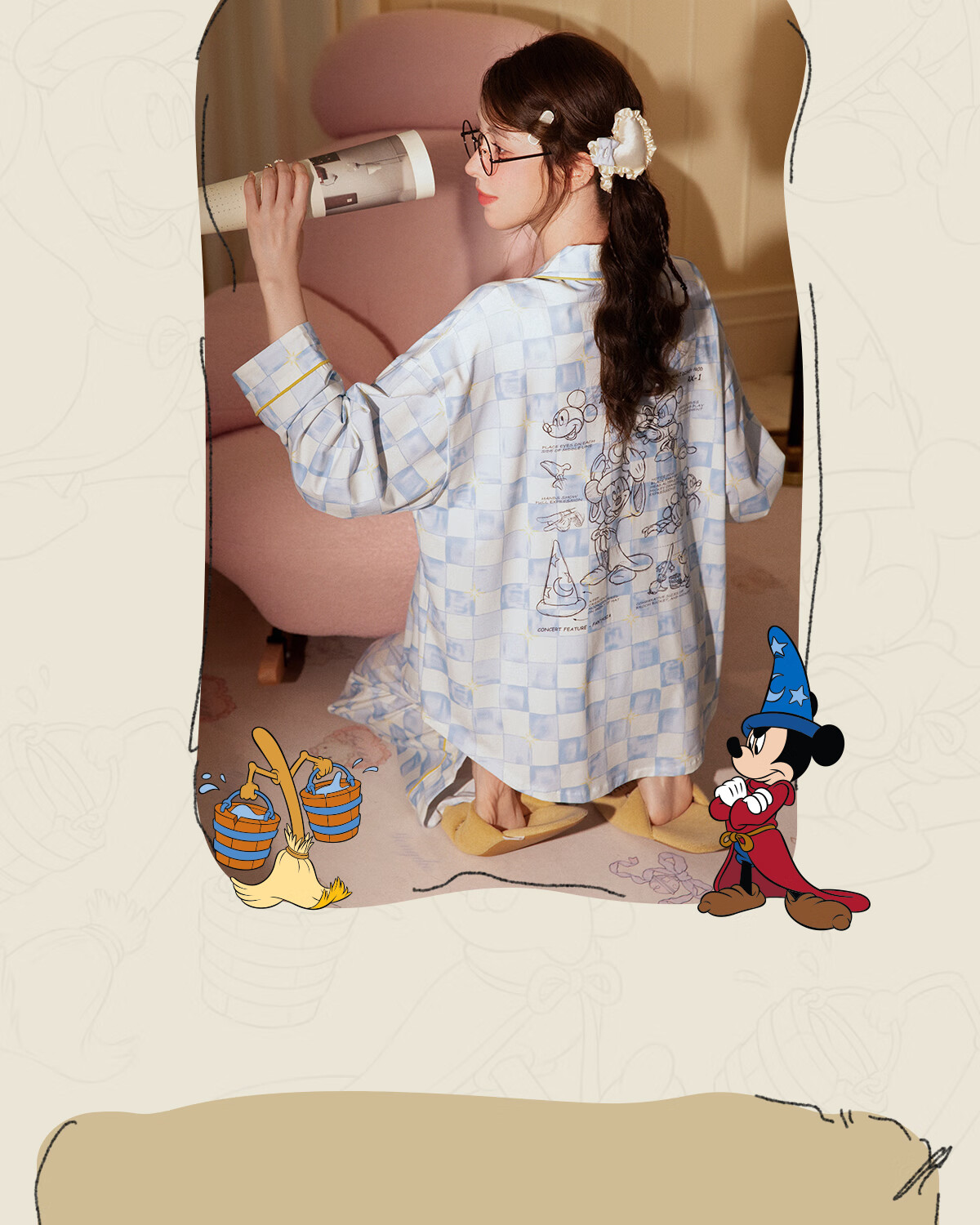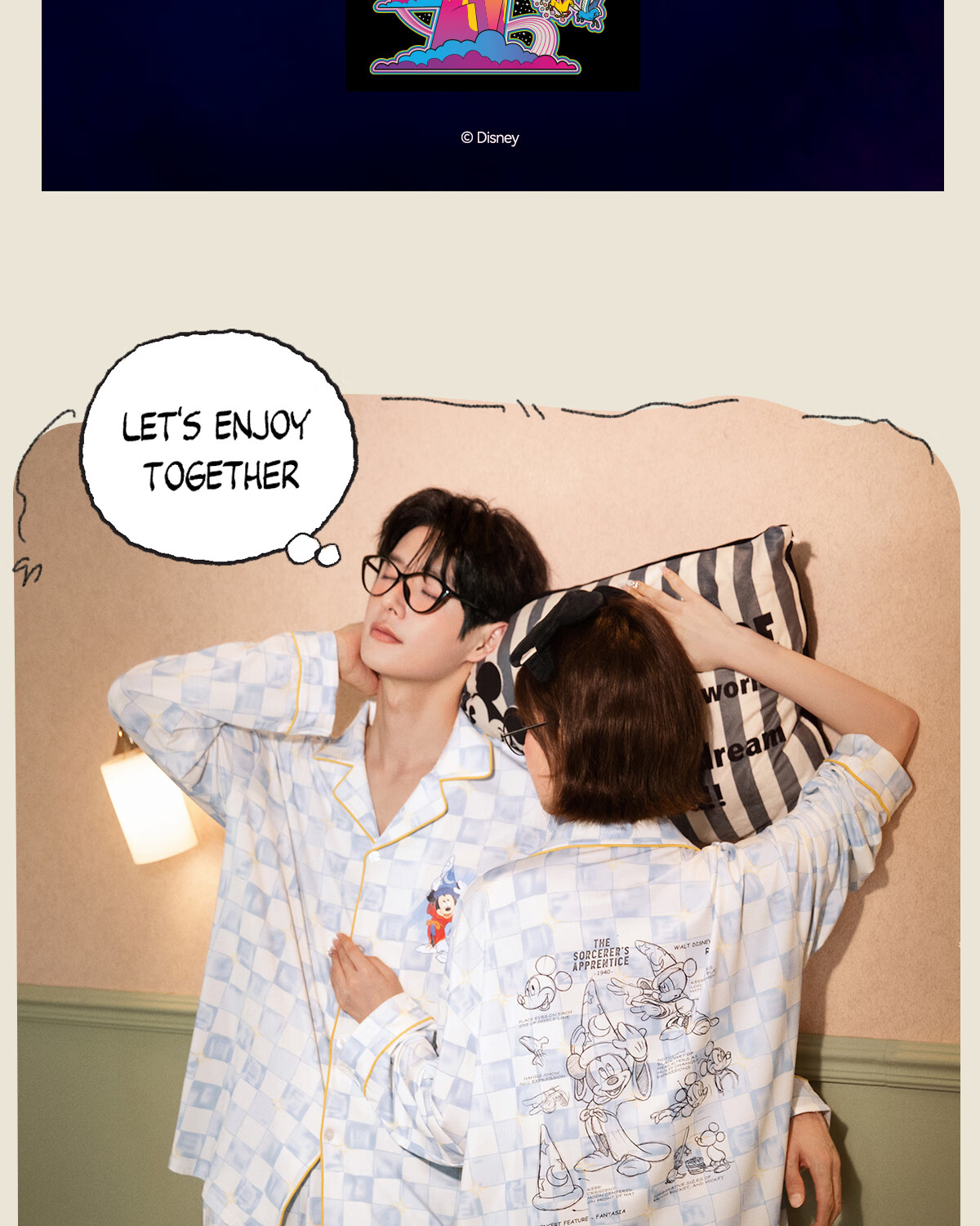 Gongdie Light and Soft Disney Mickey Modal Cotton Couple Pajamas Women's Long Sleeve Spring and Autumn Men's Suit