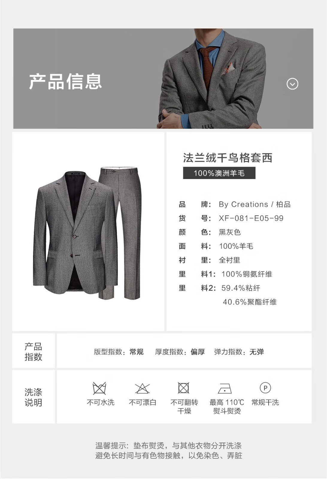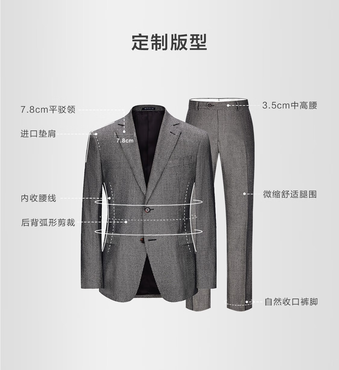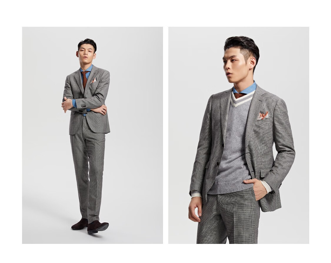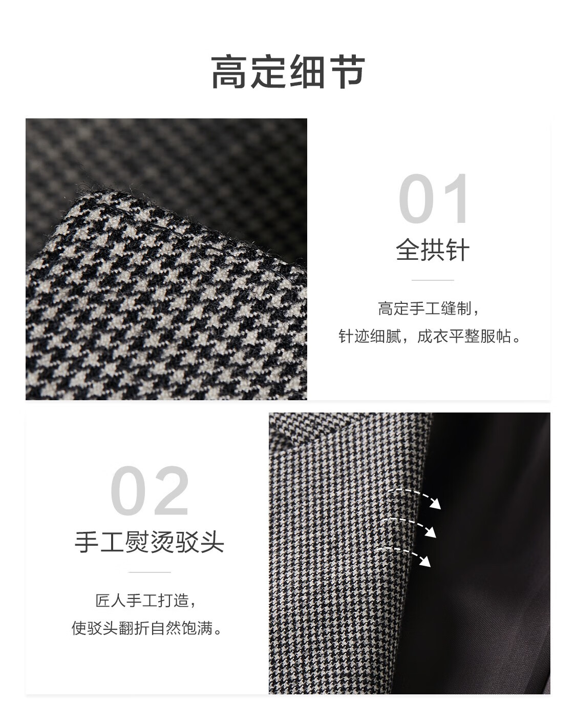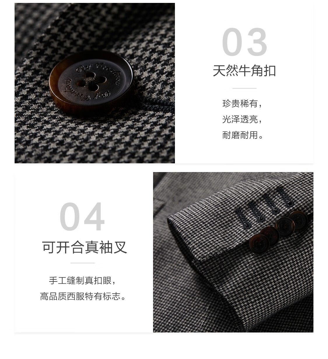 By Creations Pure Wool Business Suit Men's Professional Commuting Formal Houndstooth Flannel Brushed Suit Groom's Dress Black and White Houndstooth 44 (165/84A)