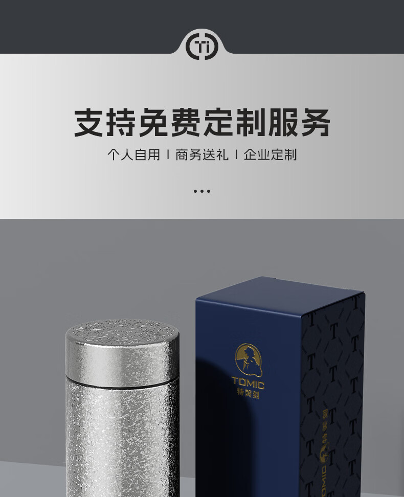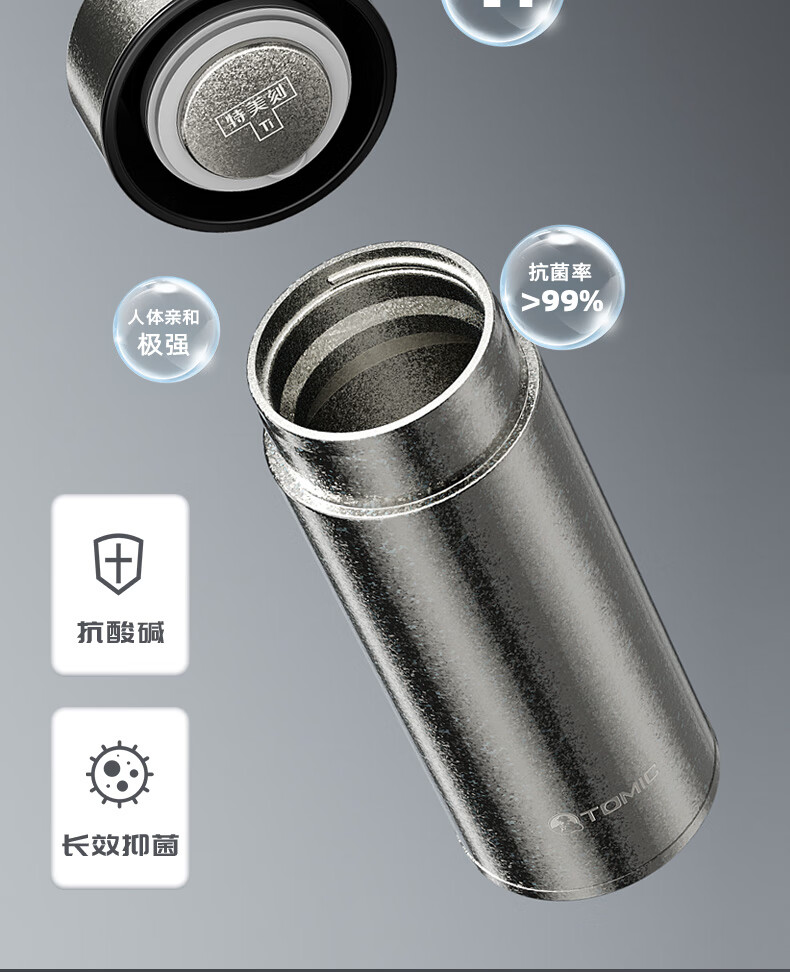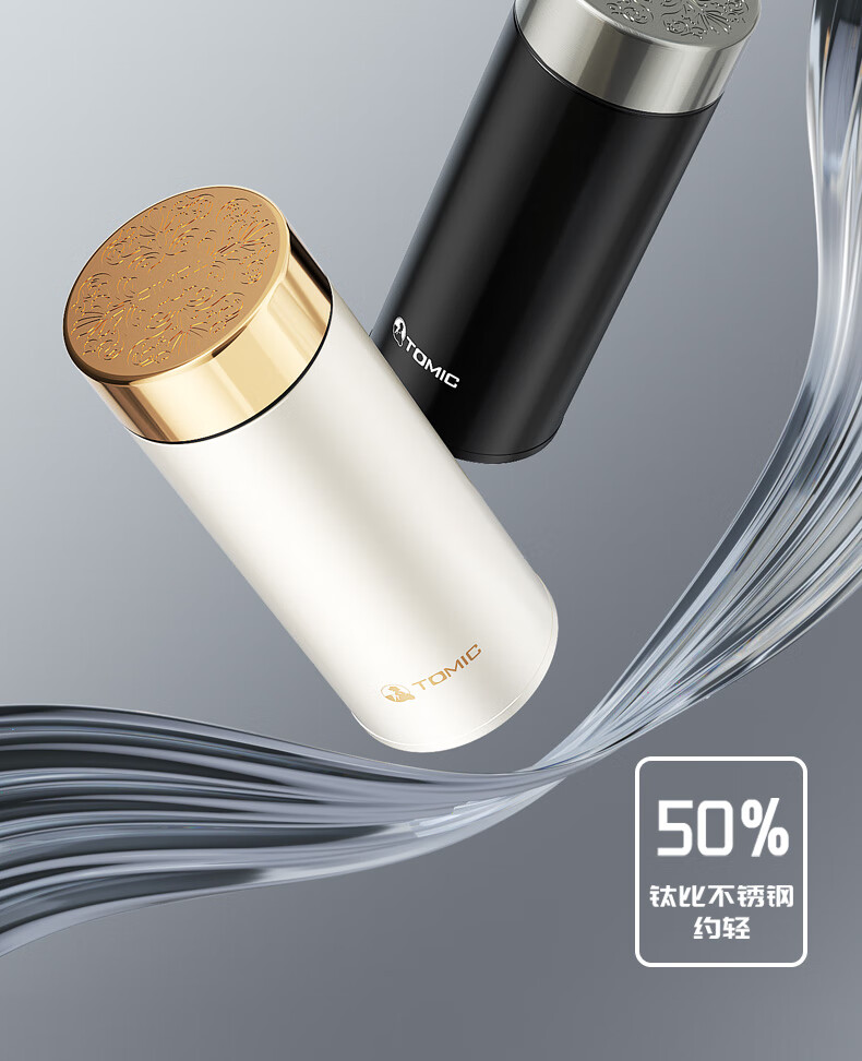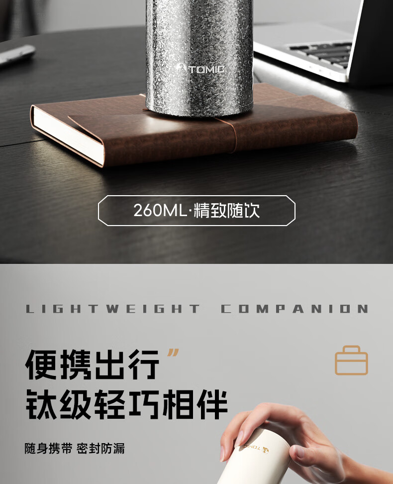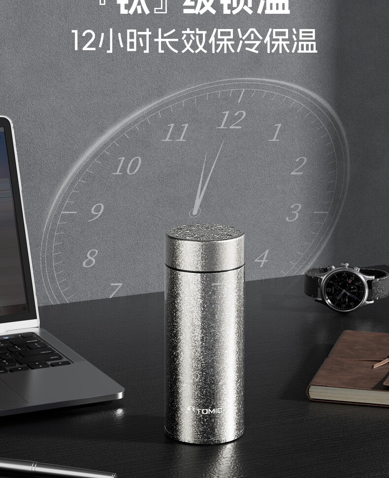 TOMIC pure titanium thermos cup, pure titanium water cup inside and outside, small enough to be put in a backpack, 300ml holiday gift, crystal true color