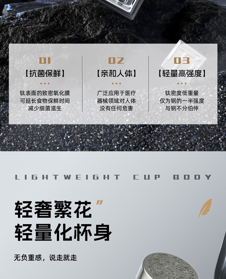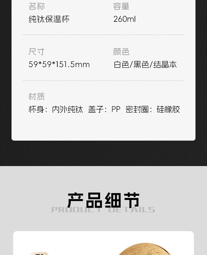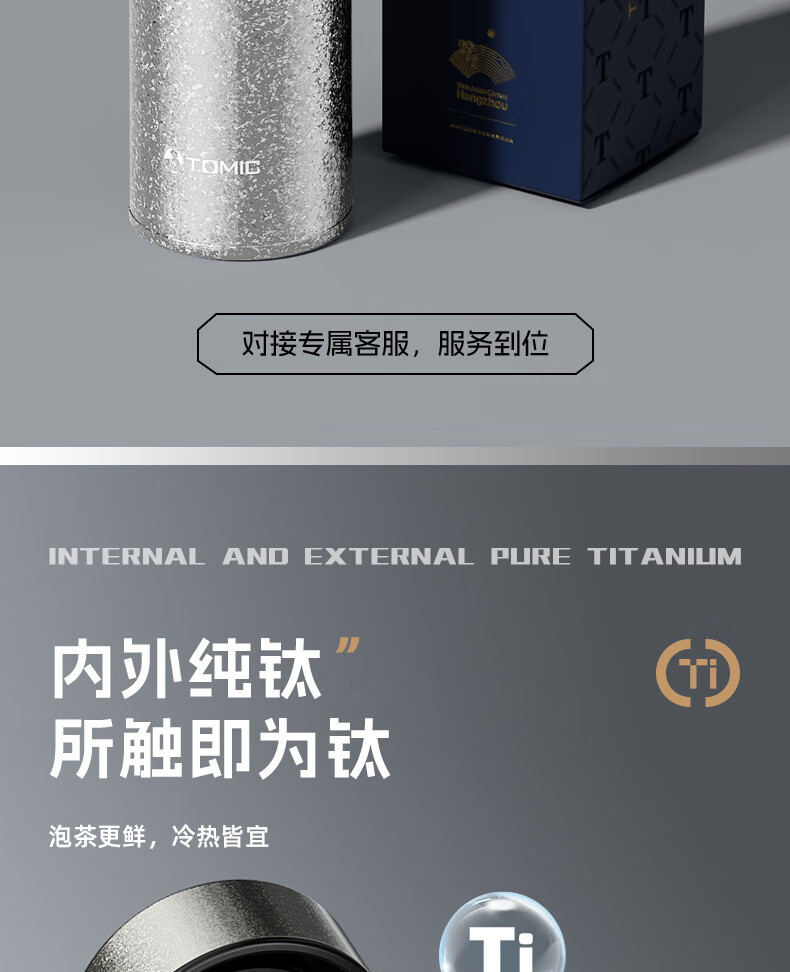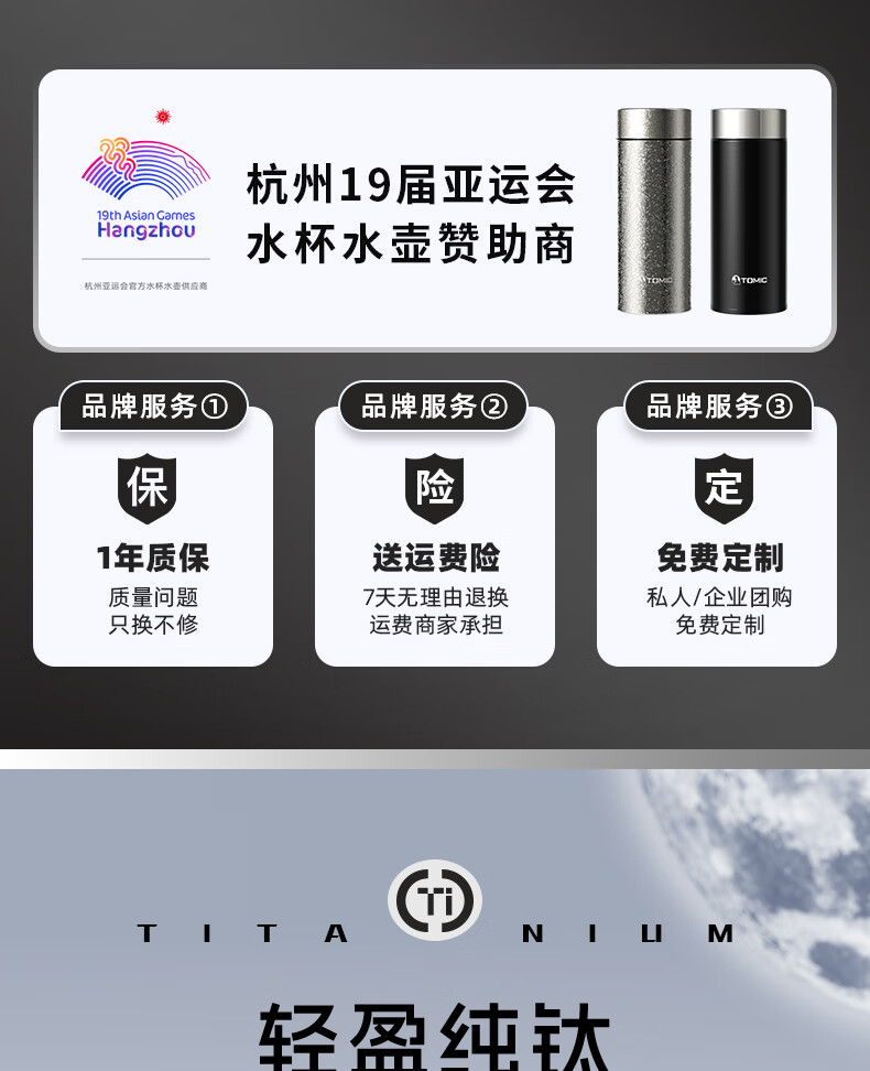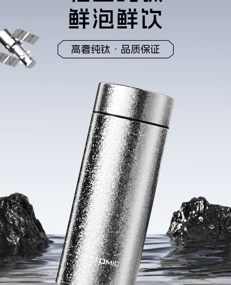 TOMIC pure titanium thermos cup, pure titanium water cup inside and outside, small enough to be put in a backpack, 300ml holiday gift, crystal true color