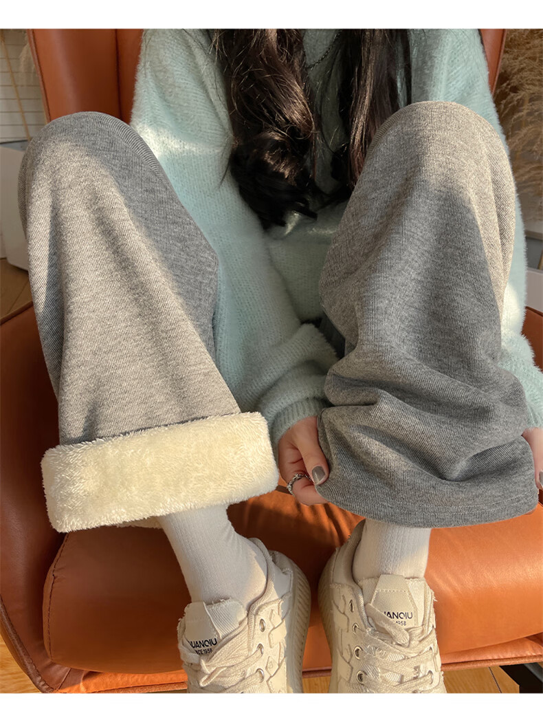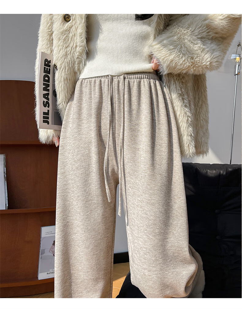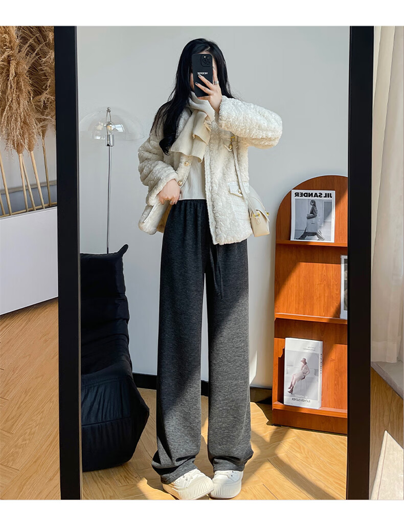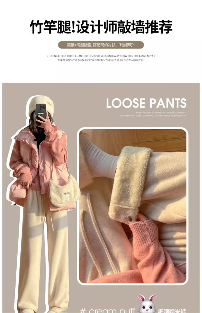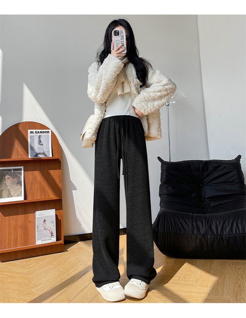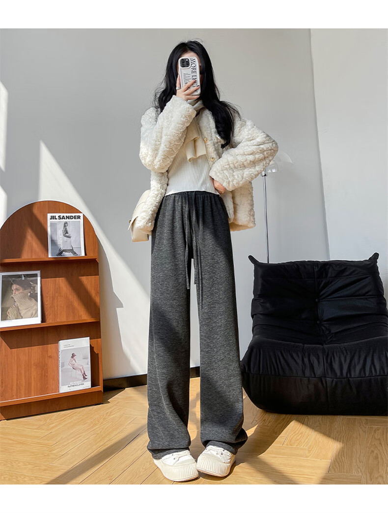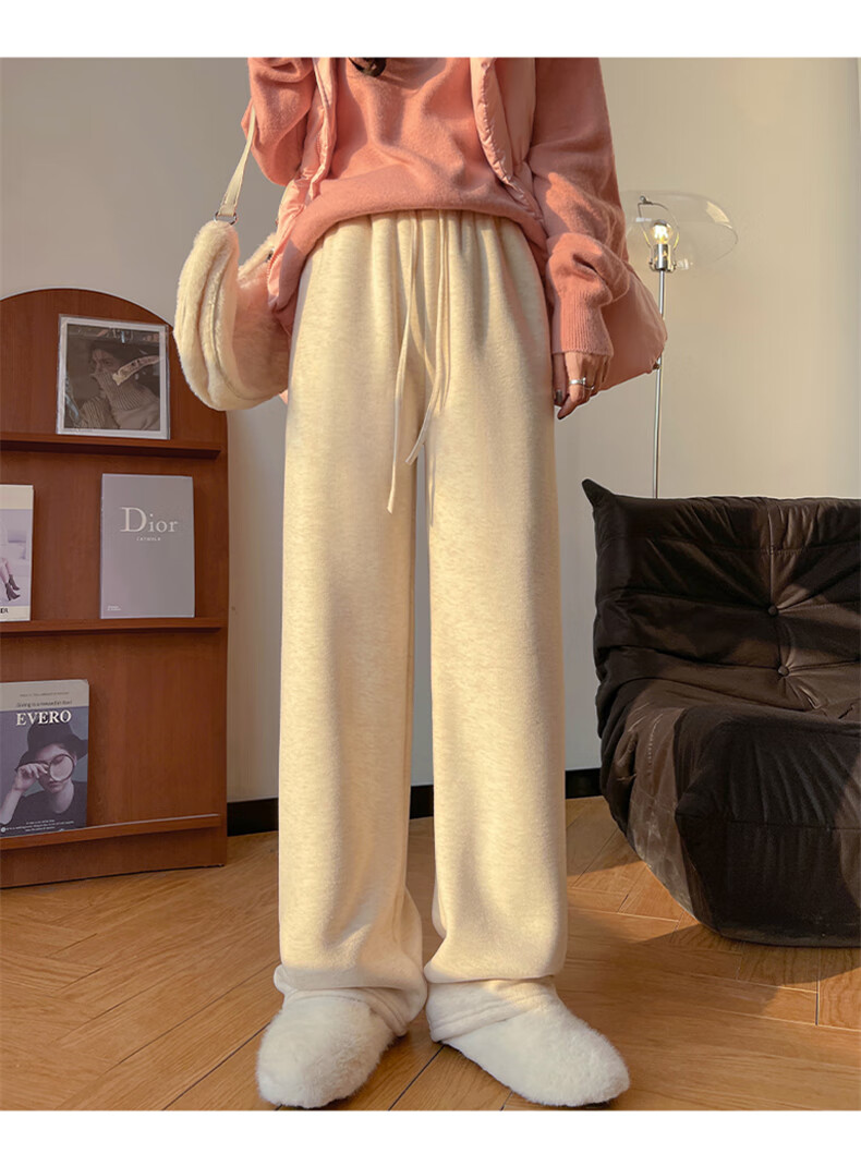 Langsha lamb velvet glutinous rice pants for women winter 2025 new style plus velvet thickened high waist drape straight loose slimming wide leg pants