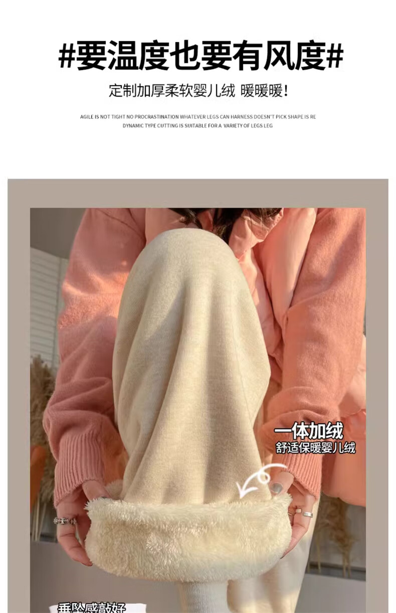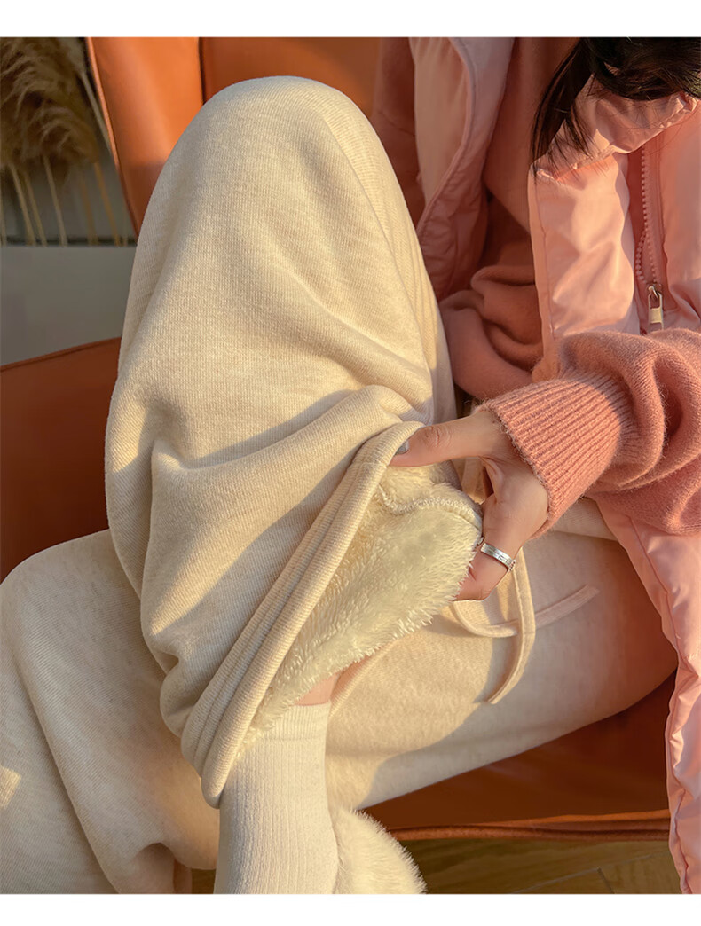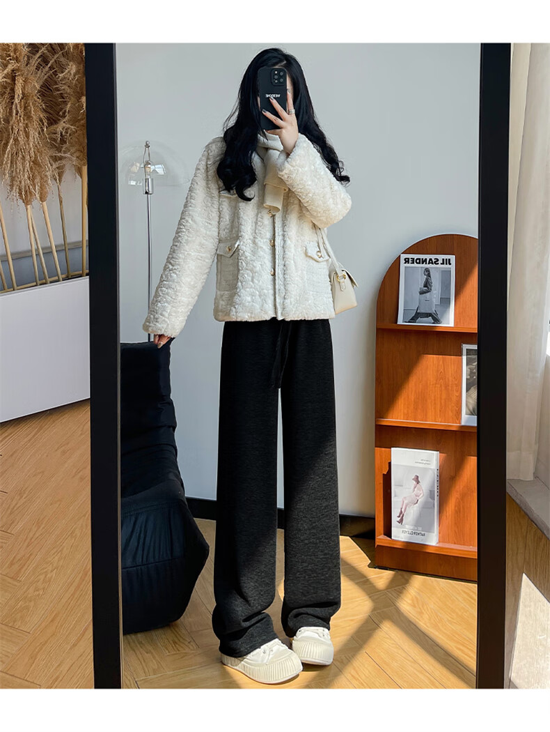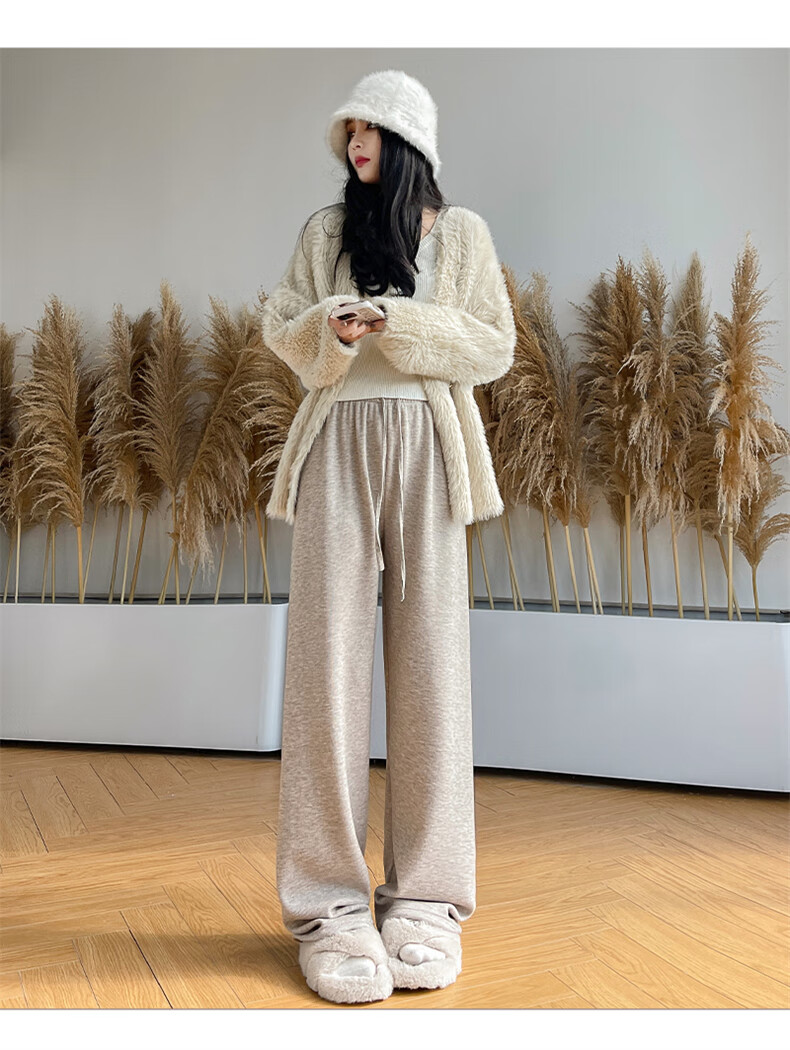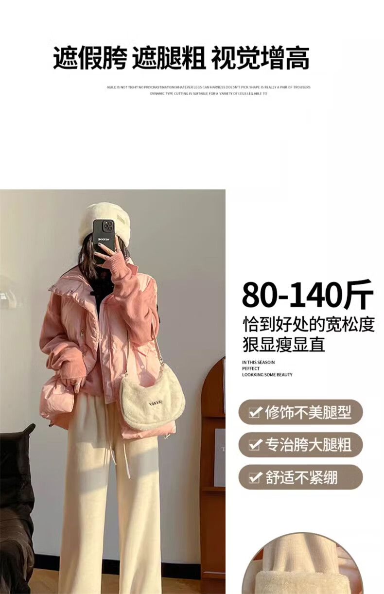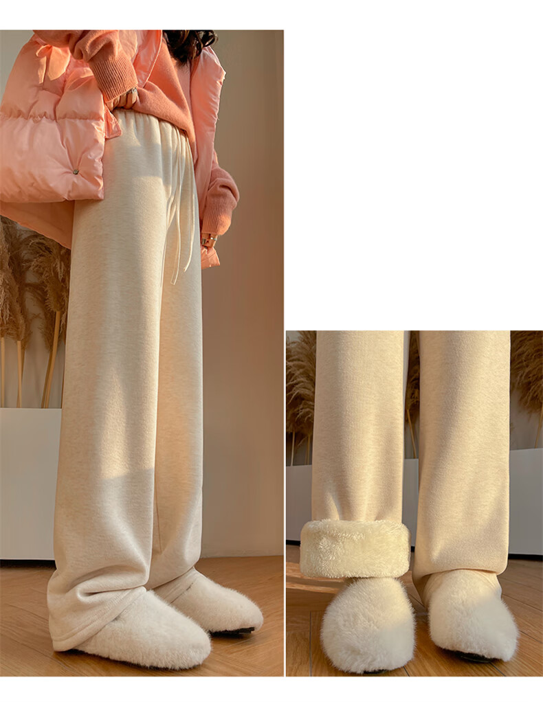 Langsha lamb velvet glutinous rice pants for women winter 2025 new style plus velvet thickened high waist drape straight loose slimming wide leg pants