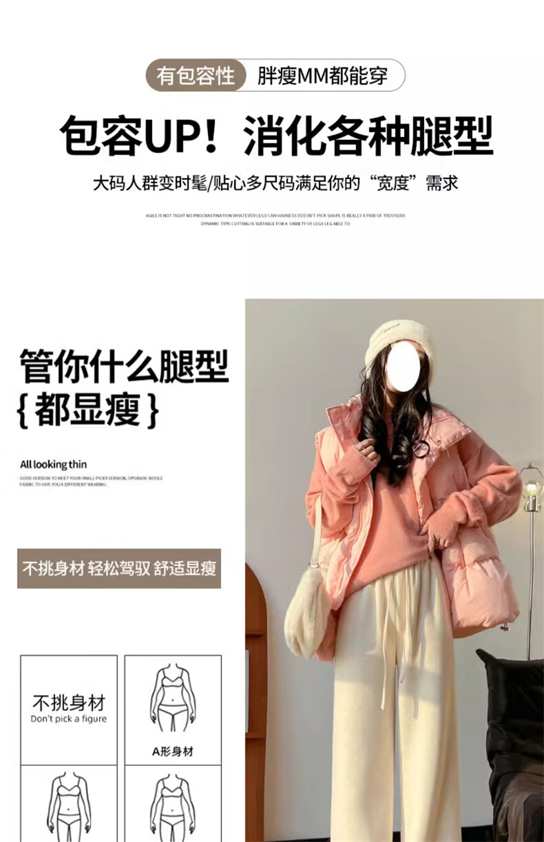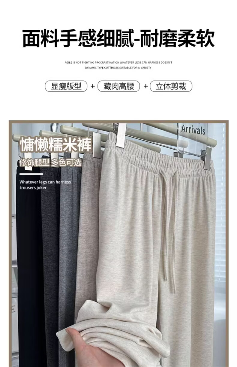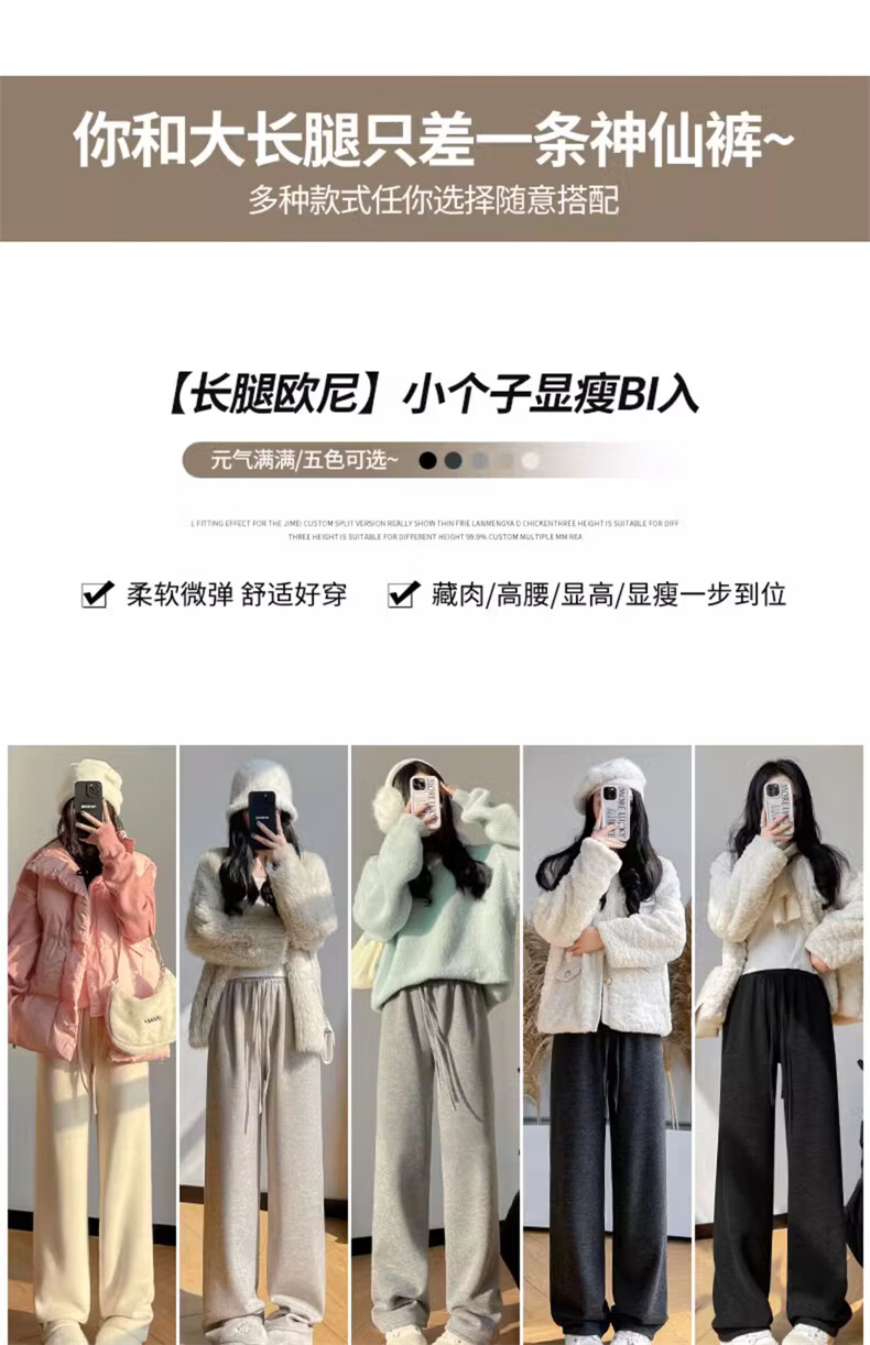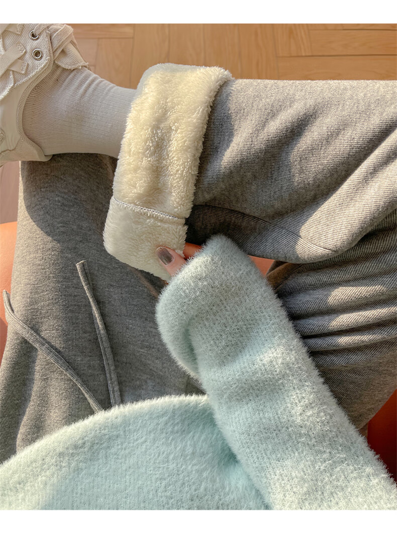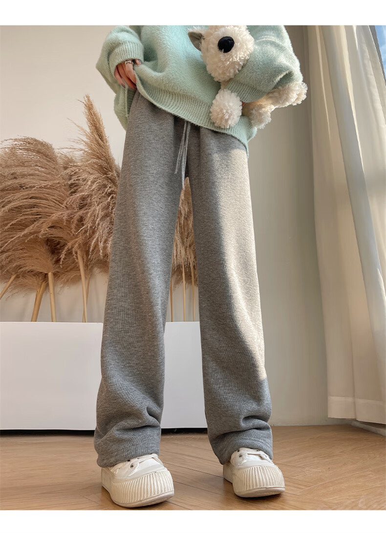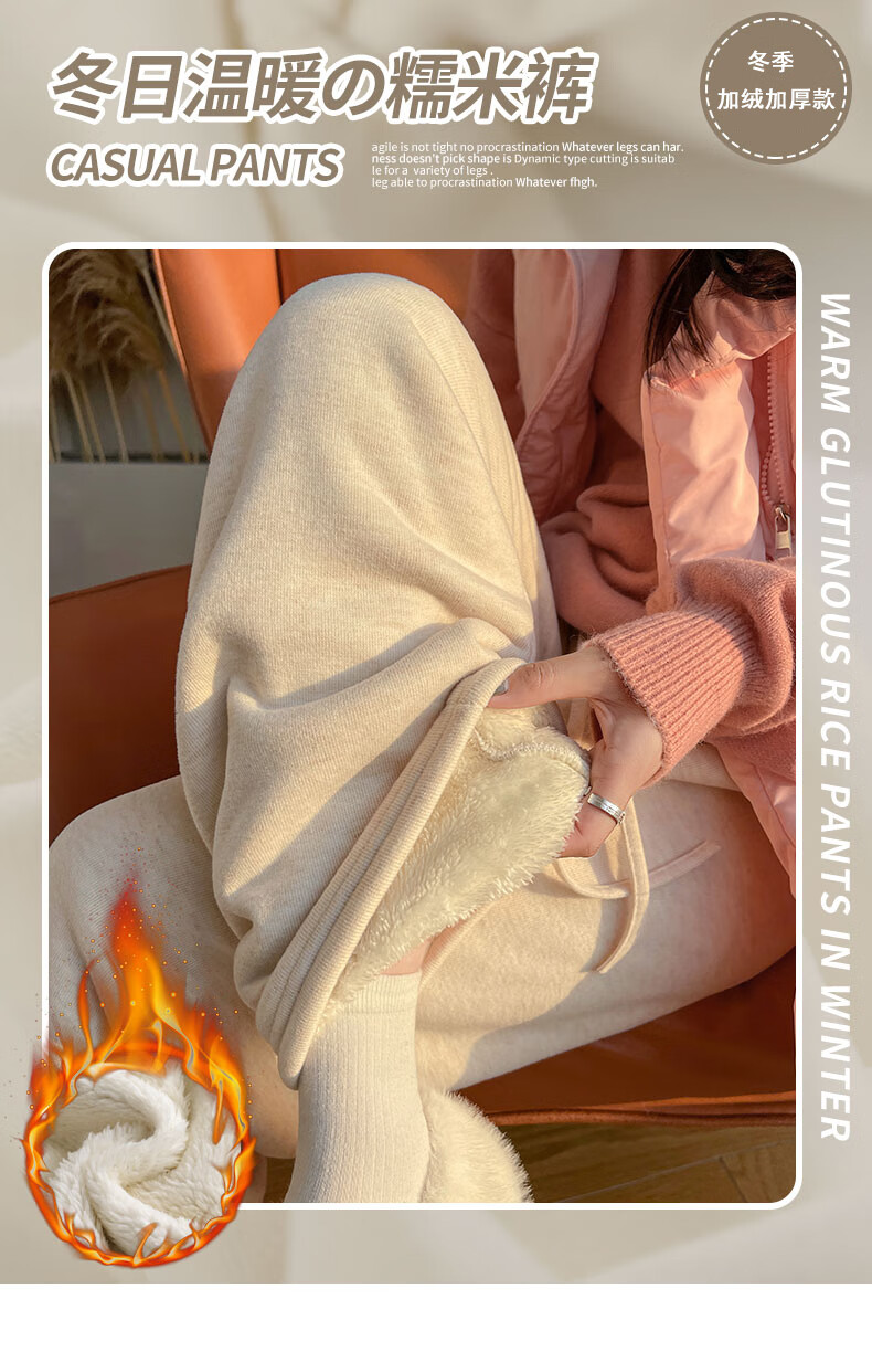 Langsha lamb velvet glutinous rice pants for women winter 2025 new style plus velvet thickened high waist drape straight loose slimming wide leg pants