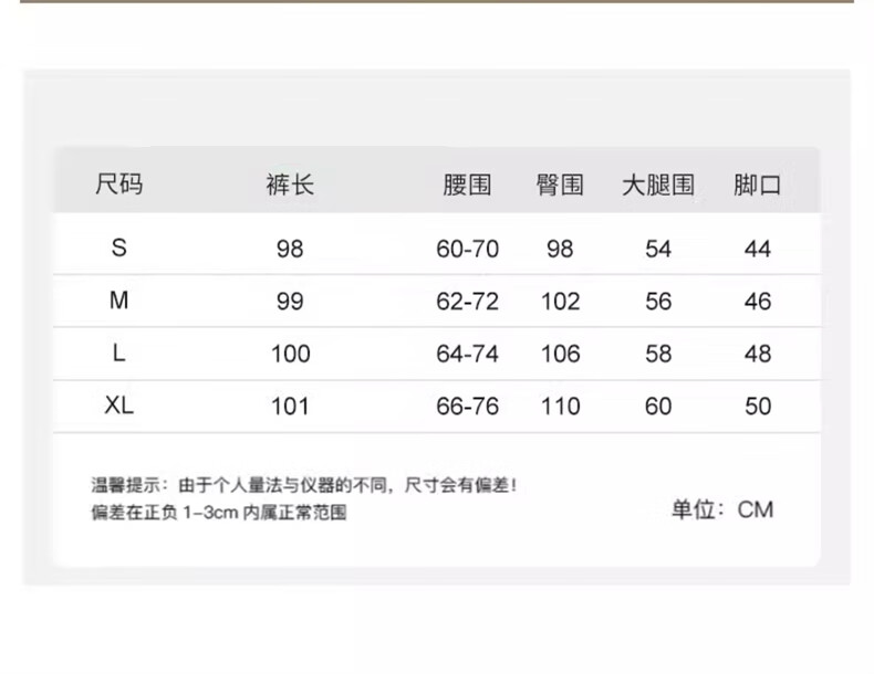 Outseam (cm) 99 cm 101.5 cm 104 cm 106.5 cm 109 cm