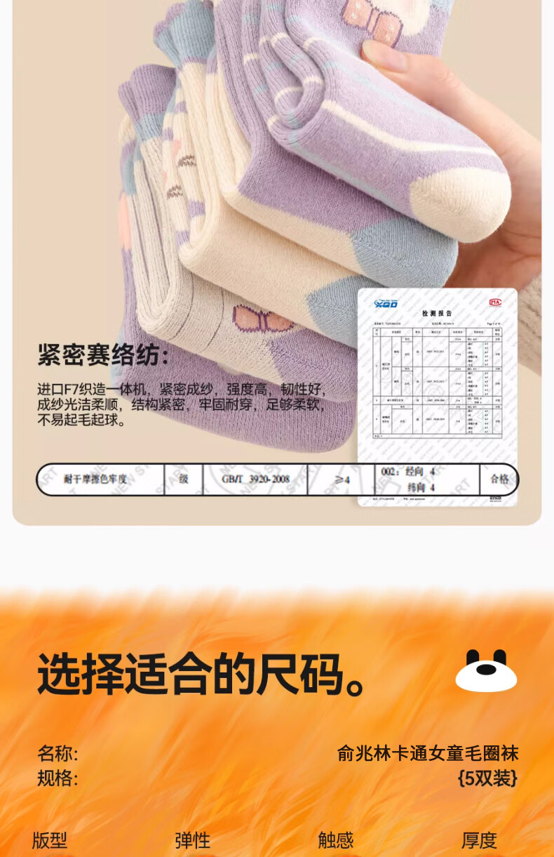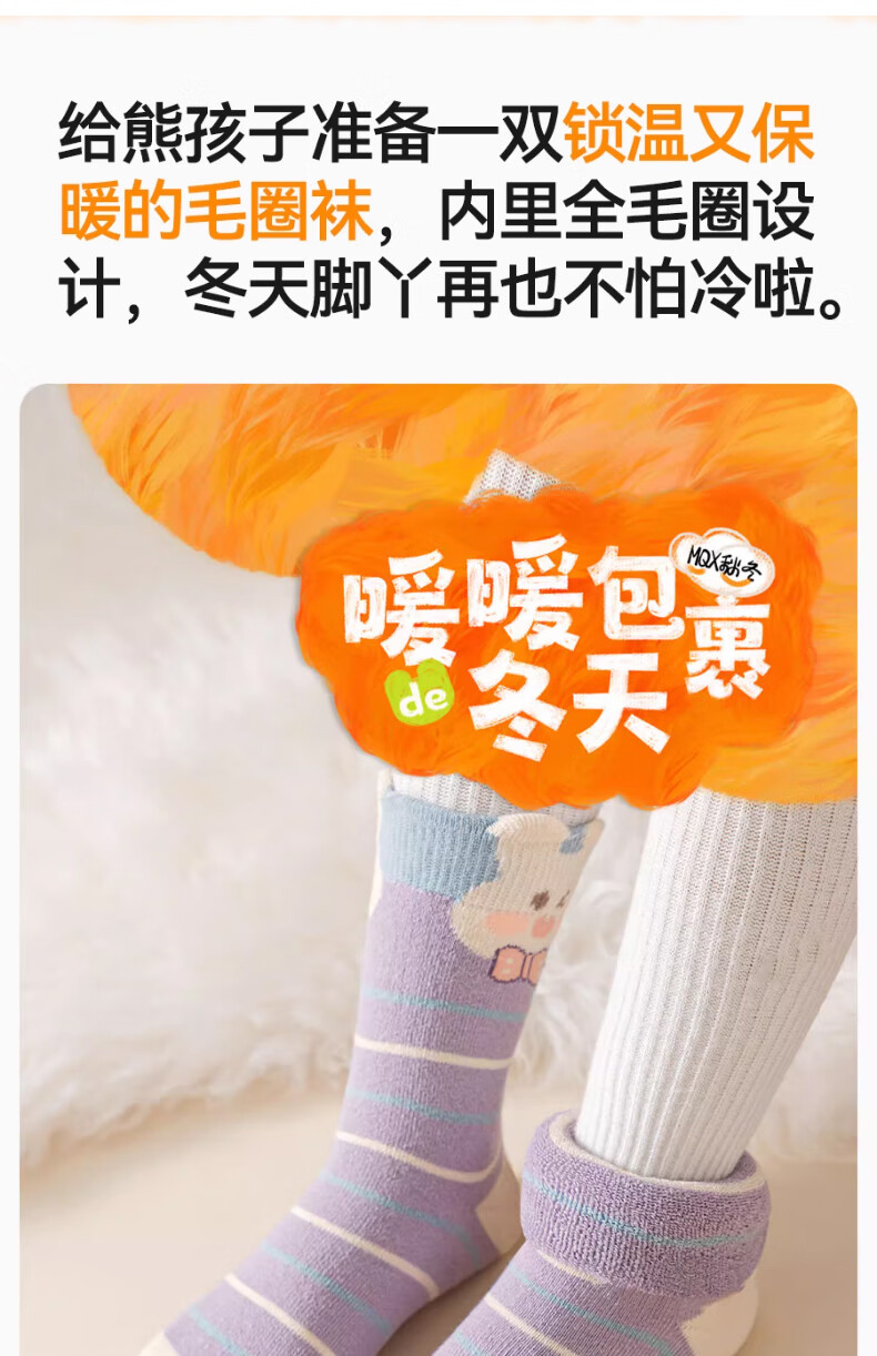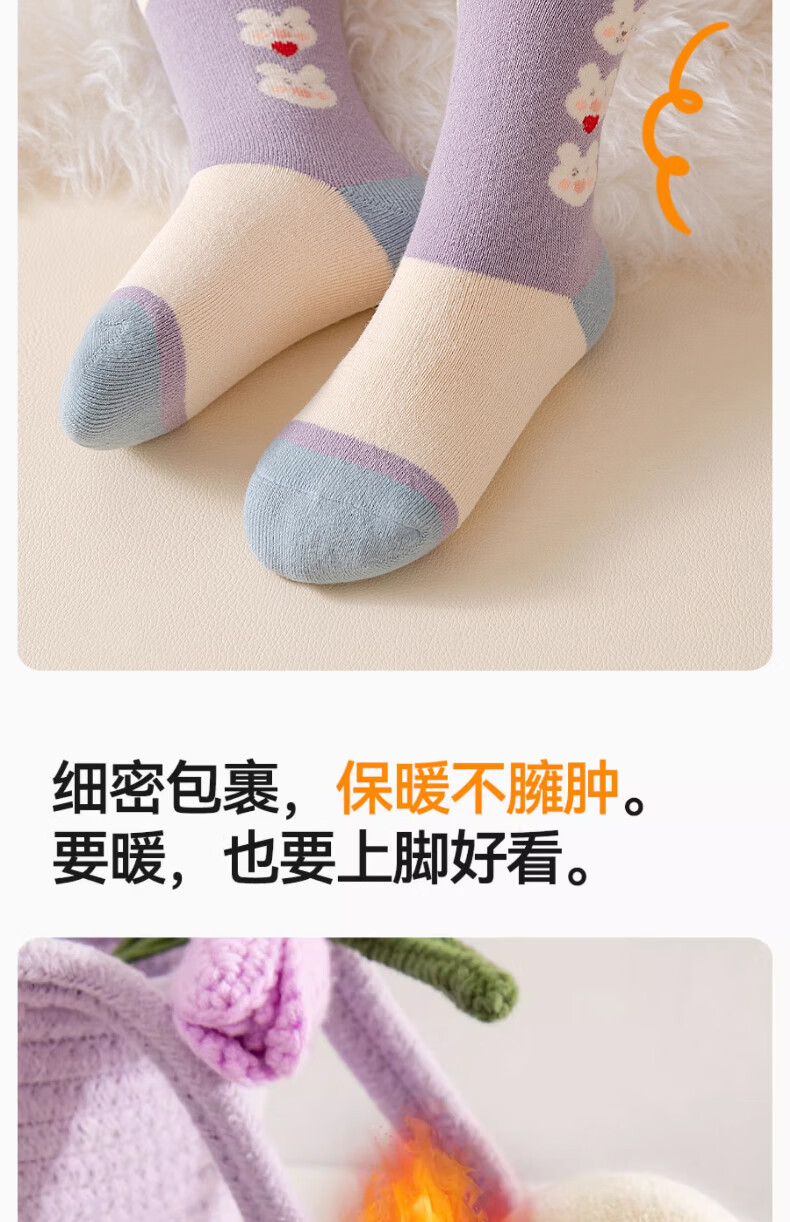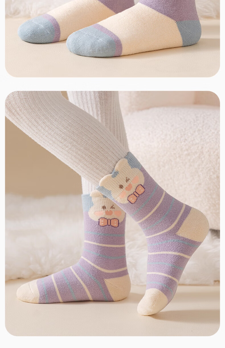 Yu Zhaolin 5 pairs of girls' socks, autumn and winter children's velvet thickened terry socks, girls' baby winter mid-calf socks, warm socks