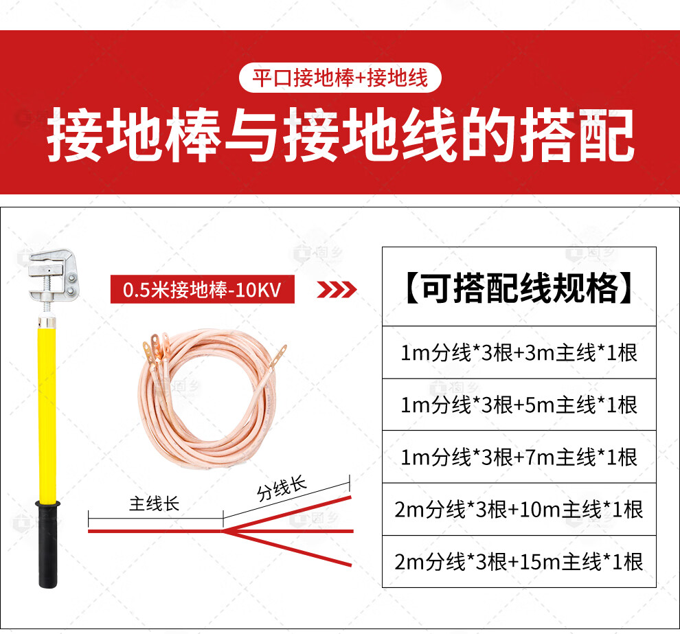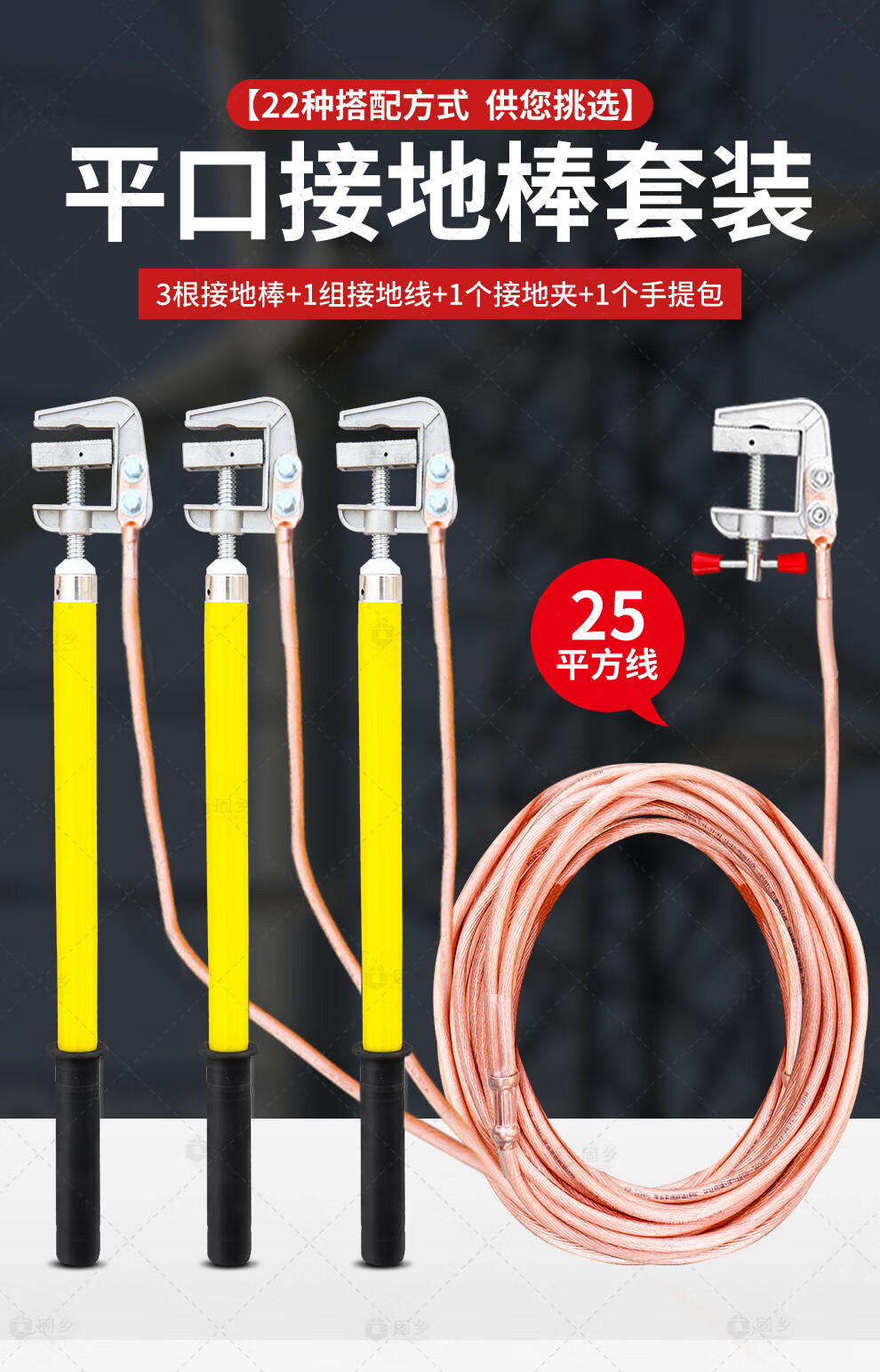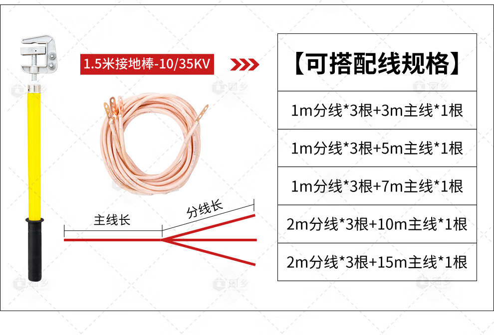 Guxiang high-voltage grounding wire, 25 square meters of wire in distribution room, flat grounding rod, insulating rod, 10kv1m rod and wire length 1 meter * 3 pieces + 5 meters main line