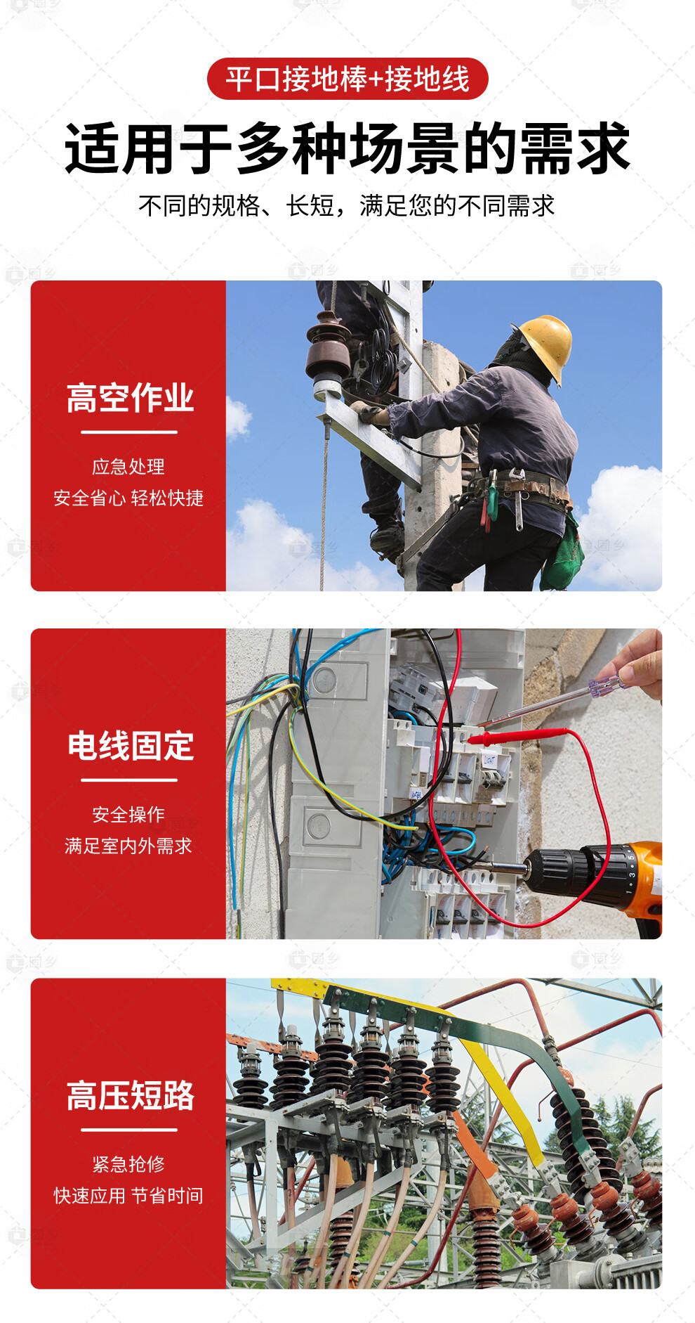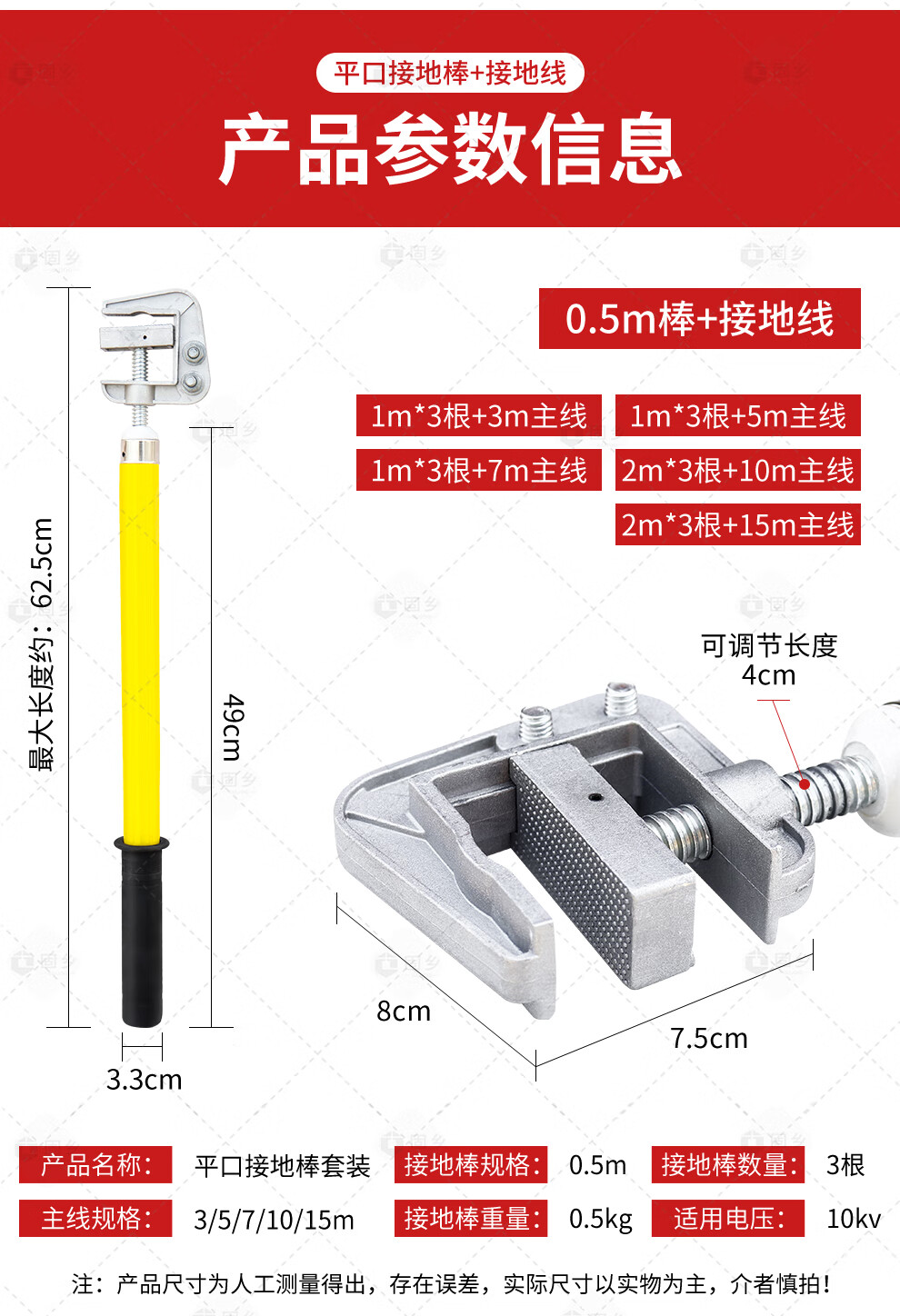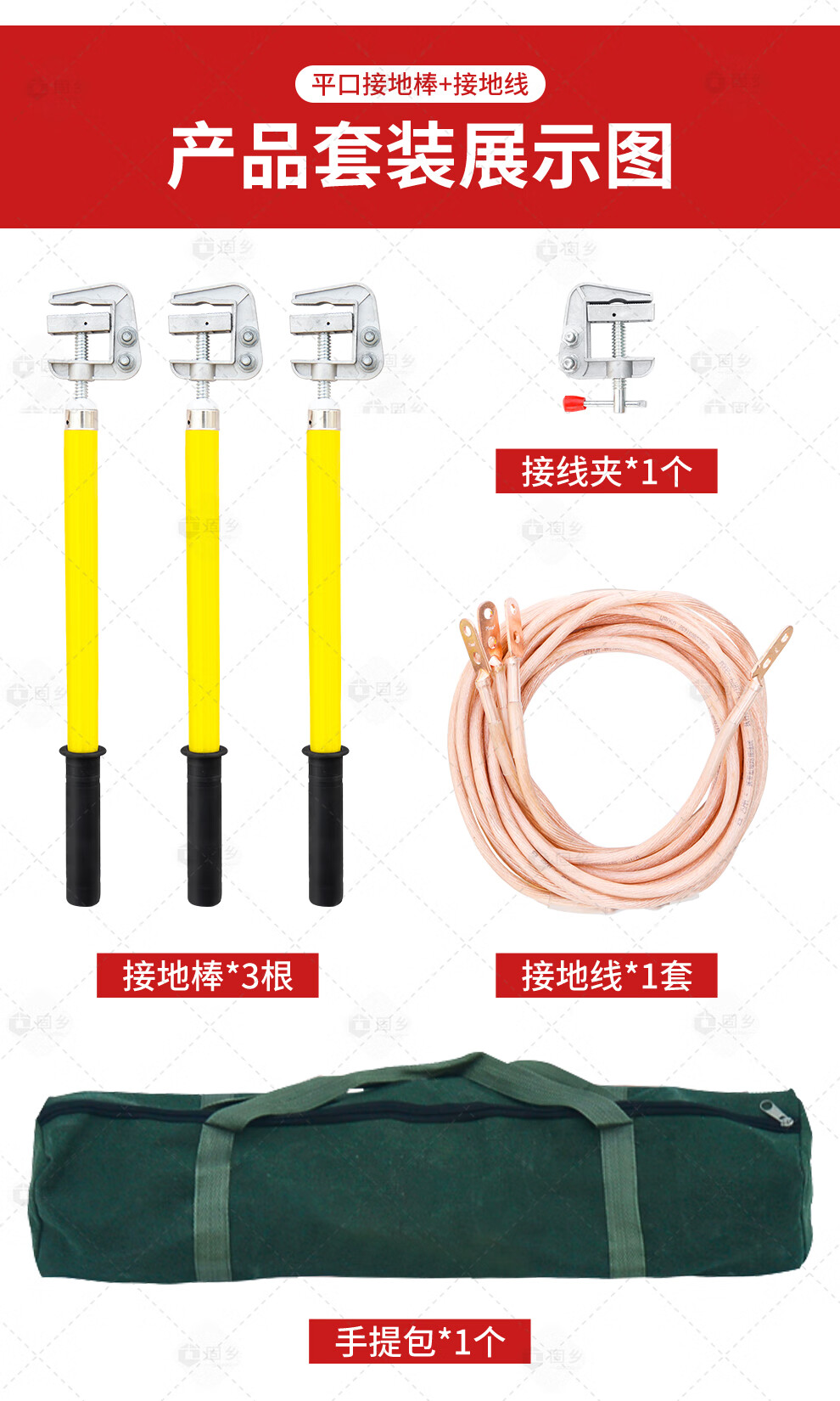 Guxiang high-voltage grounding wire, 25 square meters of wire in distribution room, flat grounding rod, insulating rod, 10kv1m rod and wire length 1 meter * 3 pieces + 5 meters main line