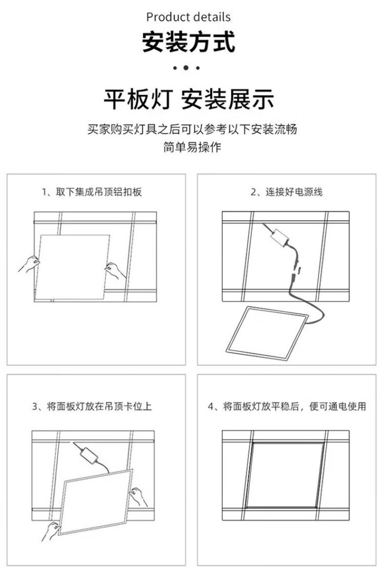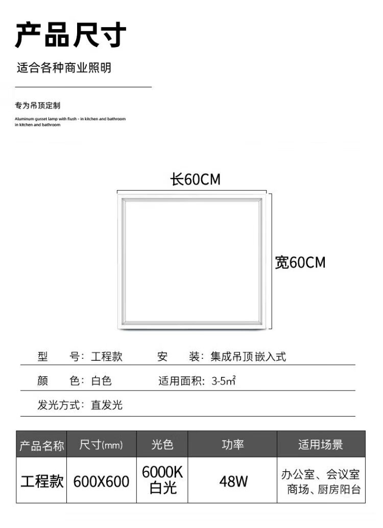Phantom color integrated ceiling square led panel light gusset light 600x600 flat panel light office office building property community lighting 60*60cm white light 48W (single package)