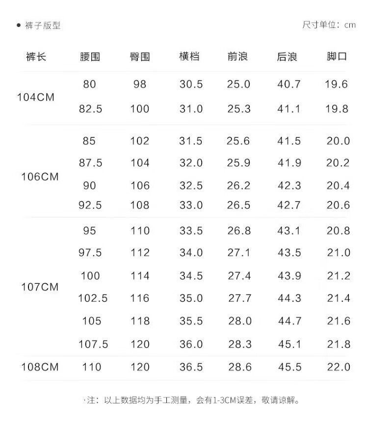 Outseam (cm) 99 cm 101.5 cm 104 cm 106.5 cm 109 cm