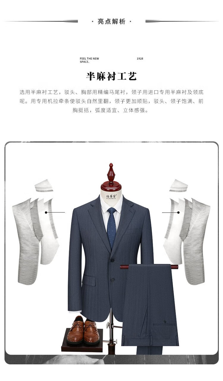 Peromon half linen lining + wool 100% men's suit business advanced half linen lining wool suit