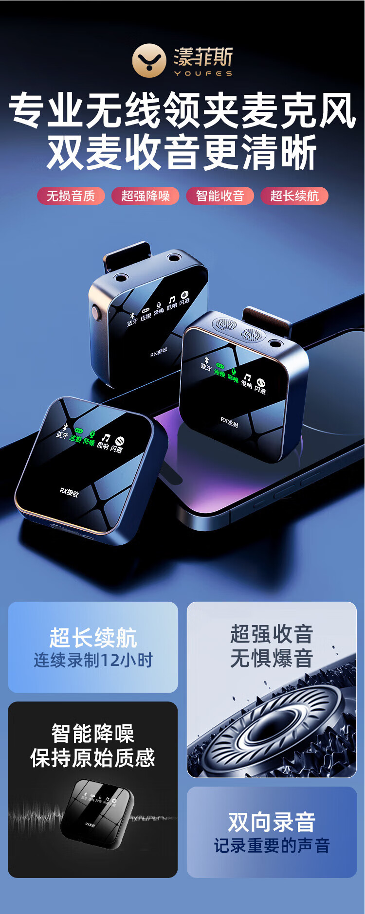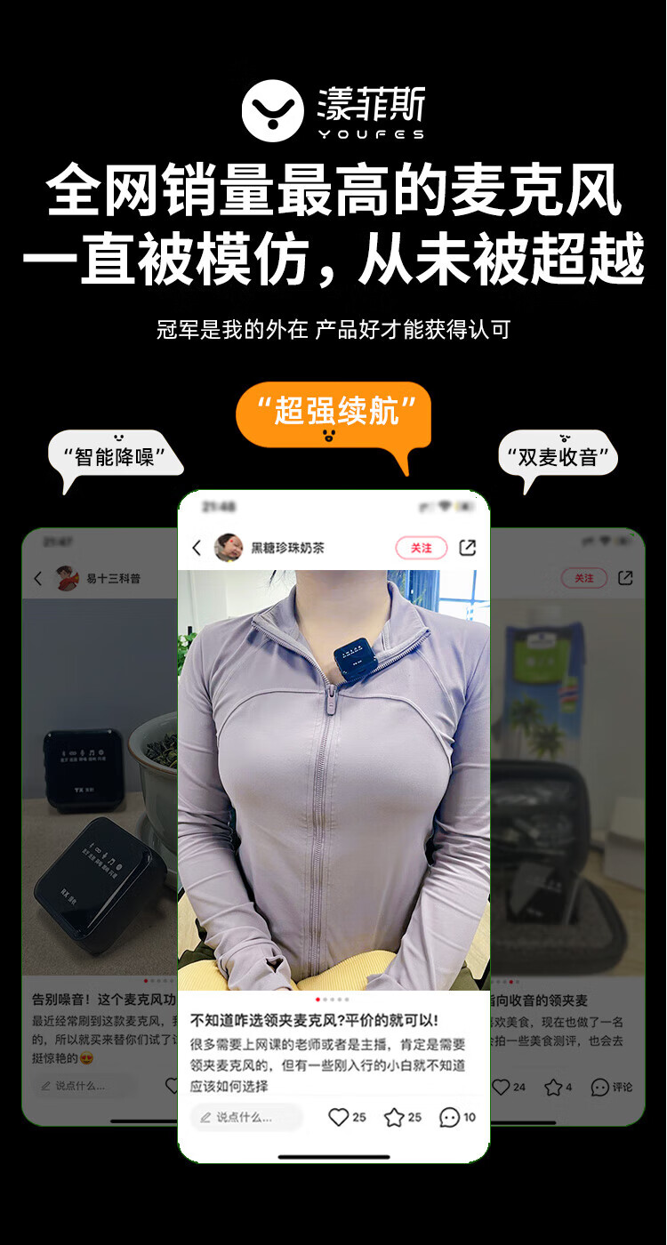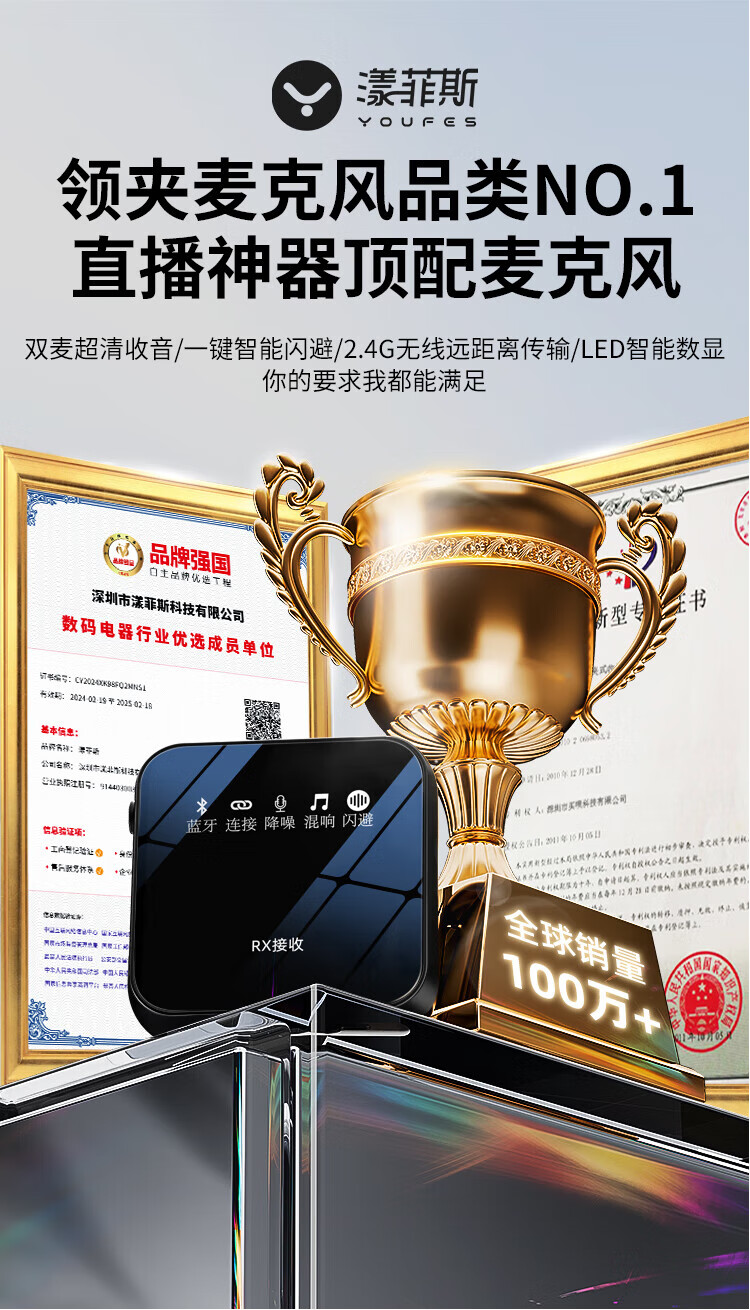 Yangfeisi Radio 0 Negative Reviews Wireless Lavalier Microphone Anchor Live Recording Equipment Outdoor Douyin K Song Radio Microphone Professional Noise Reduction Microphone Mobile Phone Computer Camera One to Two