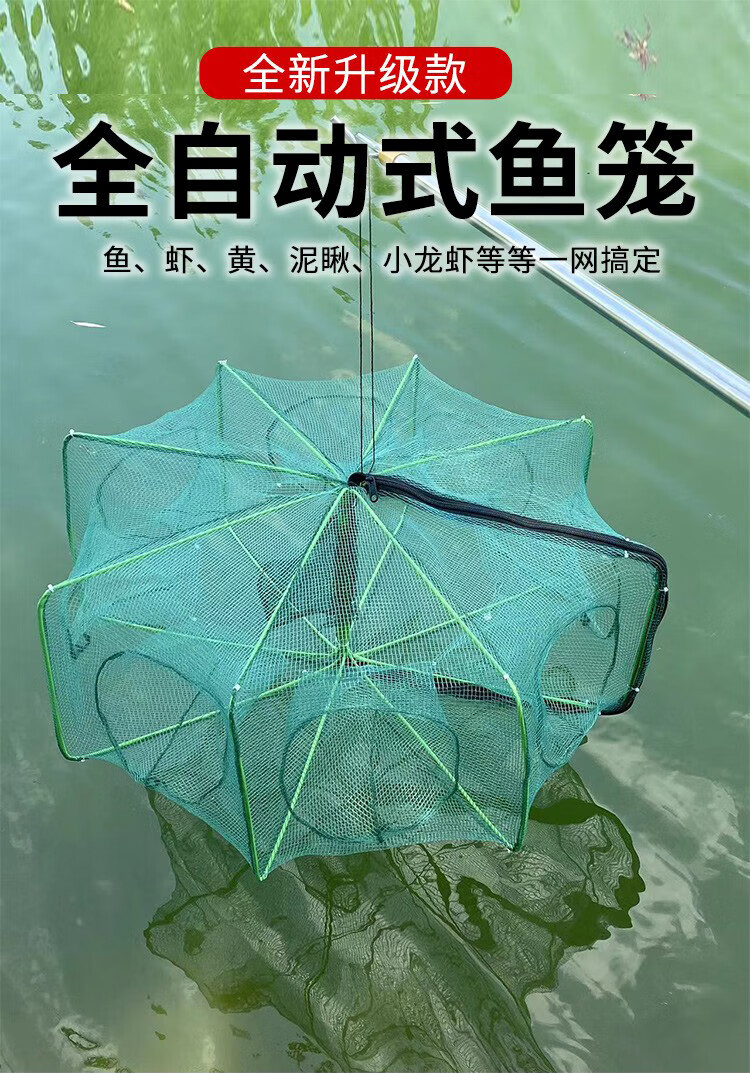 Jingjing Folding Shrimp Cage Fishing Cage Fishing Net Catch eel Fishing Net Lobster Cage Shrimp Net Catch Crab Fishing Cage 8 holes