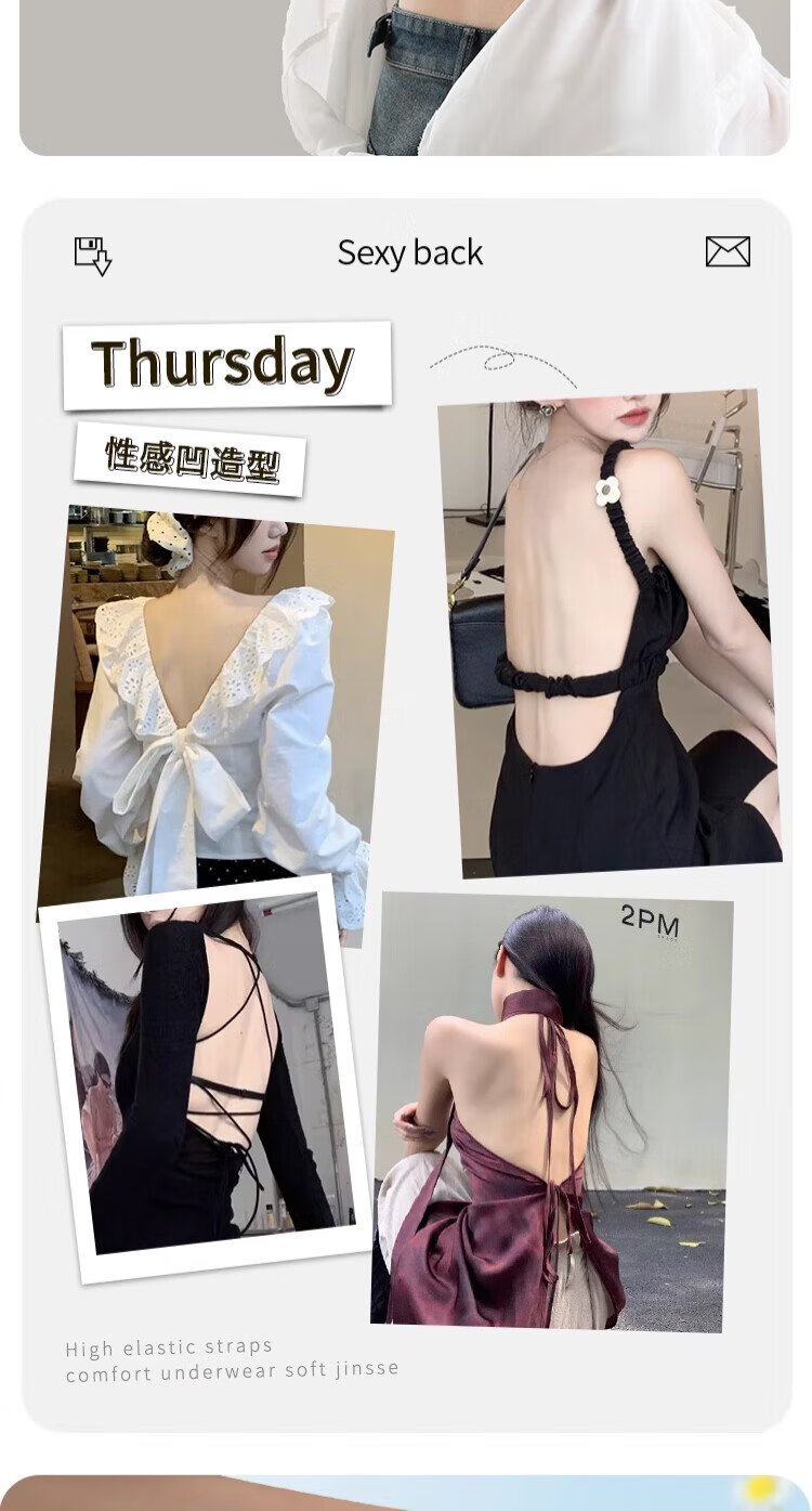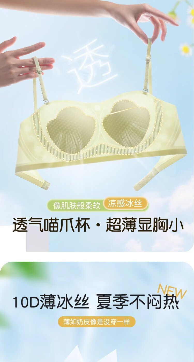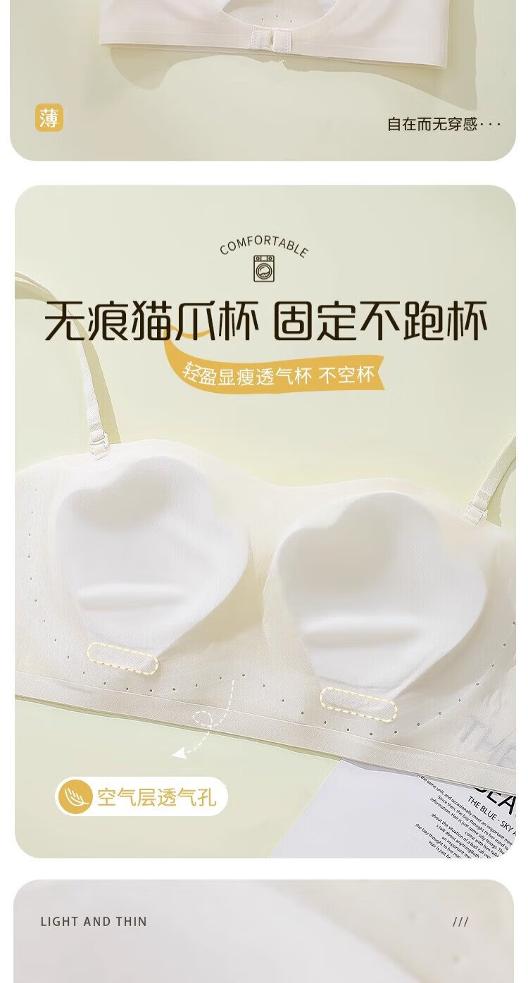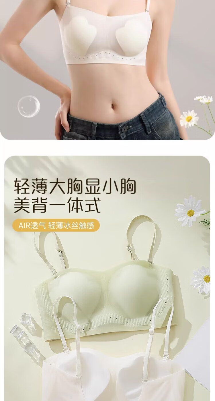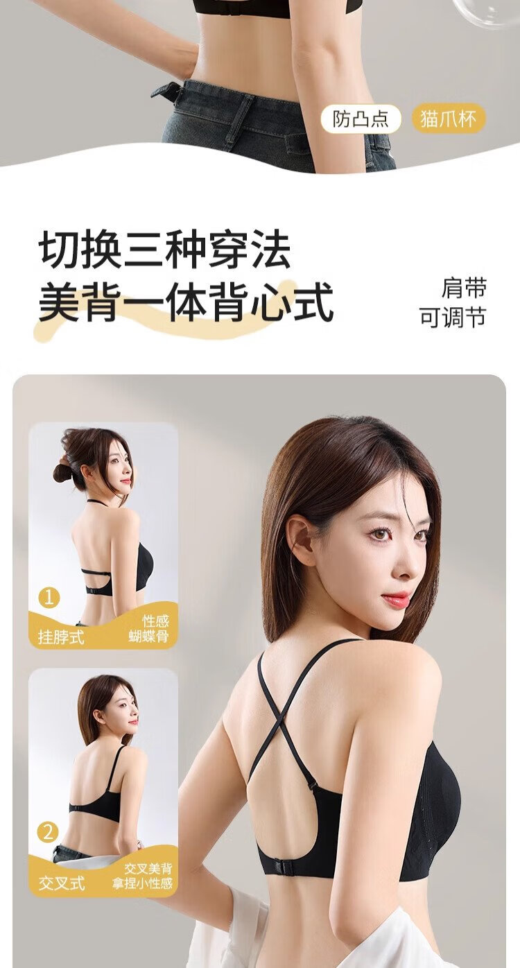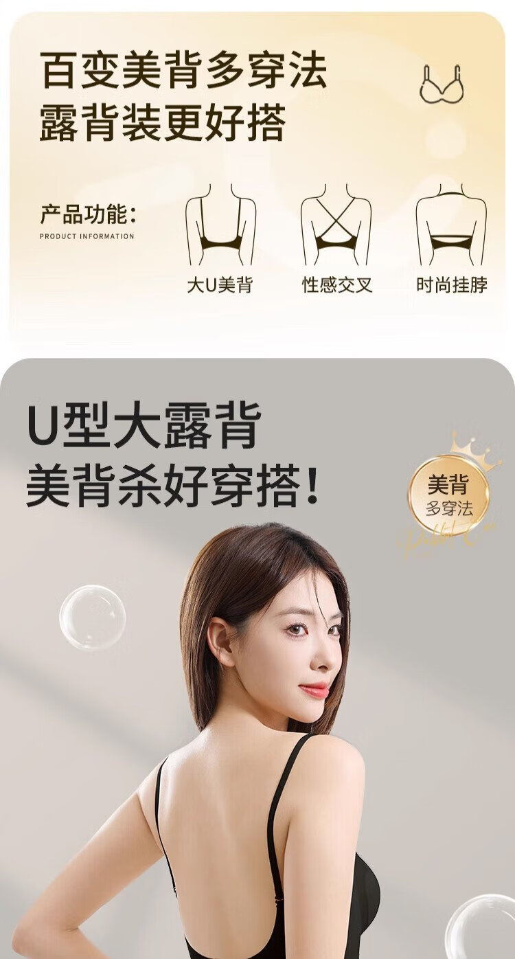Gujin (GUJIN) U-shaped beautiful back bra for women 2025 new popular thin style big breasts showing small backless bra one-piece vest style