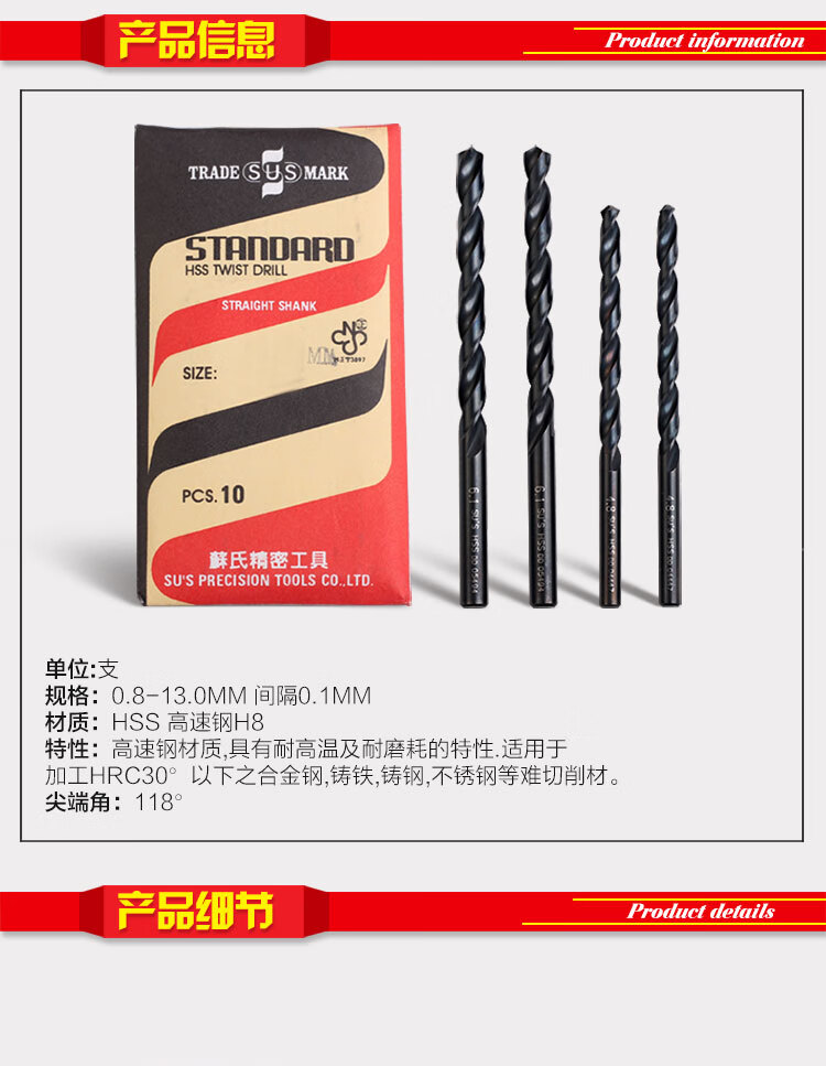 HAOLISHUN Taiwan Su drill bit SUS high speed steel twist drill bit stainless steel drill bit straight shank drill bit 0.8mm-6.1mm 2.5mm