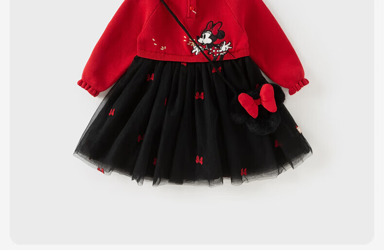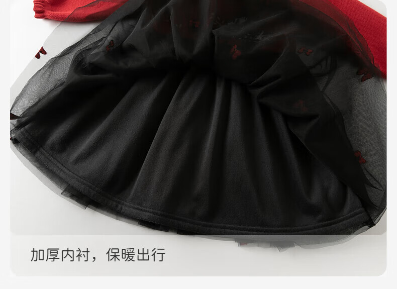 DAVE&BELLA children's skirt autumn and winter girls' plus velvet fake two-piece mesh sweater dress