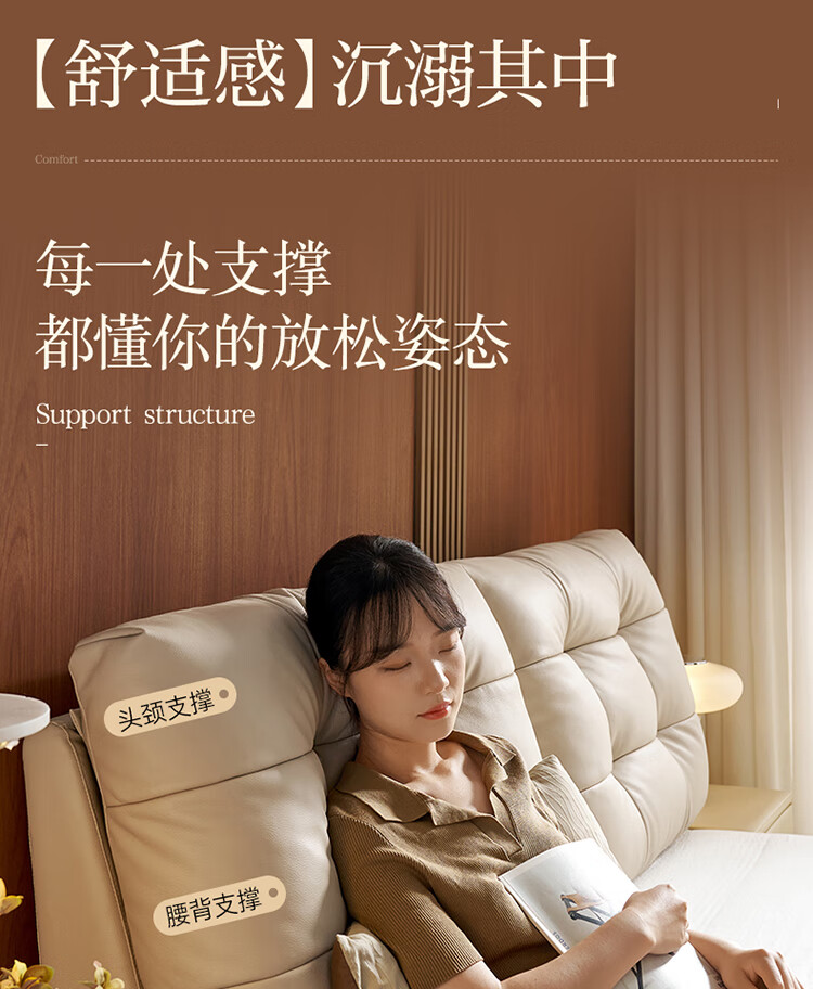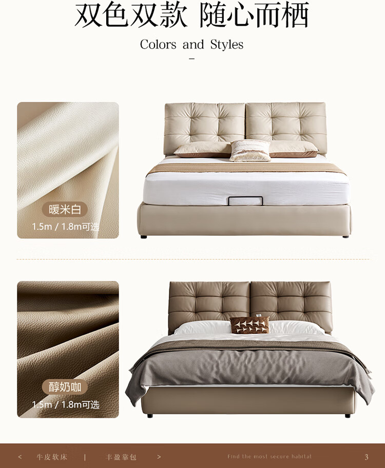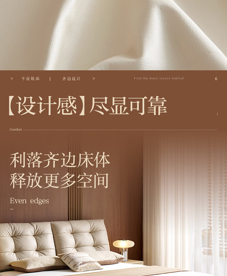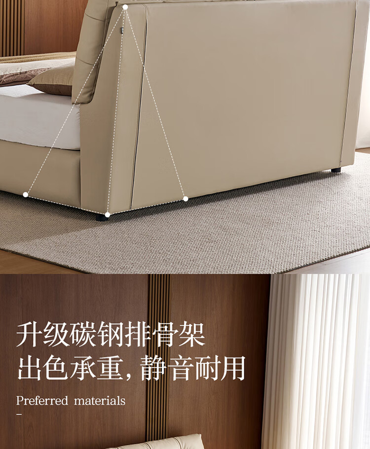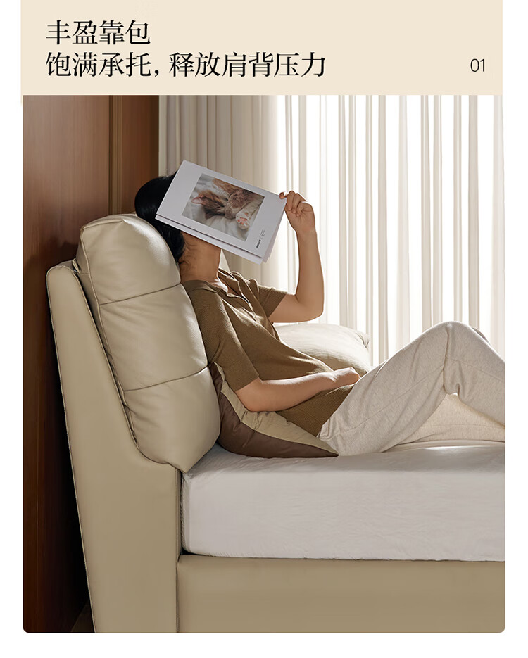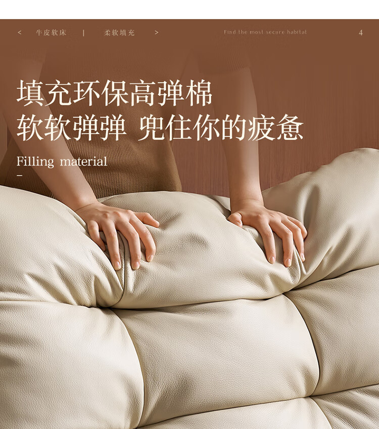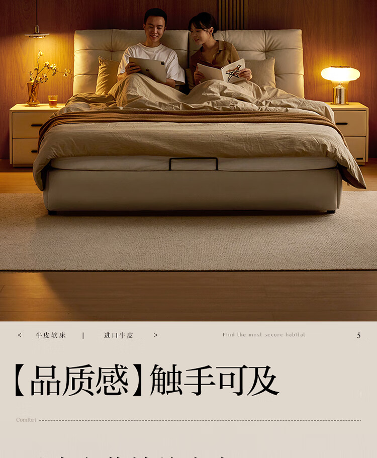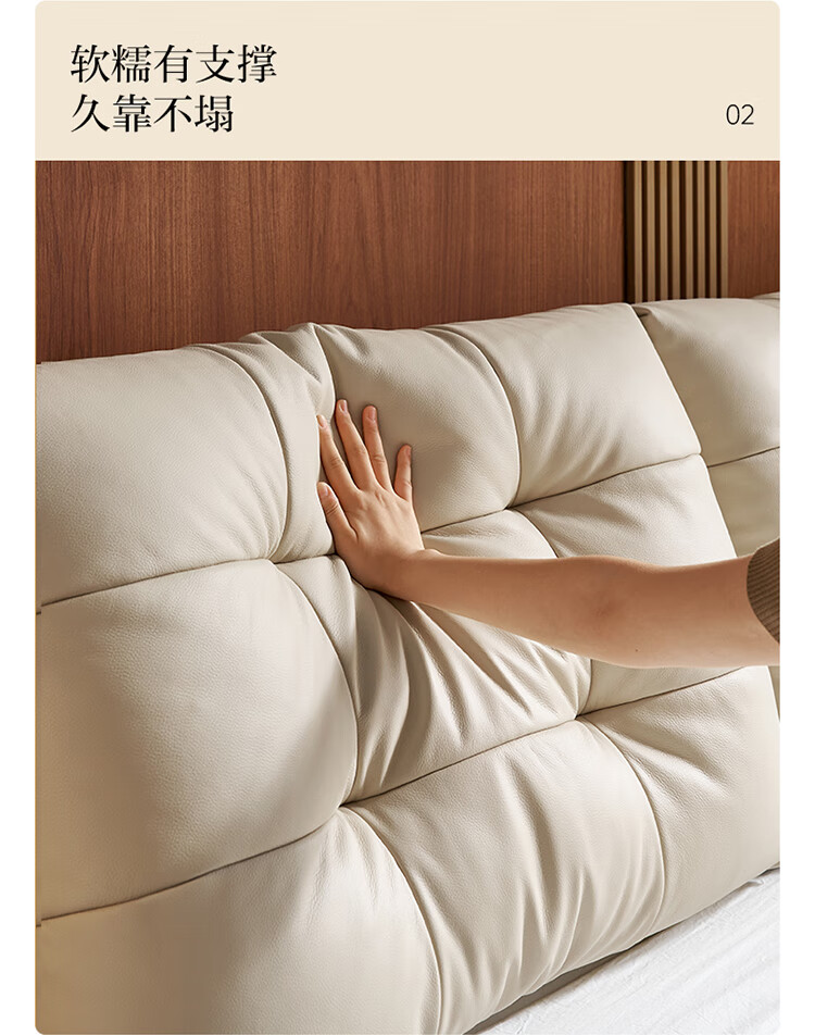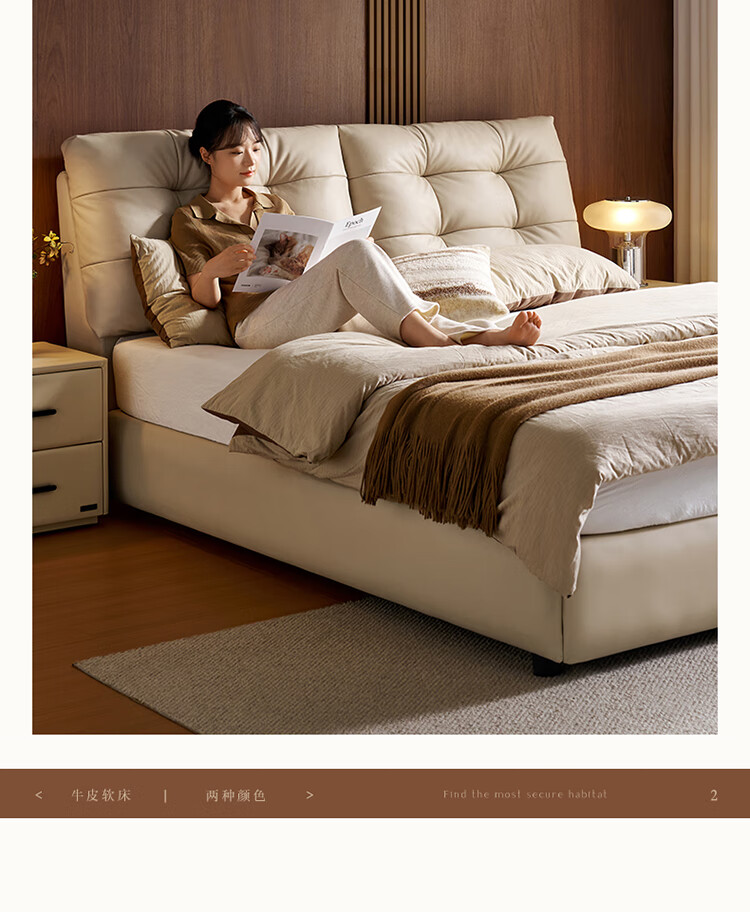 Quanyou Home First-layer cowhide soft-covered backrest master bedroom double bed 1.8x2 meters new style Italian minimalist leather art bed