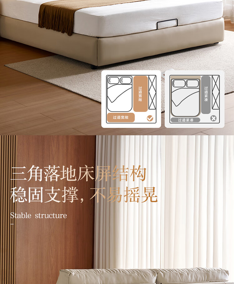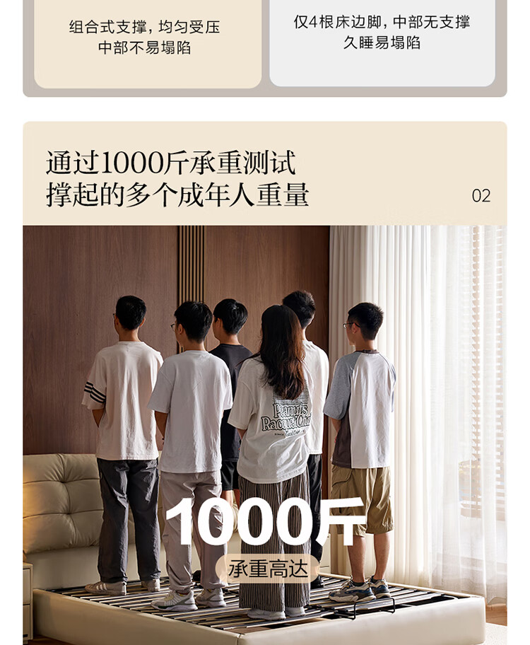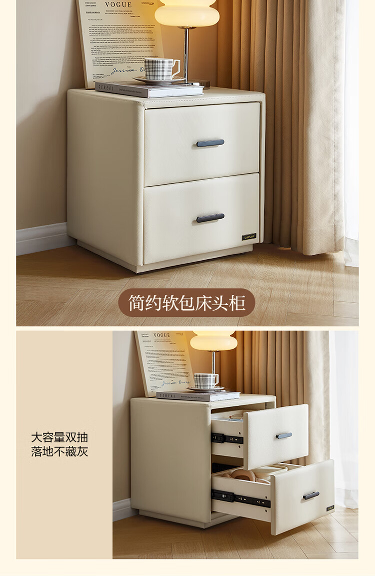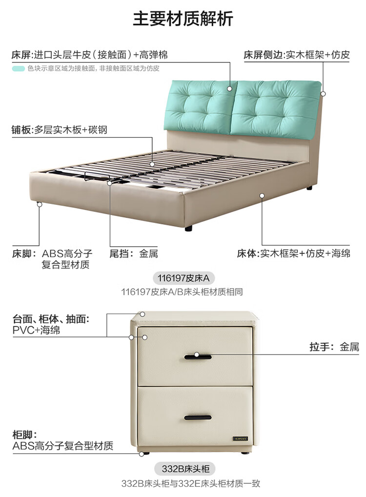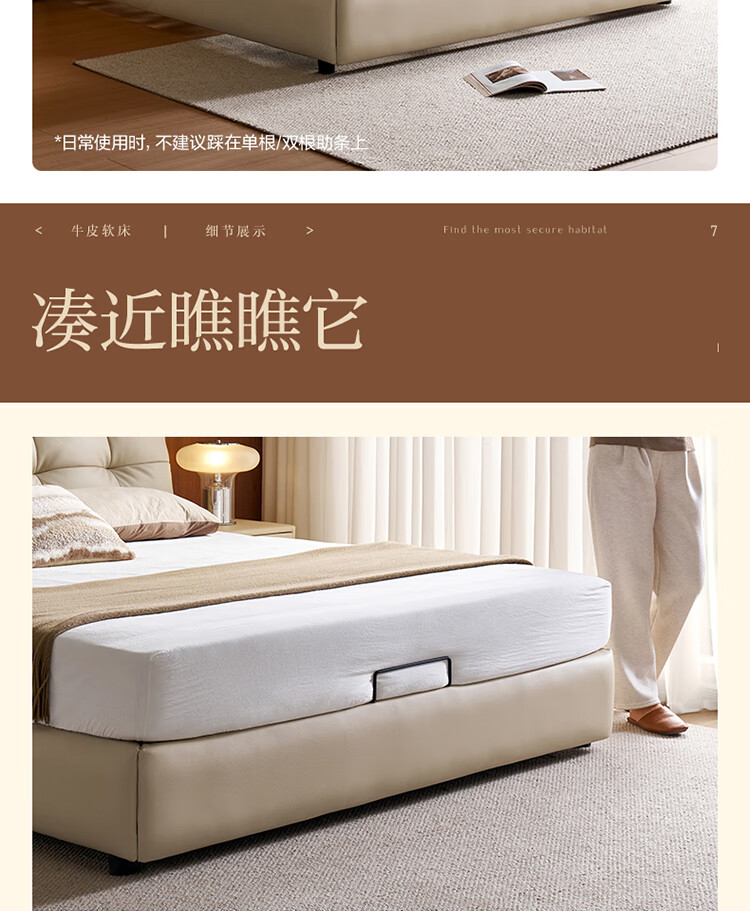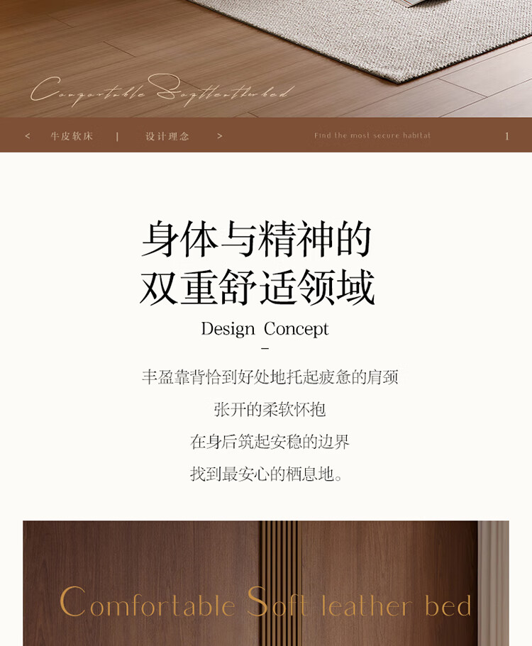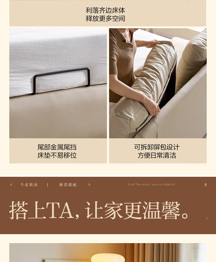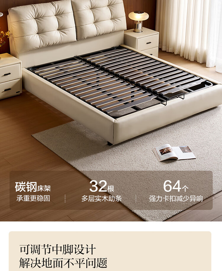 Quanyou Home First-layer cowhide soft-covered backrest master bedroom double bed 1.8x2 meters new style Italian minimalist leather art bed