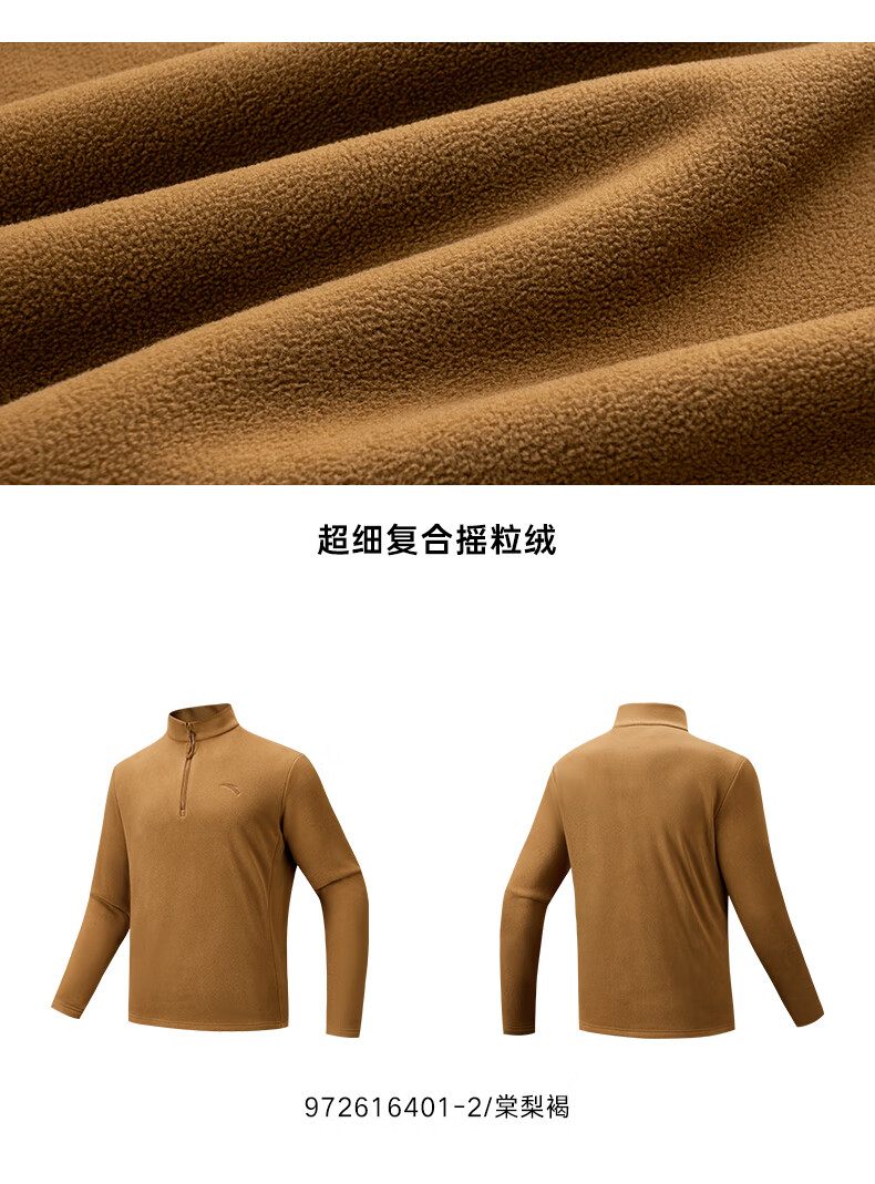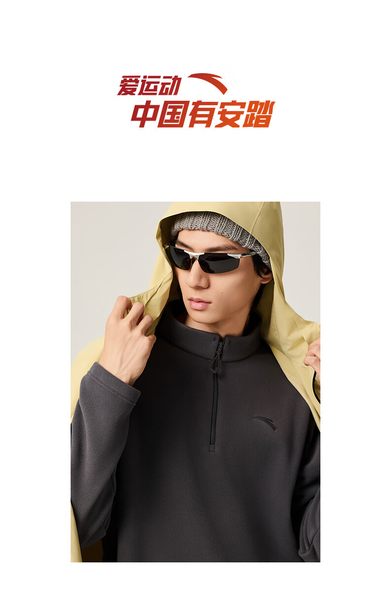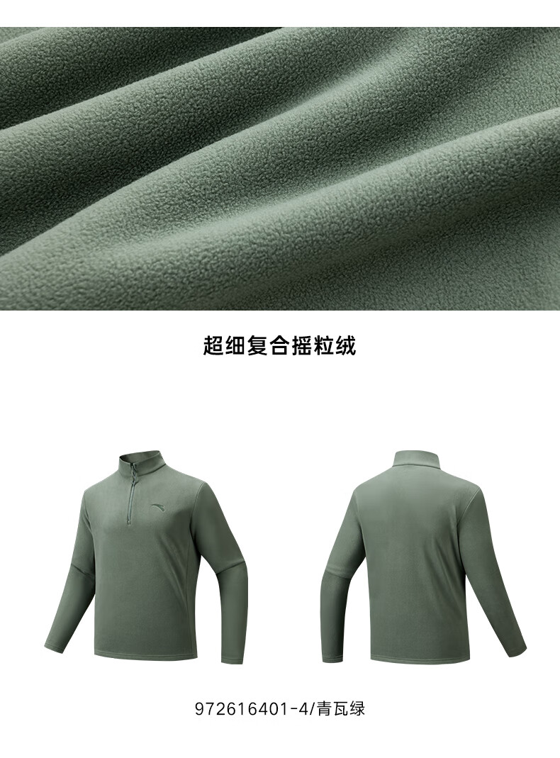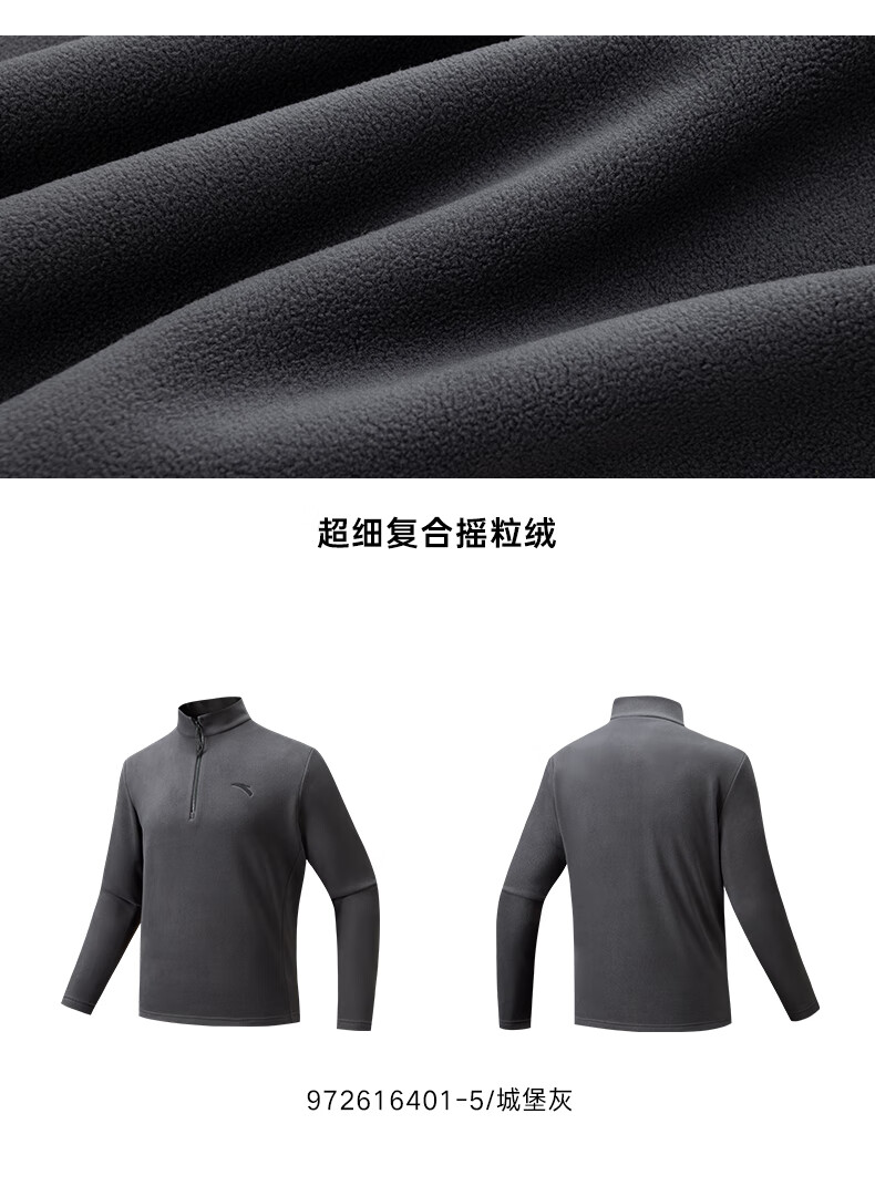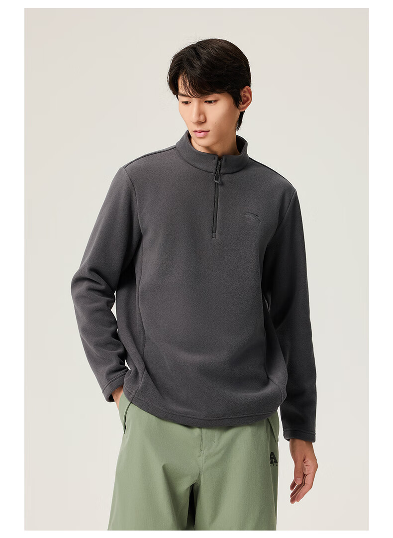 ANTA Polar Fleece Long T丨 Half-Zip Stand Collar Fleece Jacket Men's Autumn and Winter New Windproof Loose Pullover Sports Top
