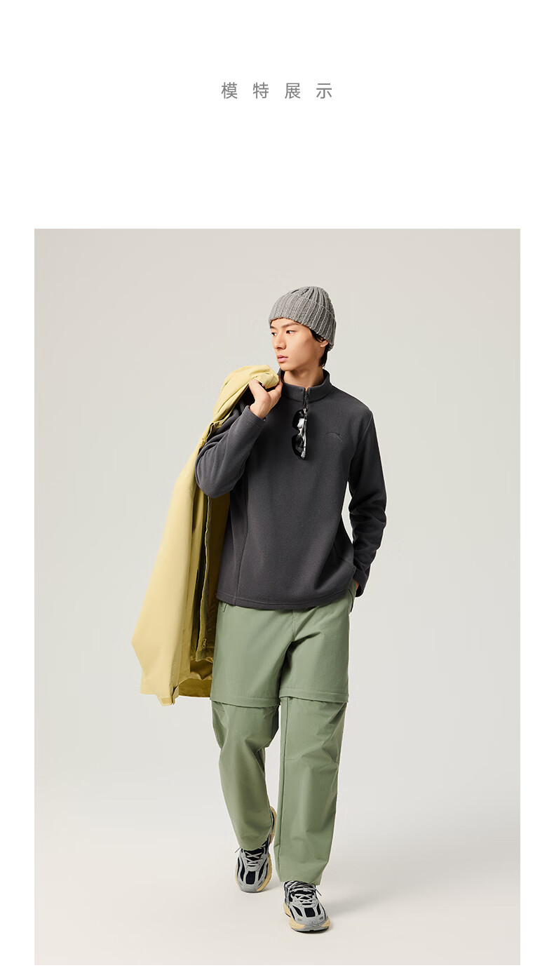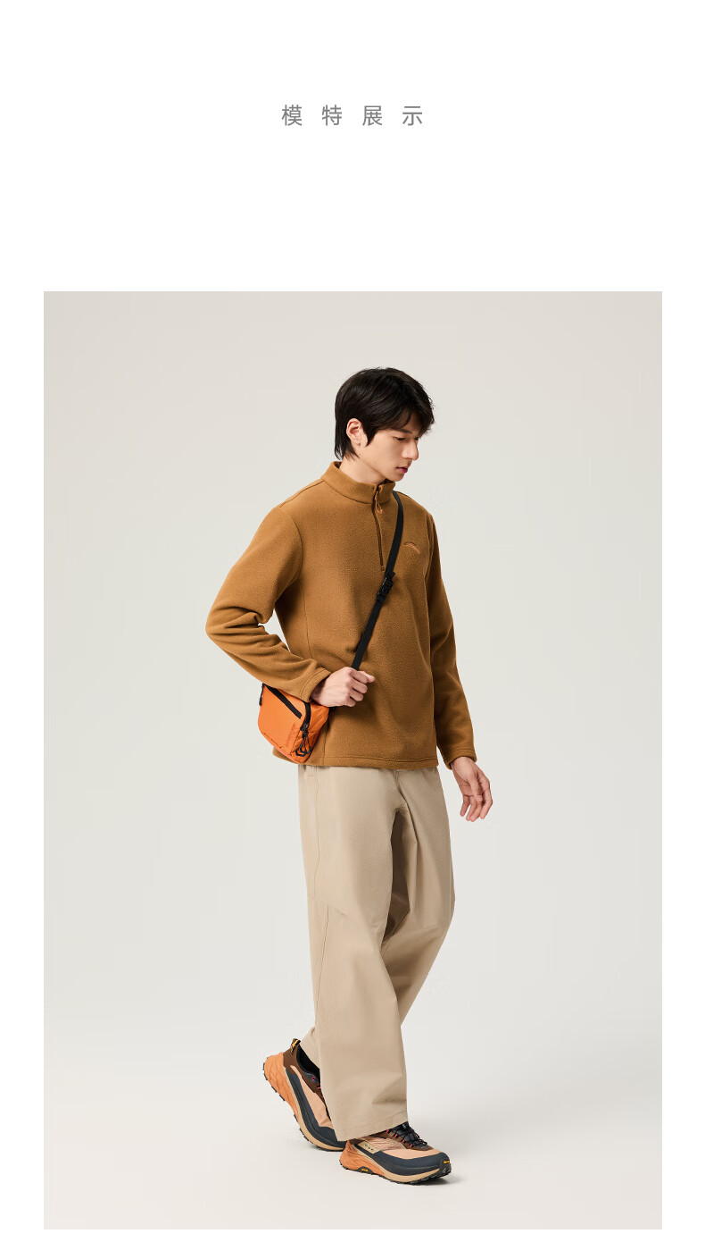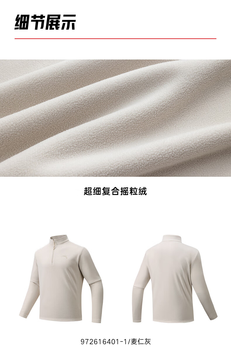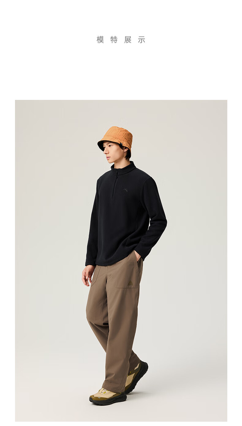 ANTA Polar Fleece Long T丨 Half-Zip Stand Collar Fleece Jacket Men's Autumn and Winter New Windproof Loose Pullover Sports Top