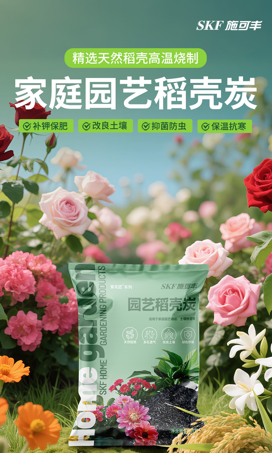 Shi Kefeng rice husk charcoal soil improvement fertilizer plant ash vegetable gardening courtyard large bag fermented carbon organic soil mix
