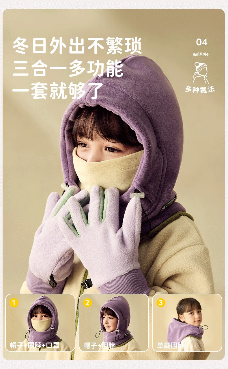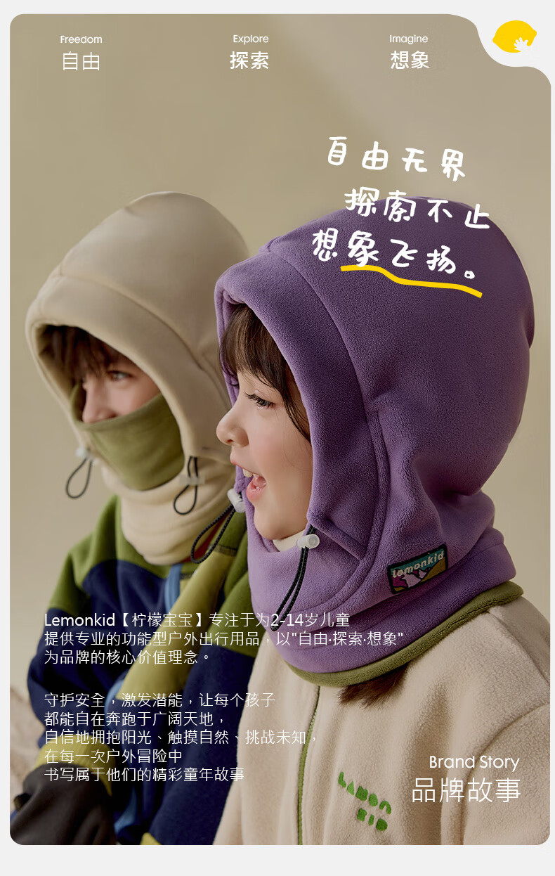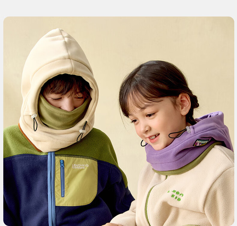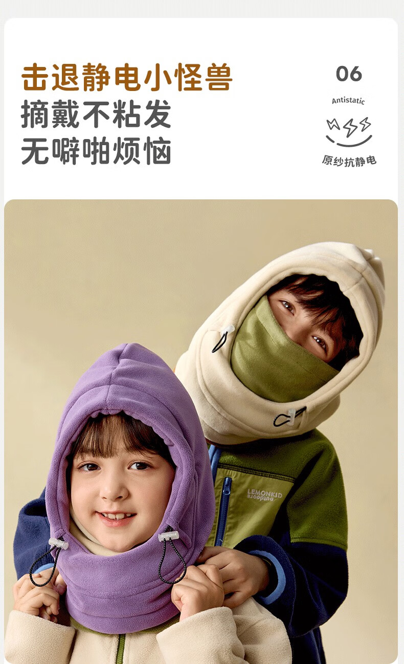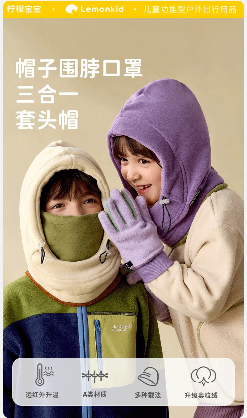 Lemon baby children's hat and scarf integrated autumn and winter hood for boys and girls, warm and windproof outdoor ear protection hat Mi Xing