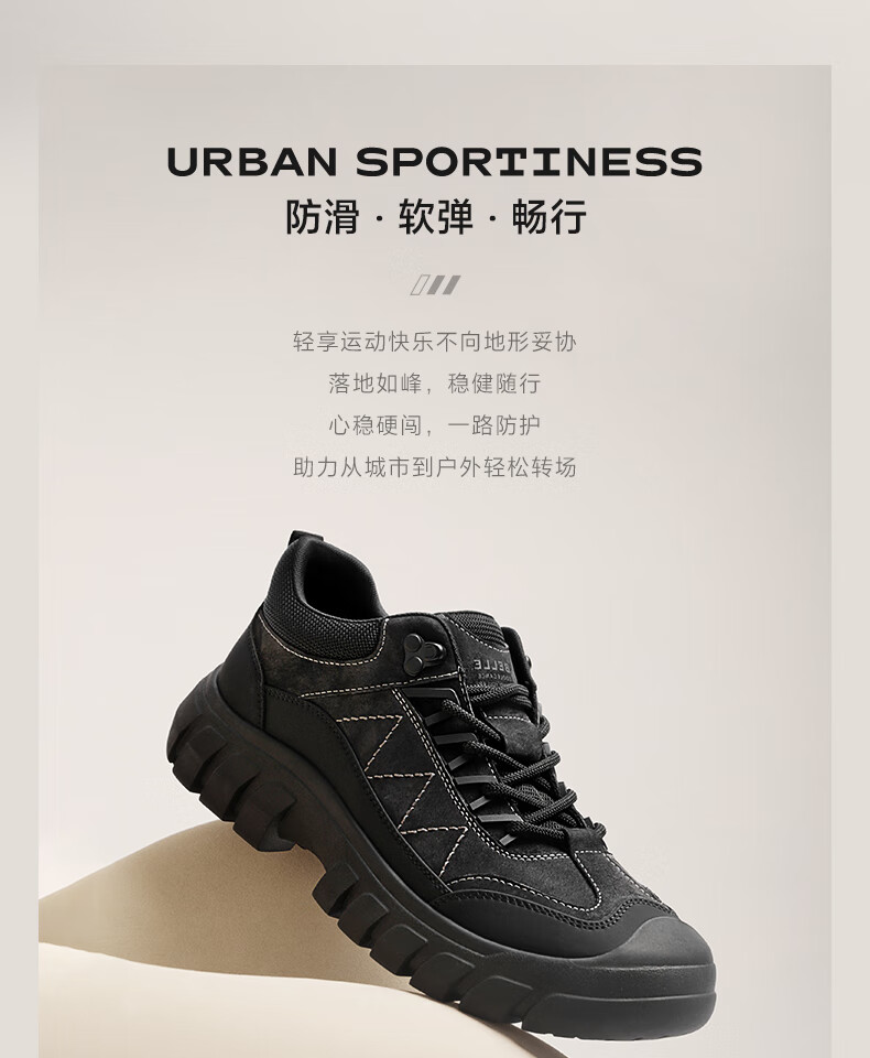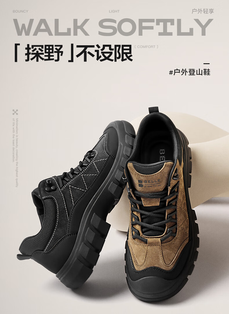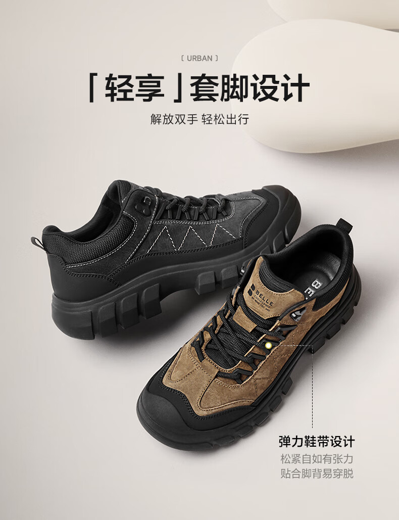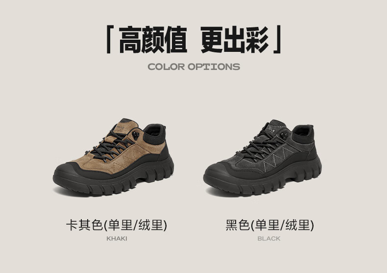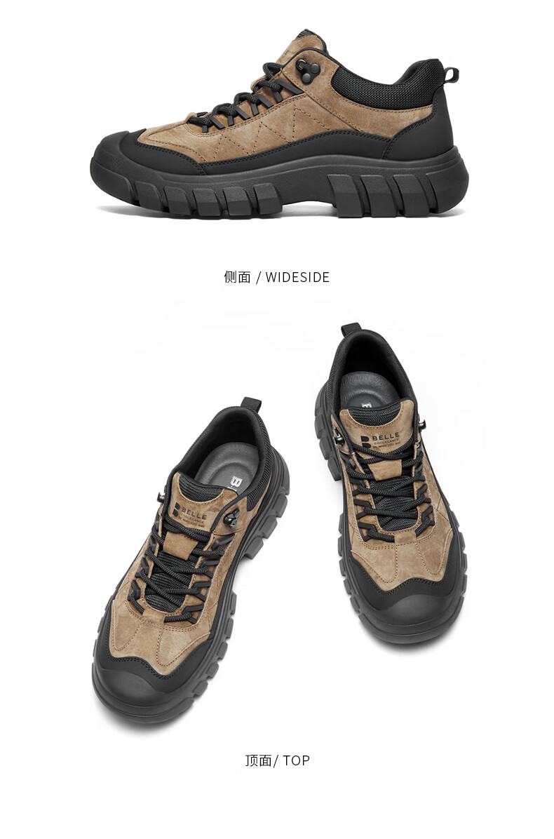 Belle Thick-soled Casual Sports Shoes Men's 25 Winter New Outdoor Hiking Shoes A2171DM5 Khaki/Black (Single Liner) 41