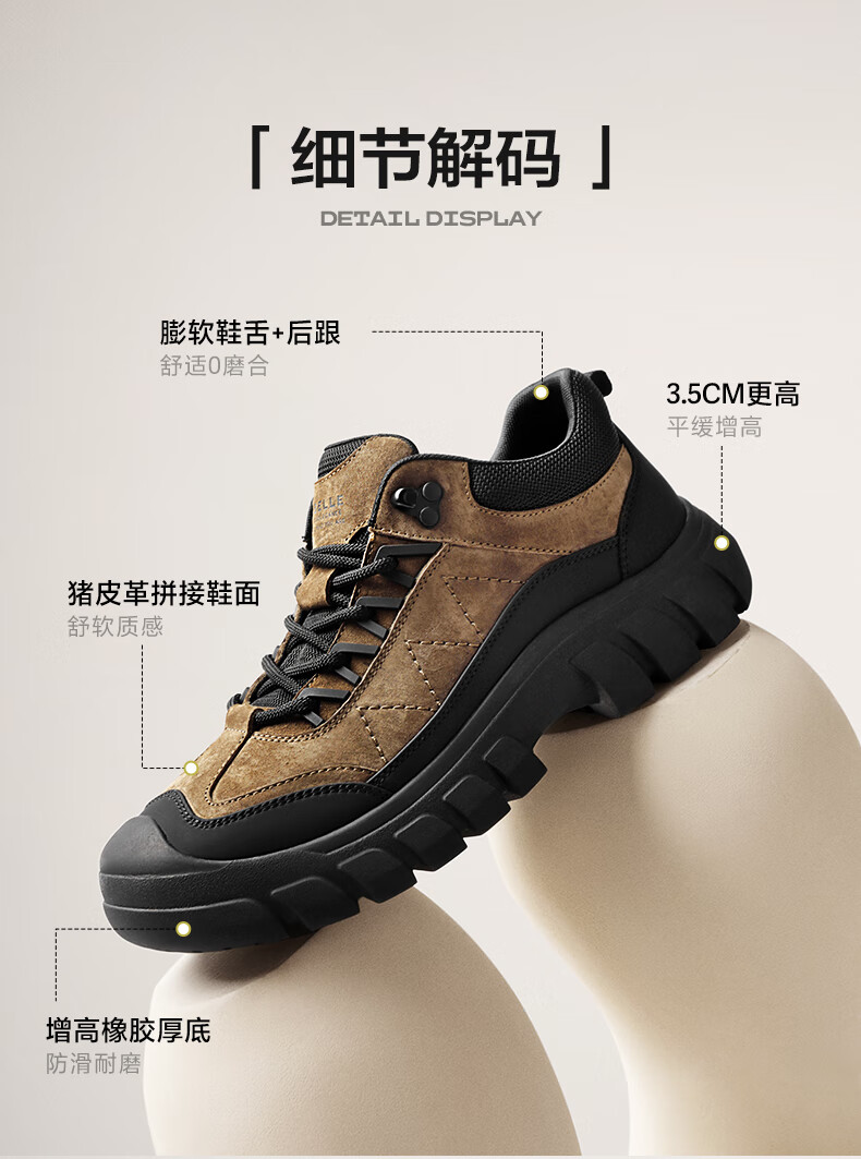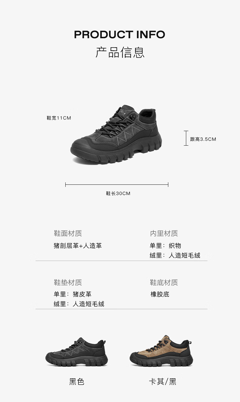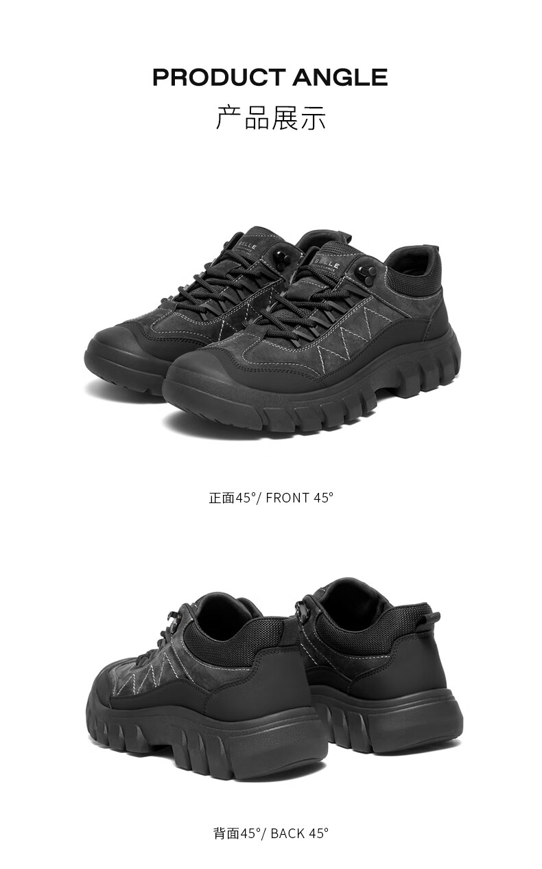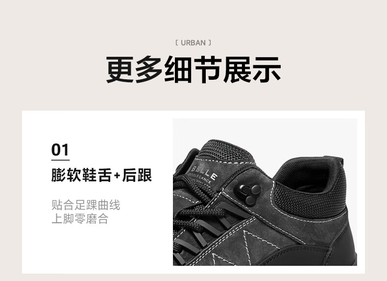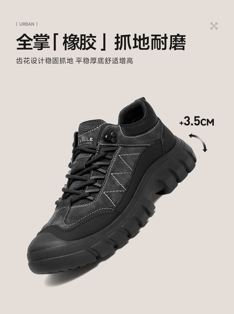 Belle Thick-soled Casual Sports Shoes Men's 25 Winter New Outdoor Hiking Shoes A2171DM5 Khaki/Black (Single Liner) 41