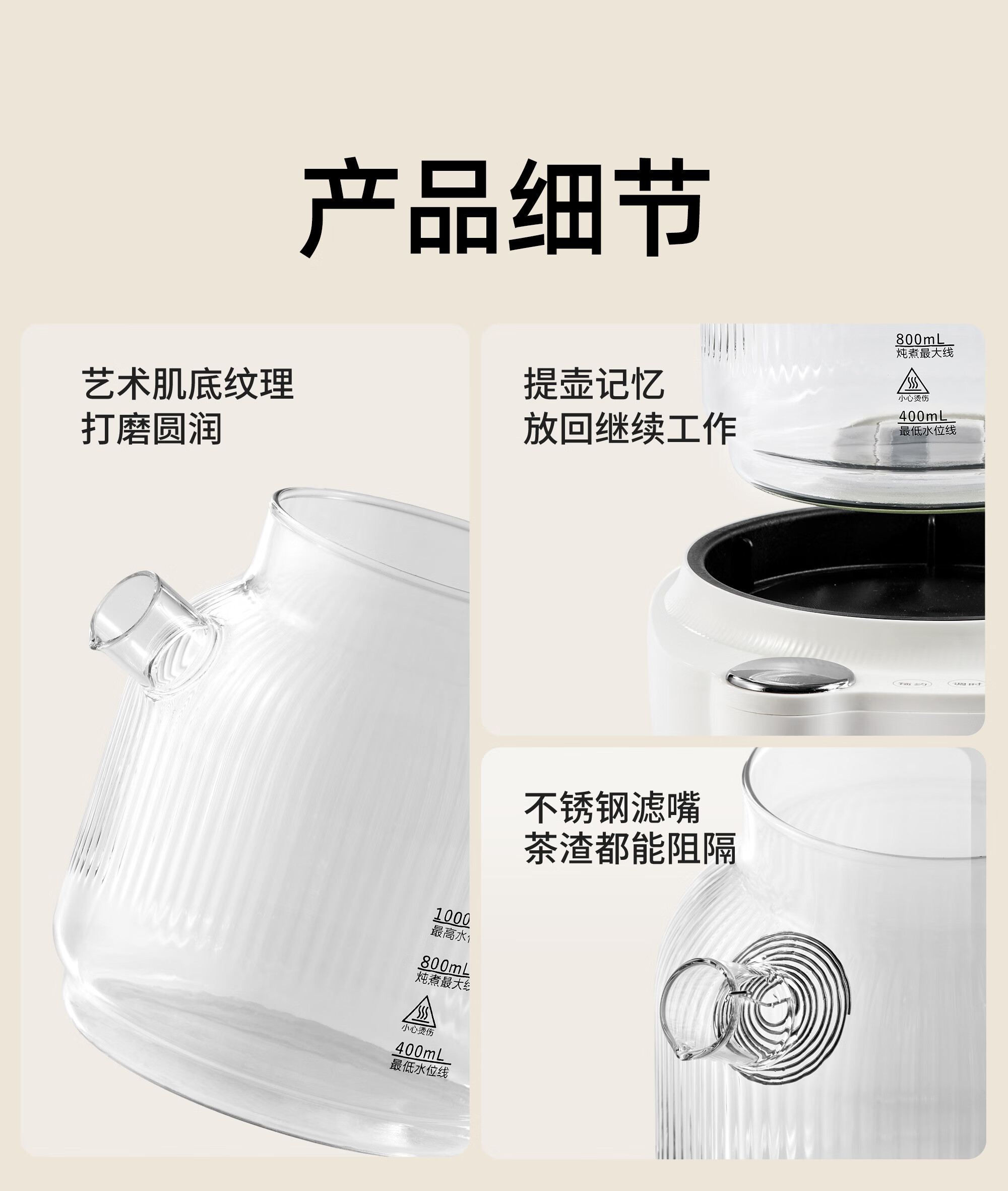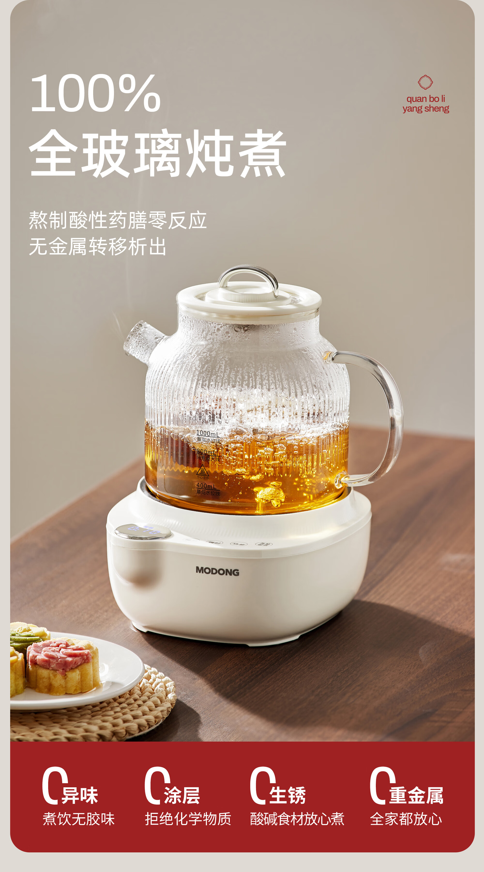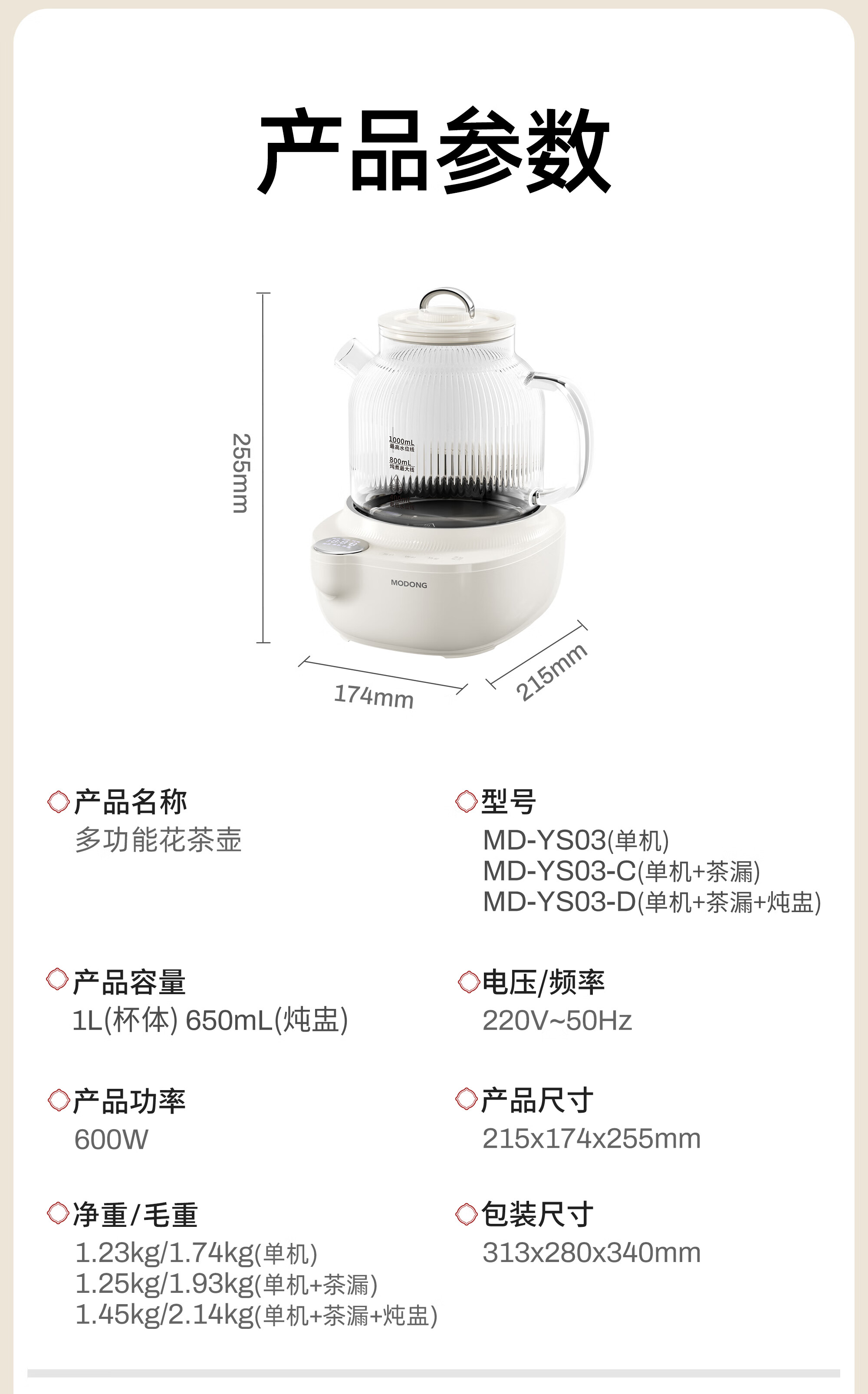 Modong all-glass health pot mini plastic-free teapot electric kettle flower teapot tea steamer teapot boiling water all-in-one machine 1L large capacity kettle MD-YS03