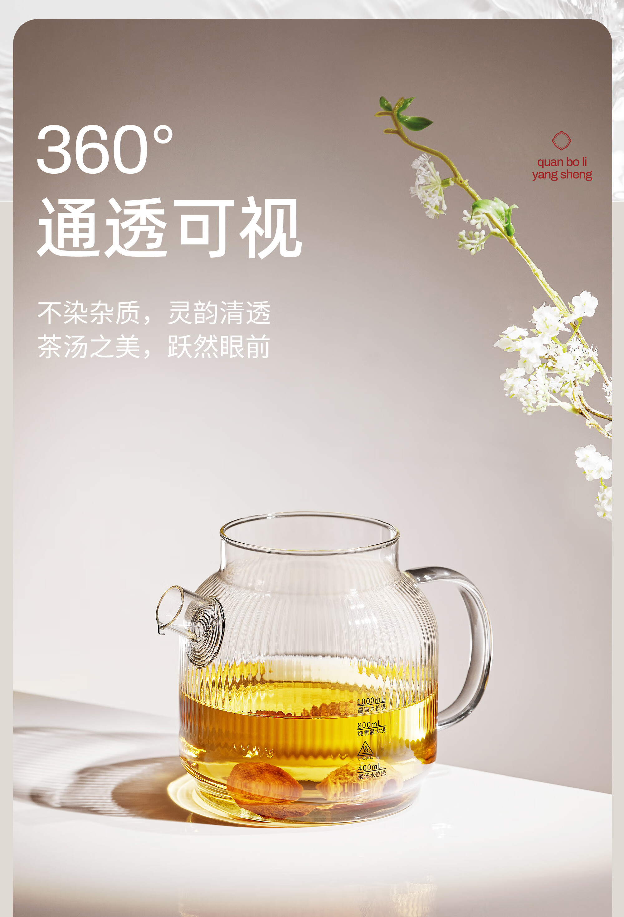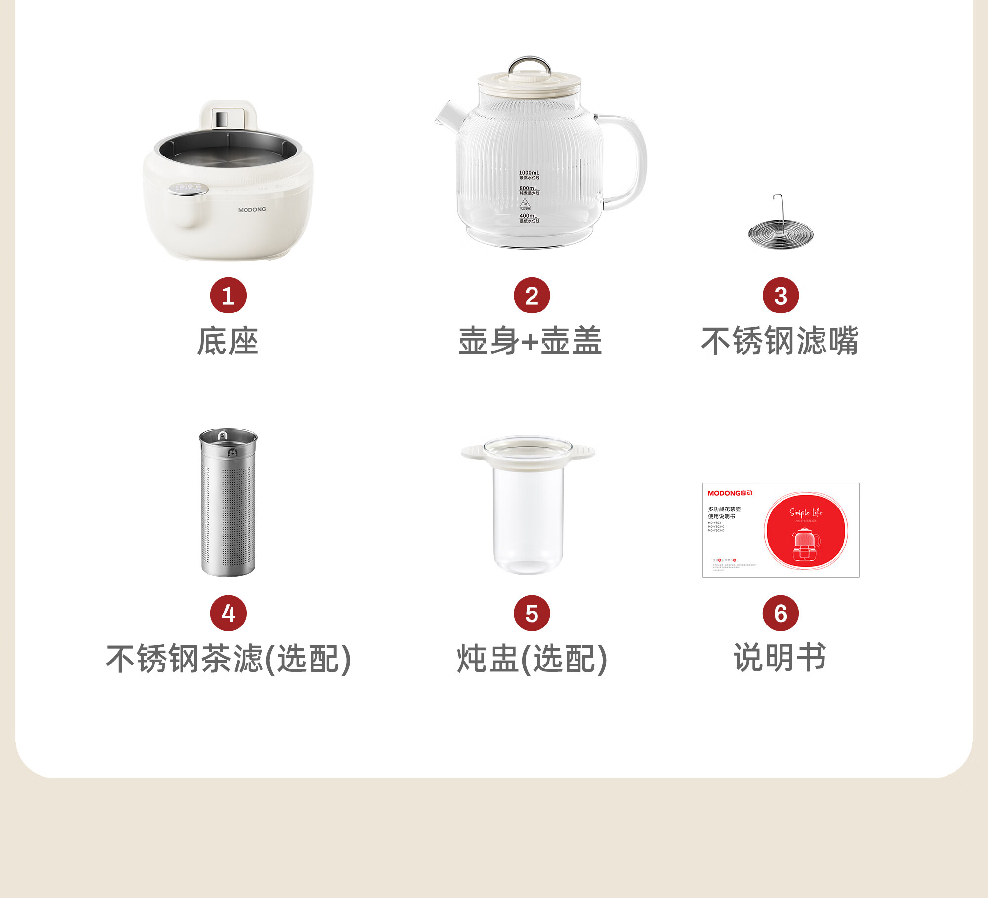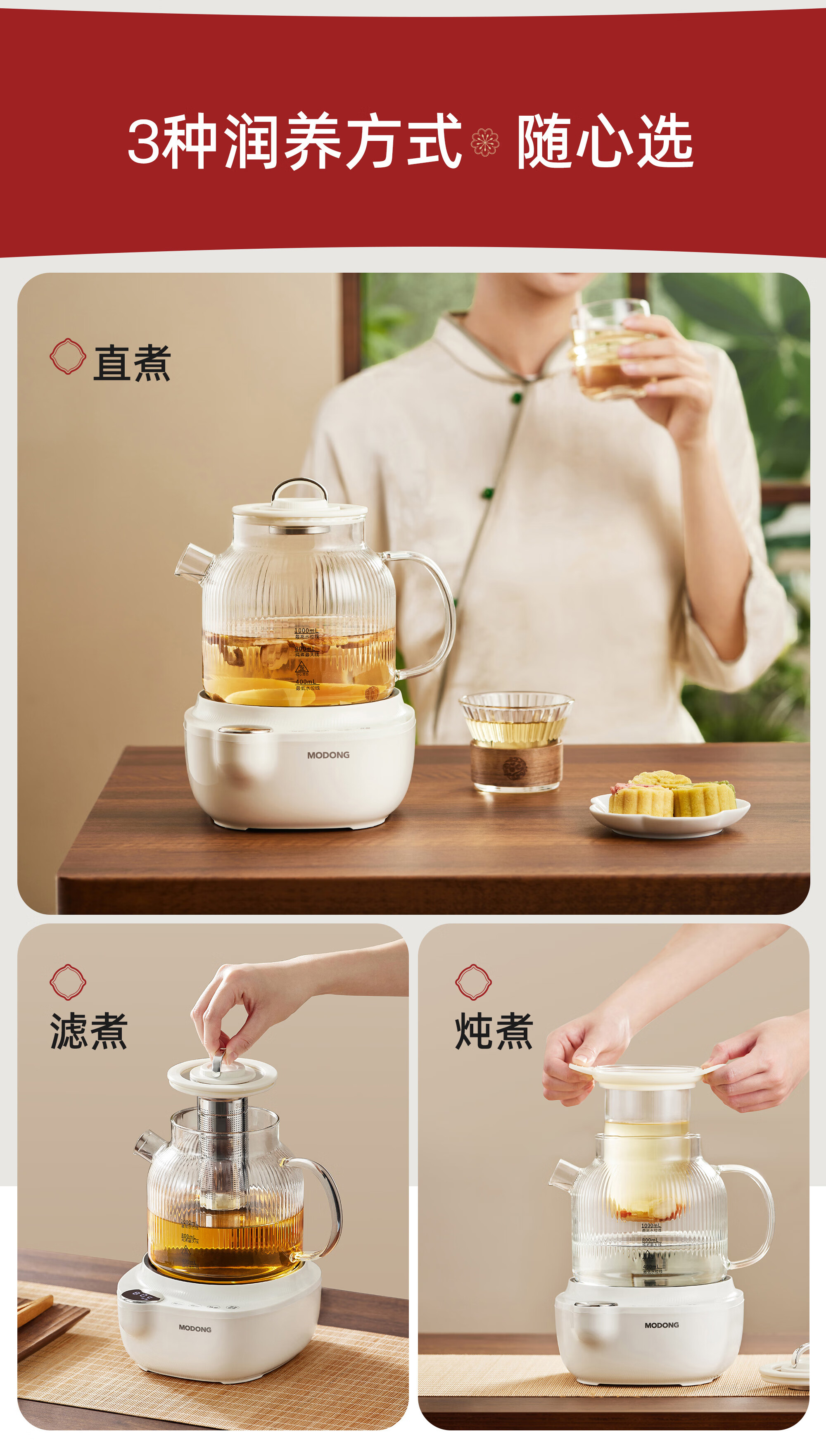 Modong all-glass health pot mini plastic-free teapot electric kettle flower teapot tea steamer teapot boiling water all-in-one machine 1L large capacity kettle MD-YS03