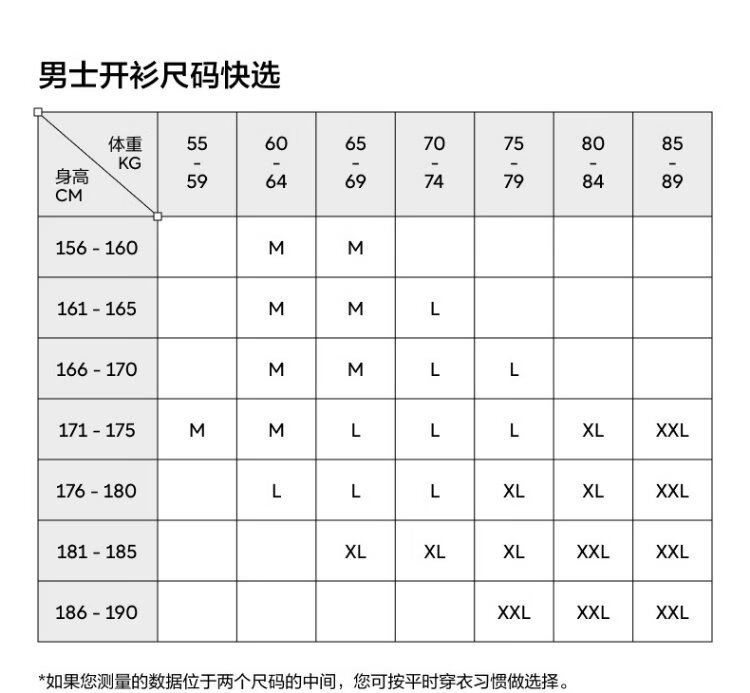 China (cm) 160-165/84-86 165-170 / 88-90 167-172 / 92-96 168-173 / 98-102 170-176 / 106-110
