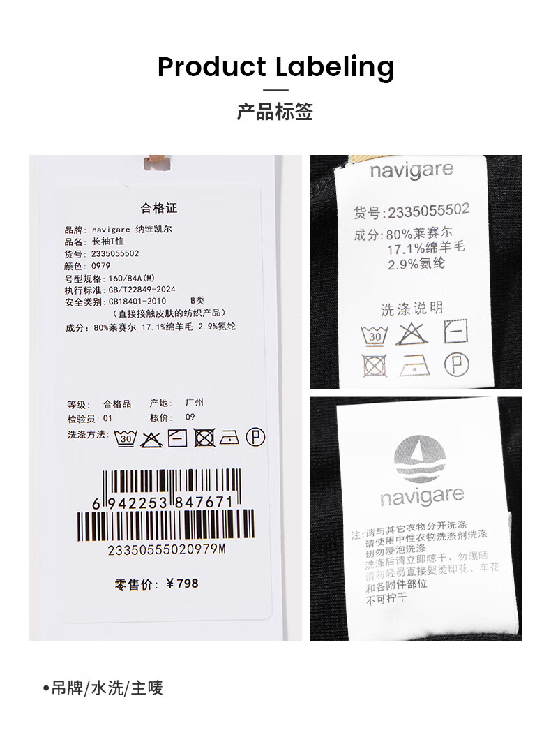 Navigare Italian small sailing women's 25-year new long-sleeved T-shirt, versatile, lightweight and slim-fitting bottoming shirt 2335055502