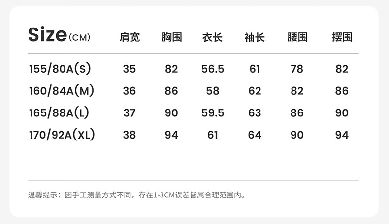 China (cm) 160-165/84-86 165-170 / 88-90 167-172 / 92-96 168-173 / 98-102 170-176 / 106-110