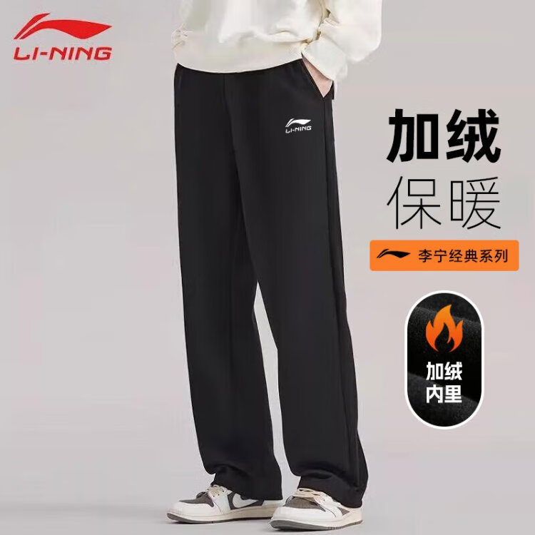 Li Ning (LI-NING) sweatpants plus velvet and thickening men's straight winter loose casual versatile sweatpants comfortable flat mouth sports pants for men