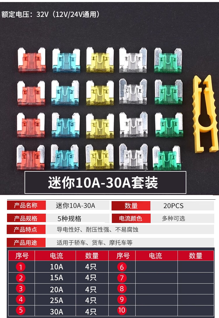 ZAVE boxed car fuse inserts, medium size 25A (10 pieces) white