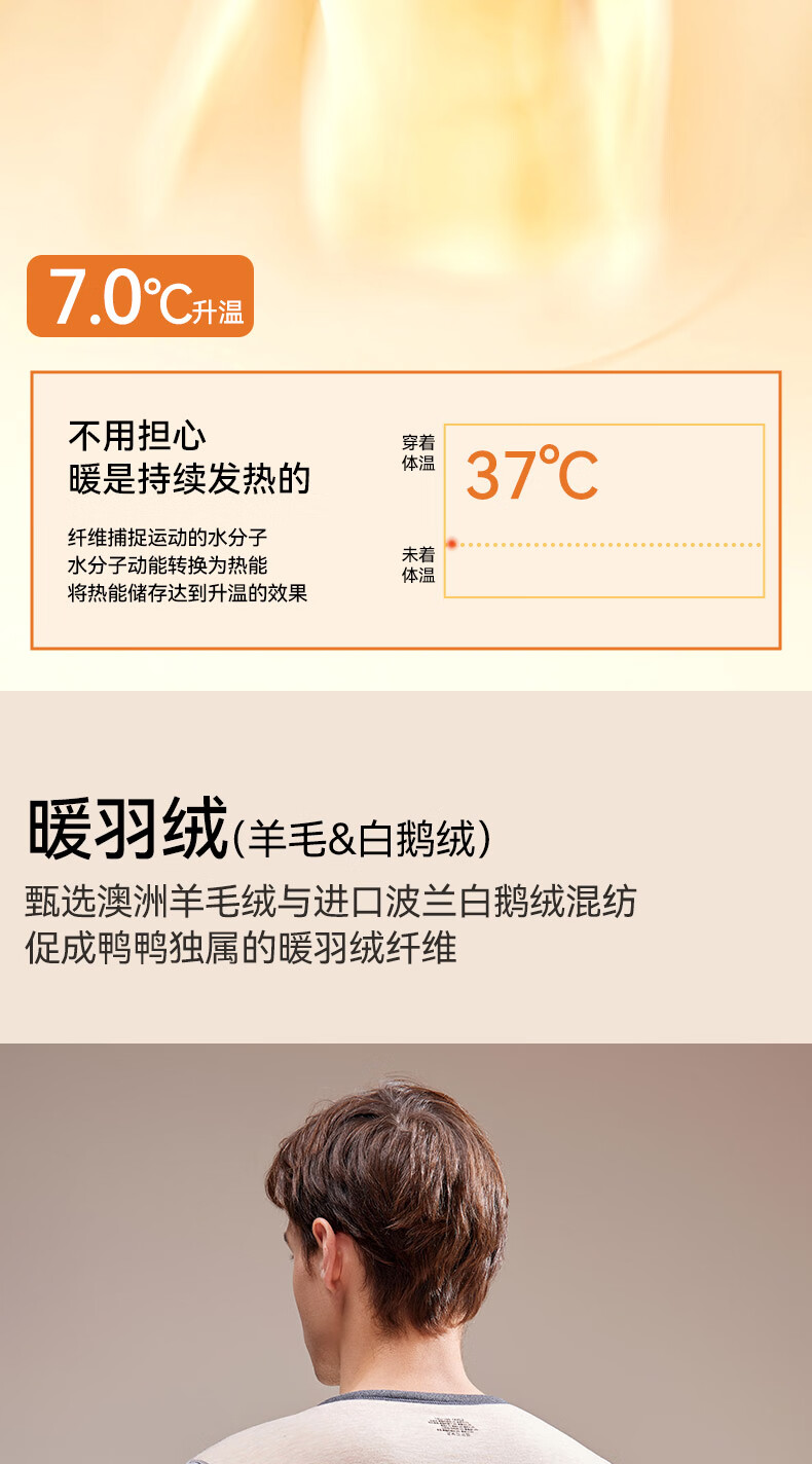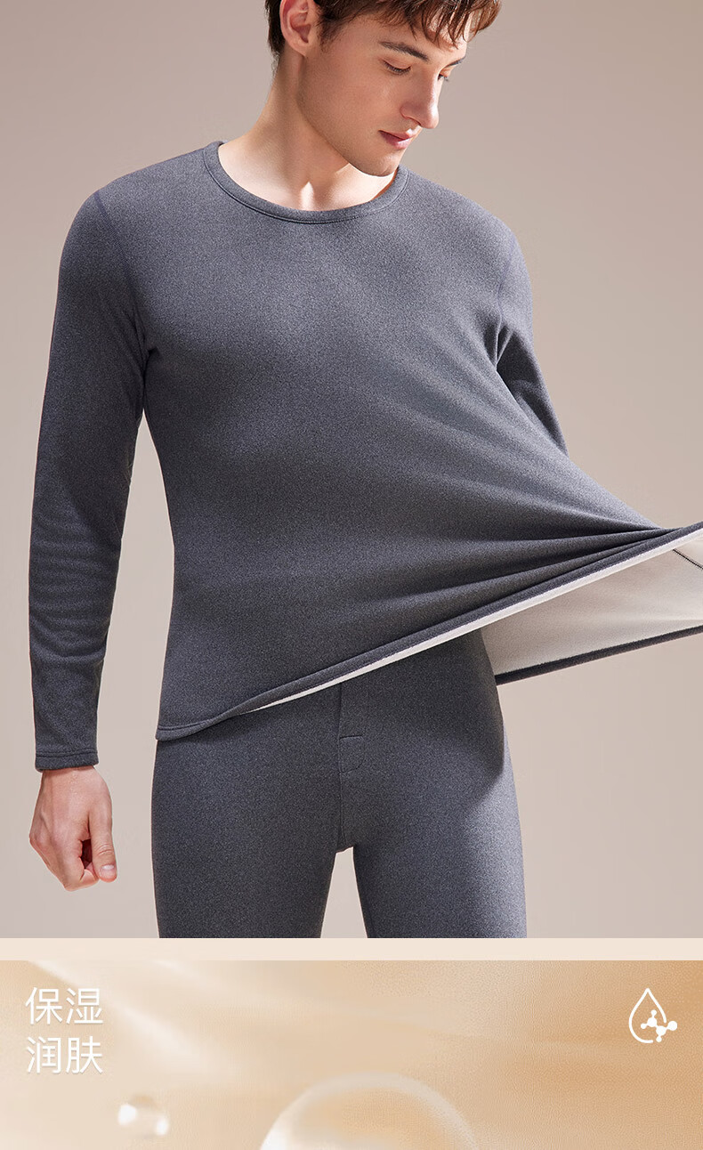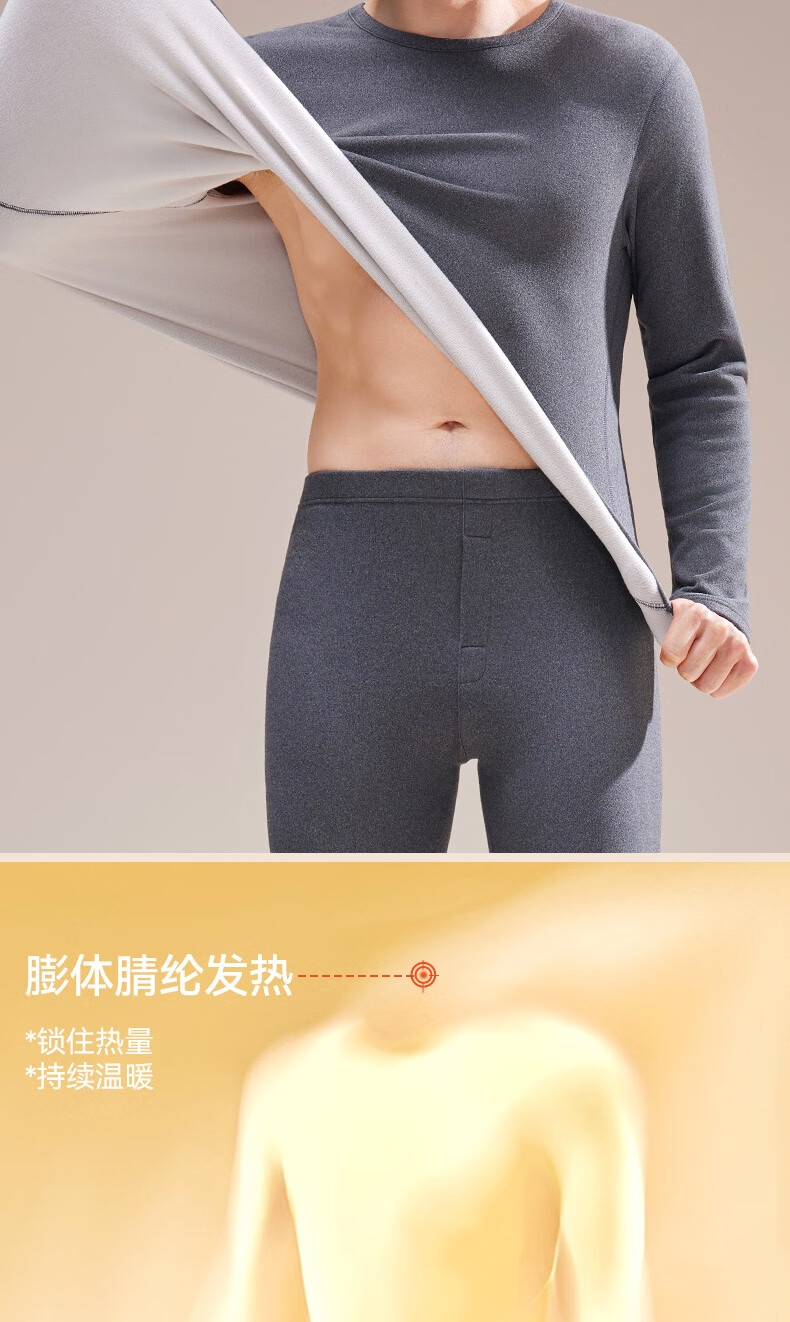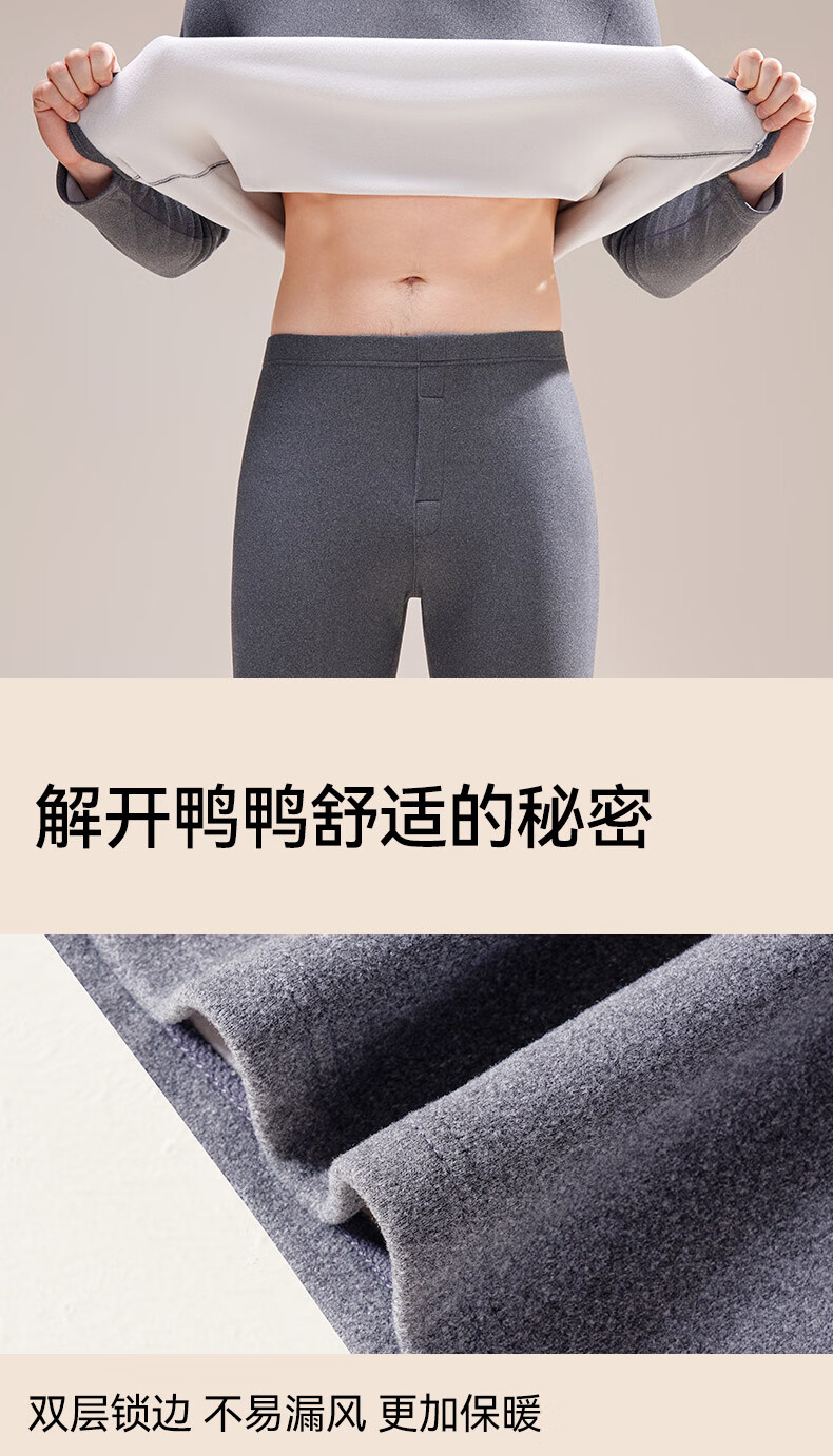 鸭鸭(YAYA)【鹅绒天丝】保暖内衣男德绒发热羊绒加绒加厚秋衣秋裤打底套装冬